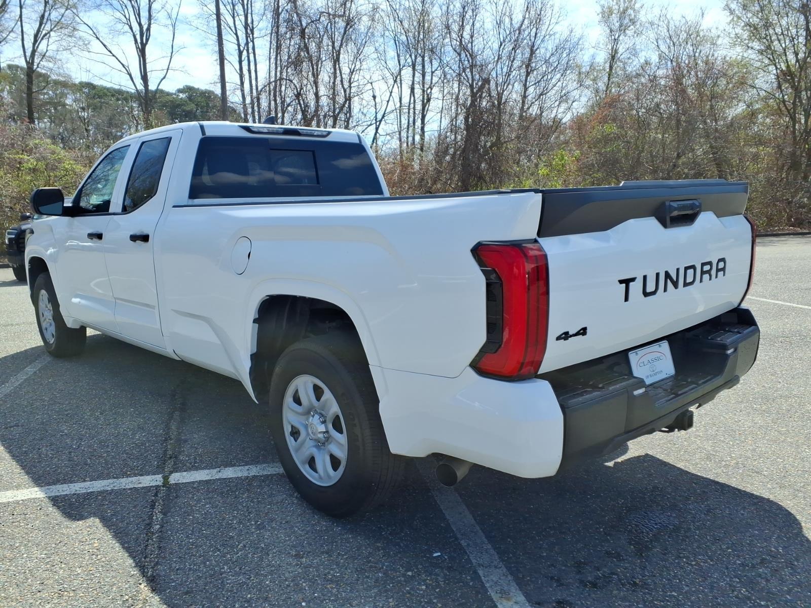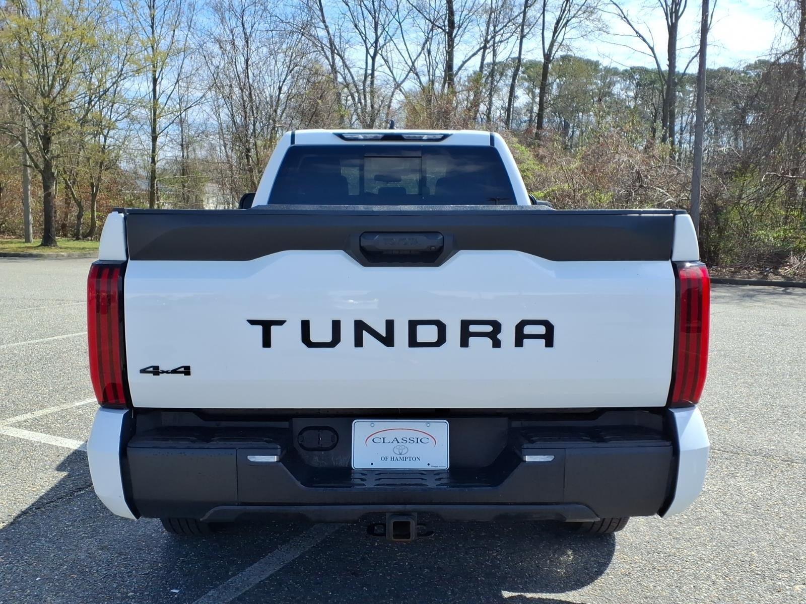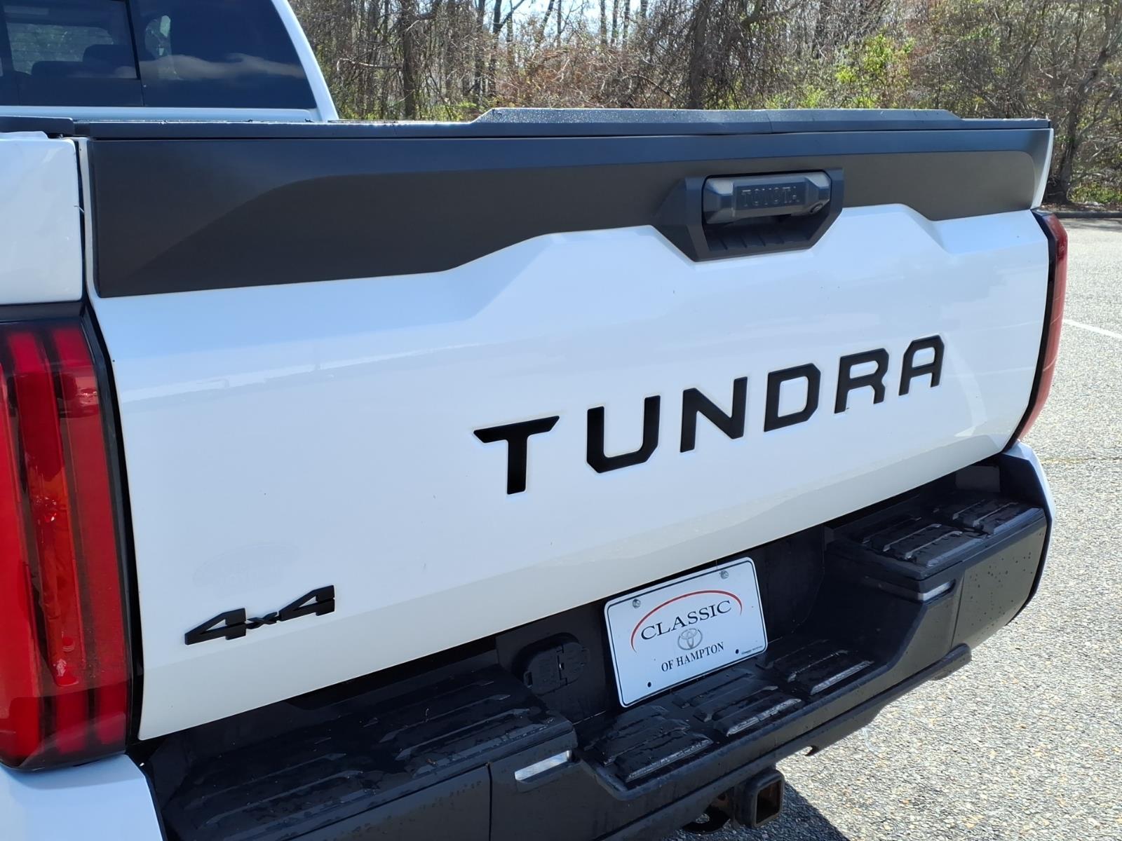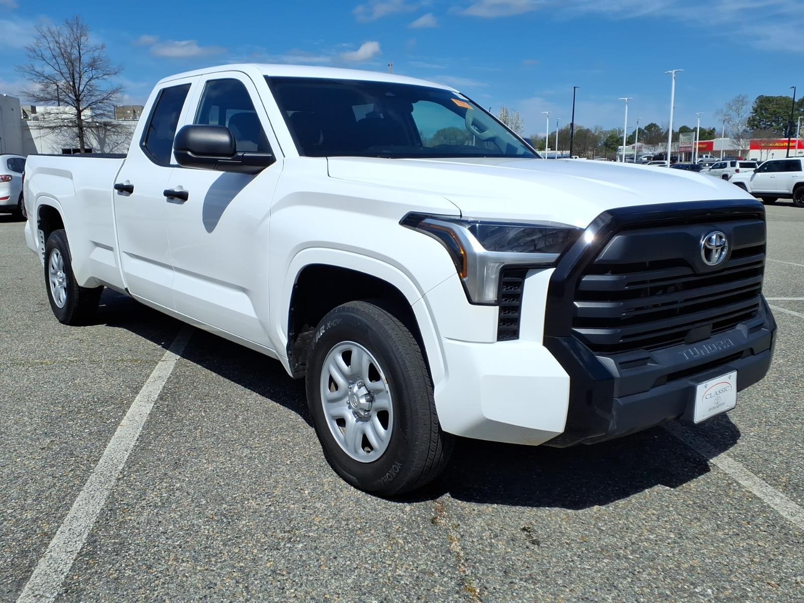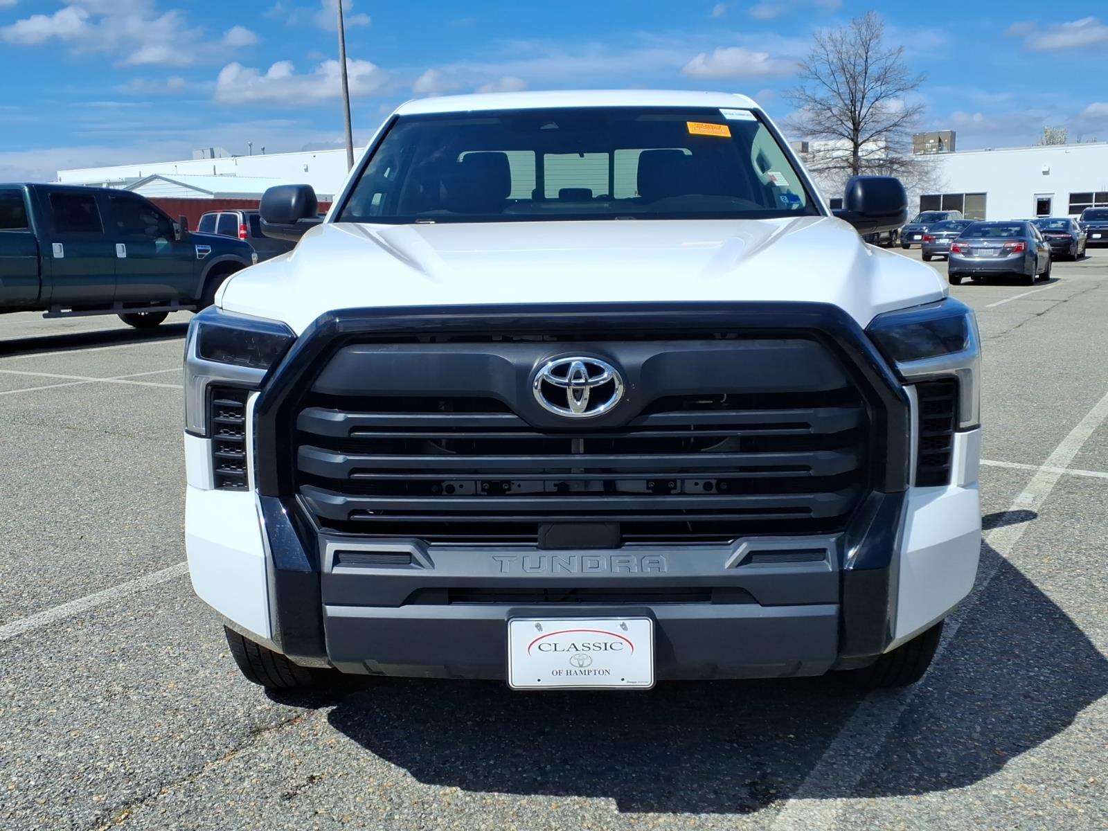 This 2024 Toyota Tundra SR, has a Ice Cap exterior and an Black interior color. 43,991 miles. Stock Number RX002569. You can connect with us by calling 757-838-5000. This vehicle is offered by Classic Toyota Hampton and we are located at 2301 W Mercury Blvd Hampton VA 23666 No Accidents! One Owner! Important Package and Feature Information SR Tow Package ($555 value)Cold Weather Package DeleteFront Fog and Driving Lamp DeleteWindshield Deicer DeleteParking Support Alert/brake DeleteFront Spoiler Delete22 Gallon Fuel Tank Safety and Security Forward collision mitigation - Forward thinking. You look away for just a second and suddenly the vehicle in front of you has stopped. Thats when the forward collision mitigation system comes to life. When it senses an impending impact, it will activate a combination of features to help prevent or reduce the severity of an accident. Forward collision mitigation is always looking ahead. Pedestrian impact prevention - An extra step toward safety. Pedestrians dont always stop, look, and listen, but with Pedestrian Impact Prevention, your vehicle is equipped to better see them and avoid them. This system constantly monitors the road ahead to identify and track pedestrians. It projects that image to an interior display screen, AND should an impact become likely, Pedestrian impact prevention takes steps to avoid a collision. Hands-on cruise control. Set it and forget it. Road trips used to be stressful. Cruise control only managed speed, but not distance or safety. Now, with hands-on cruise control, simply set your desired speed and let sensor technology maintain a safe distance between you and surrounding vehicles. It slows you down; speeds you up and even keeps you in your own lane. Meet your ultimate co-pilot with hands-on cruise control. Hands-on cruise control. Set it and forget it. Road trips used to be stressful. Cruise control only managed speed, but not distance or safety. Now, with hands-on cruise control, simply set your desired speed and let sensor technology maintain a safe distance between you and surrounding vehicles. It slows you down; speeds you up and even keeps you in your own lane. Meet your ultimate co-pilot with hands-on cruise control.