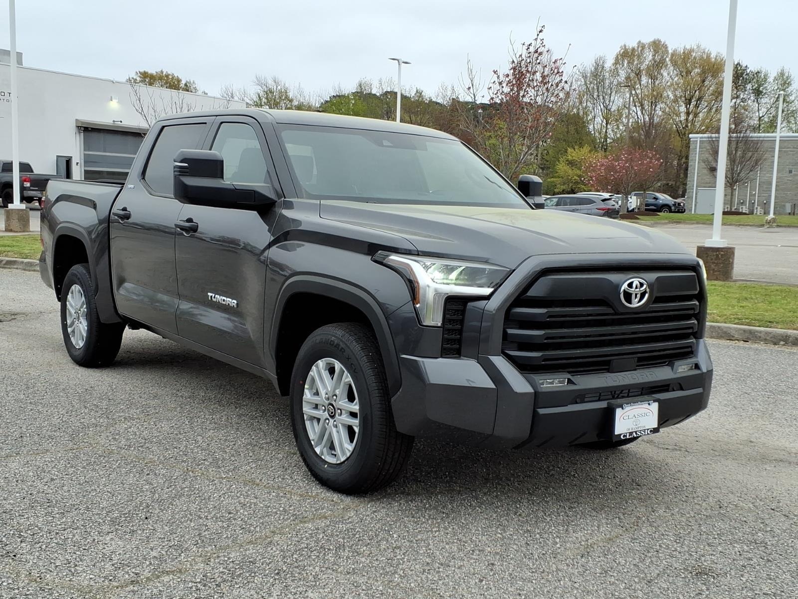 This New 2026 Toyota Tundra SR5, is Magnetic Gray Metallic in color with an Black Fabric interior. Stock Number TX381855. You can connect with us by calling 757-838-5000 Important Package and Feature Information Safety and Security Pedestrian impact prevention - An extra step toward safety. Pedestrians dont always stop, look, and listen, but with Pedestrian Impact Prevention, your vehicle is equipped to better see them and avoid them. This system constantly monitors the road ahead to identify and track pedestrians. It projects that image to an interior display screen, AND should an impact become likely, Pedestrian impact prevention takes steps to avoid a collision. Hands-on cruise control. Set it and forget it. Road trips used to be stressful. Cruise control only managed speed, but not distance or safety. Now, with hands-on cruise control, simply set your desired speed and let sensor technology maintain a safe distance between you and surrounding vehicles. It slows you down; speeds you up and even keeps you in your own lane. Meet your ultimate co-pilot with hands-on cruise control. Rear camera - Watching your back! The rear camera helps you see obstacles and hazards you otherwise couldnt by showing enhanced images of what is behind you. The rear camera is an extra set of eyes thats both convenient and safe.Technology and Telematics Apple CarPlay/Android Auto smart device wireless mirroring Mobile hotspot - WiFi on the fly. Connect your devices to the Internet through your vehicles private mobile hotspot and take the internet wherever your journey takes you, without eating up your data allowance. Find the hotspot with mobile hotspot. MAGNETIC GRAY METALLIC At Classic Toyota Hampton, were here to Serve you! Our staff is 100% dedicated to customer satisfaction and we understand that you need clear, transparent information throughout the car buying process. With our live market pricing philosophy, we offer the right cars at the right price, and the transparency to back it up! 2301 W Mercury Blvd Hampton VA 23666.
