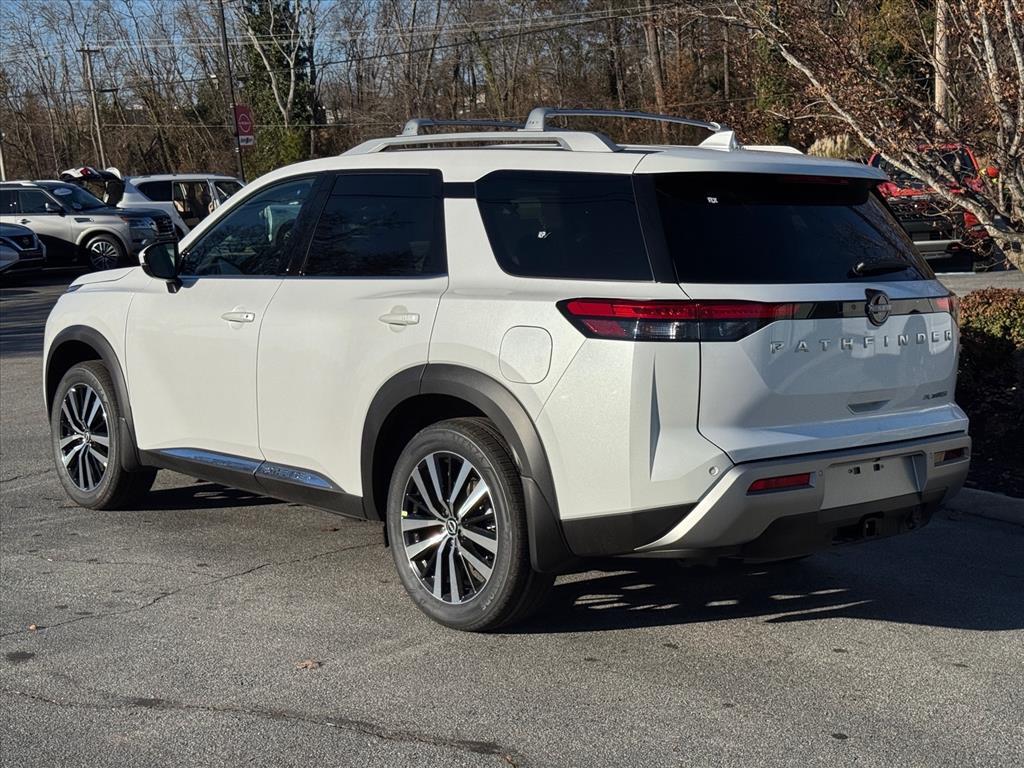 Factory MSRP: $52,310$6,046 off MSRP!Check out this New 2025 Nissan Pathfinder Platinum available at Benso Nissan of Easley in Easley, SC. Offered at just $46264, this Nissan Pathfinder won't last long. This FWD Nissan Pathfinder Platinum is powered by a 3.5L V6 DOHC an includes these features and benefits 13 Speakers, 3rd row seats: bench, 4-Wheel Disc Brakes, ABS brakes, Air Conditioning, Alloy wheels, AM/FM radio: SiriusXM, Auto High-beam Headlights, Auto tilt-away steering wheel, Auto-dimming Rear-View mirror, Automatic temperature control, Bodyside moldings, Bose Premium Audio System, Brake assist, Bumpers: body-color, Climate Controlled Front Bucket Seats, Delay-off headlights, Driver door bin, Driver vanity mirror, Dual front impact airbags, Dual front side impact airbags, Electronic Stability Control, Emergency communication system, Exterior Parking Camera Rear, Four wheel independent suspension, Front anti-roll bar, Front Bucket Seats, Front Center Armrest, Front dual zone A/C, Front reading lights, Fully automatic headlights, Garage door transmitter: HomeLink, Heads-Up Display, Heated door mirrors, Heated front seats, Heated rear seats, Heated steering wheel, Illuminated entry, Knee airbag, Leather steering wheel, Low tire pressure warning, Memory seat, Navigation system: NissanConnect with Navigation and Services, NissanConnect featuring Apple CarPlay and Android Auto, NissanConnect with Navigation and Services, Occupant sensing airbag, Outside temperature display, Overhead airbag, Overhead console, Panic alarm, Passenger door bin, Passenger vanity mirror, Power door mirrors, Power driver seat, Power Liftgate, Power moonroof, Power passenger seat, Power steering, Power windows, Premium Paint, Radio data system, Radio: AM/FM Audio System, Rain sensing wipers, Rear air conditioning, Rear anti-roll bar, Rear reading lights, Rear seat center armrest, Rear side impact airbag, Rear window defroster, Rear window wiper, Reclining 3rd row seat, Remote keyless entry, Security system, Semi-Aniline Leather-Appointed Seating Surfaces, Speed control, Speed-sensing steering, Speed-Sensitive Wipers, Split folding rear seat, Spoiler, Steering wheel memory, Steering wheel mounted audio controls, Tachometer, Telescoping steering wheel, Tilt steering wheel, Traction control, Trip computer, Turn signal indicator mirrors, Variably intermittent wipers, Ventilated front seats, and Wheels: 20 x 8J Ma Price includes: $5000 - Nissan Customer Cash. Exp. 03/02/2