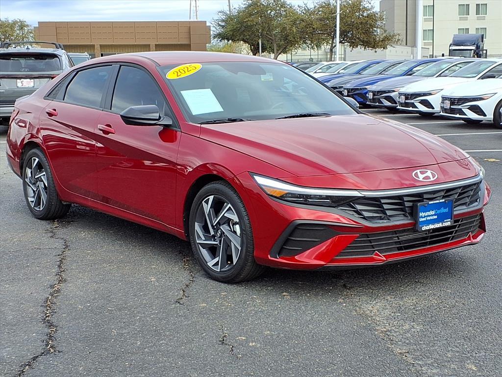 Ultimate Red 2025 Hyundai Elantra SEL Sport FWD CVT I4 17x 7.0J Alloy Wheels, 4-Wheel Disc Brakes, 6 Speakers, ABS brakes, Air Conditioning, Alloy wheels, AM/FM radio, Apple CarPlay & Android Auto, Auto High-beam Headlights, Automatic temperature control, Brake assist, Bumpers: body-color, Carpeted Floor Mats, Delay-off headlights, Driver door bin, Driver vanity mirror, Dual front impact airbags, Dual front side impact airbags, Electronic Stability Control, Exterior Parking Camera Rear, First Aid Kit, Front anti-roll bar, Front Bucket Seats, Front Center Armrest, Front dual zone A/C, Front reading lights, Front wheel independent suspension, Fully automatic headlights, Illuminated entry, Leather Shift Knob, Leather steering wheel, Low tire pressure warning, Occupant sensing airbag, Option Group 01, Outside temperature display, Overhead airbag, Overhead console, Panic alarm, Passenger door bin, Passenger vanity mirror, Power door mirrors, Power steering, Power windows, Premium Cloth Seat Trim, Radio: AM/FM/HD Display Audio, Rear side impact airbag, Rear window defroster, Remote keyless entry, Security system, Speed control, Speed-sensing steering, Spoiler, Steering wheel mounted audio controls, Tachometer, Telescoping steering wheel, Tilt steering wheel, Traction control, Trip computer, Variably intermittent wipers, Wheel Locks. With a reputation for exceptional service and customer satisfaction, were here to make your car-buying experience smooth and enjoyable. Plus, with Nanas Lifetime Warranty comes at no cost, covering the engine, transmission, and drive axles for life at no cost, you can trust that your investment is protected for the long haul. Exceptional Features: Recent Arrival! 30/39 City/Highway MPG Come by Charlie Clark Hyundai Laredo today and experience the quality and reliability of the Hyundai Elantra firsthand. Dont forget, we offer Nanas Lifetime Warranty, giving you peace of mind on the road for years to come. See you soon!