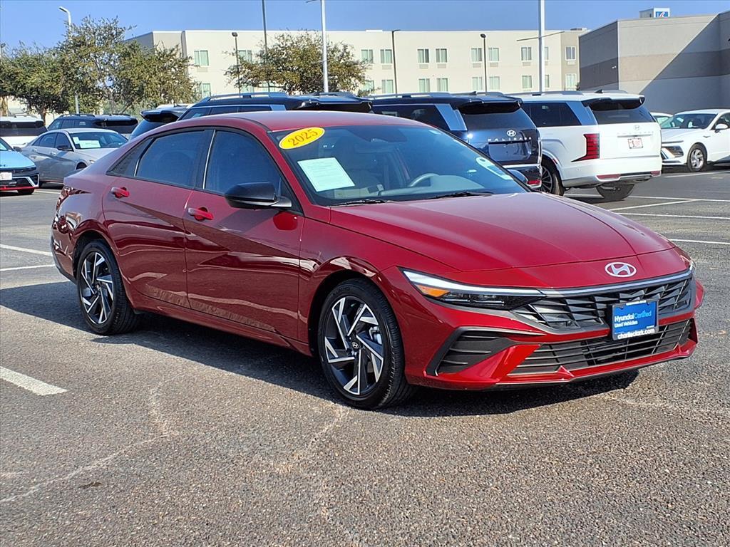 Ultimate Red 2025 Hyundai Elantra SEL Sport FWD CVT I4 17x 7.0J Alloy Wheels, 4-Wheel Disc Brakes, 6 Speakers, ABS brakes, Air Conditioning, Alloy wheels, AM/FM radio, Apple CarPlay & Android Auto, Auto High-beam Headlights, Automatic temperature control, Brake assist, Bumpers: body-color, Cargo Net, Carpeted Floor Mats, Delay-off headlights, Driver door bin, Driver vanity mirror, Dual front impact airbags, Dual front side impact airbags, Electronic Stability Control, Exterior Parking Camera Rear, Front anti-roll bar, Front Bucket Seats, Front Center Armrest, Front dual zone A/C, Front reading lights, Front wheel independent suspension, Fully automatic headlights, Illuminated entry, Leather Shift Knob, Leather steering wheel, Low tire pressure warning, Occupant sensing airbag, Option Group 01, Outside temperature display, Overhead airbag, Overhead console, Panic alarm, Passenger door bin, Passenger vanity mirror, Power door mirrors, Power steering, Power windows, Premium Cloth Seat Trim, Radio: AM/FM/HD Display Audio, Rear side impact airbag, Rear window defroster, Remote keyless entry, Security system, Speed control, Speed-sensing steering, Spoiler, Steering wheel mounted audio controls, Tachometer, Telescoping steering wheel, Tilt steering wheel, Traction control, Trip computer, Variably intermittent wipers, Wheel Locks. With a reputation for exceptional service and customer satisfaction, were here to make your car-buying experience smooth and enjoyable. Plus, with Nanas Lifetime Warranty comes at no cost, covering the engine, transmission, and drive axles for life at no cost, you can trust that your investment is protected for the long haul. Exceptional Features: Recent Arrival! 30/39 City/Highway MPG Come by Charlie Clark Hyundai Laredo today and experience the quality and reliability of the Hyundai Elantra firsthand. Dont forget, we offer Nanas Lifetime Warranty, giving you peace of mind on the road for years to come. See you soon!
