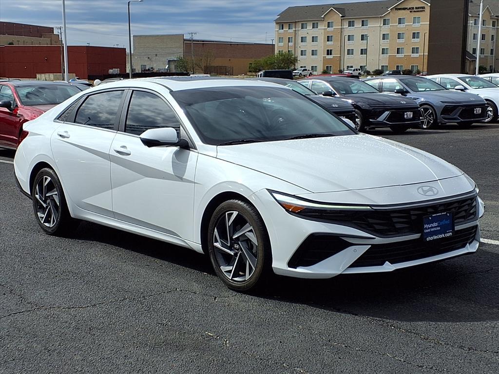 Serenity White 2024 Hyundai Elantra Limited FWD CVT I4 17x 7.0J Alloy Wheels, 4-Wheel Disc Brakes, 8 Speakers, ABS brakes, Air Conditioning, Alloy wheels, AM/FM radio: SiriusXM, Apple CarPlay & Android Auto, Auto High-beam Headlights, Auto-dimming Rear-View mirror, Automatic temperature control, Brake assist, Bumpers: body-color, Cargo Net, Carpeted Floor Mats, Delay-off headlights, Driver door bin, Driver vanity mirror, Dual front impact airbags, Dual front side impact airbags, Electronic Stability Control, Emergency communication system: Bluelink , First Aid Kit, Front anti-roll bar, Front Bucket Seats, Front Center Armrest, Front dual zone A/C, Front reading lights, Front wheel independent suspension, Fully automatic headlights, Heated door mirrors, Heated Front Bucket Seats, Heated front seats, Illuminated entry, Leatherette Seats, Low tire pressure warning, Navigation System, Occupant sensing airbag, Option Group 01, Outside temperature display, Overhead airbag, Overhead console, Panic alarm, Passenger door bin, Passenger vanity mirror, Power door mirrors, Power driver seat, Power moonroof, Power steering, Power windows, Radio: AM/FM/HD/SiriusXM Display Audio, Rear Bumper Applique, Rear seat center armrest, Rear side impact airbag, Rear window defroster, Remote keyless entry, Reversible Cargo Tray, Roadside Assistance Kit, Security system, Speed control, Speed-sensing steering, Split folding rear seat, Steering wheel mounted audio controls, Tachometer, Telescoping steering wheel, Tilt steering wheel, Traction control, Trip computer, Turn signal indicator mirrors, Variably intermittent wipers. With a reputation for exceptional service and customer satisfaction, were here to make your car-buying experience smooth and enjoyable. Plus, with Nanas Lifetime Warranty comes at no cost, covering the engine, transmission, and drive axles for life at no cost, you can trust that your investment is protected for the long haul. Exceptional Features: Recent Arrival! Odometer is 20978 miles below market average! 31/40 City/Highway MPG Come by Charlie Clark Hyundai Laredo today and experience the quality and reliability of the Hyundai Elantra firsthand. Dont forget, we offer Nanas Lifetime Warranty, giving you peace of mind on the road for years to come. See you soon!