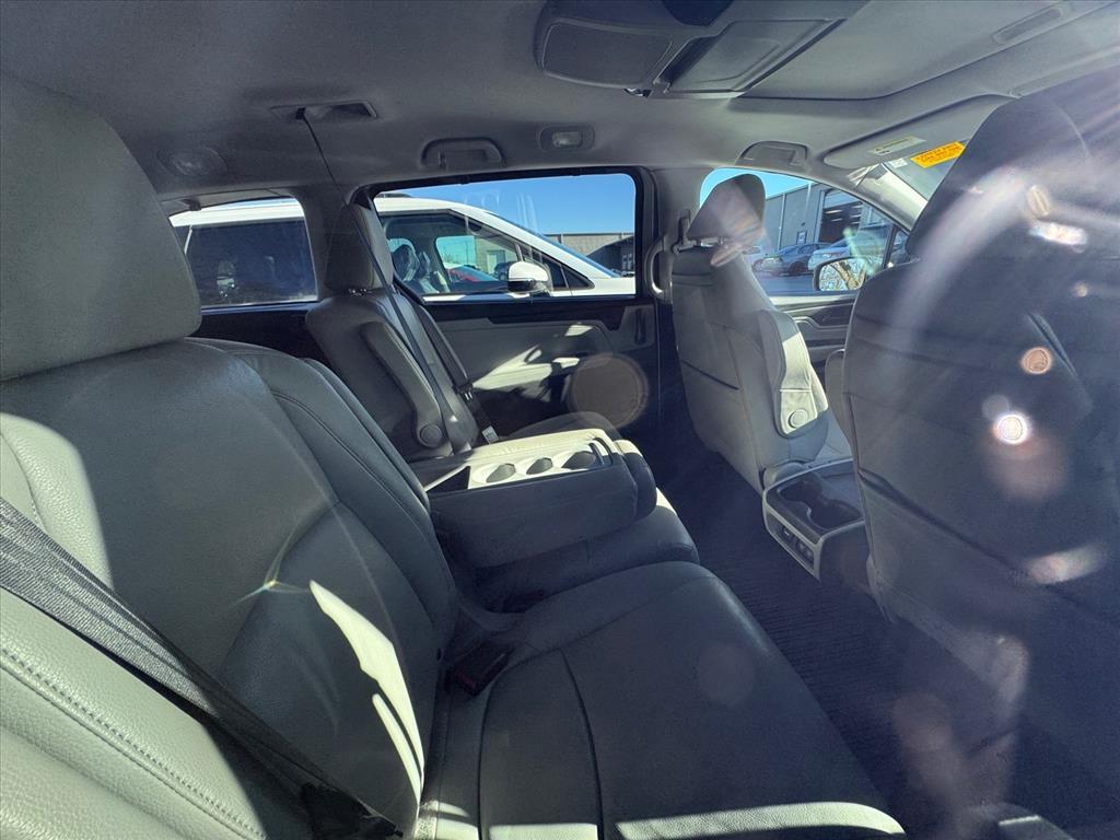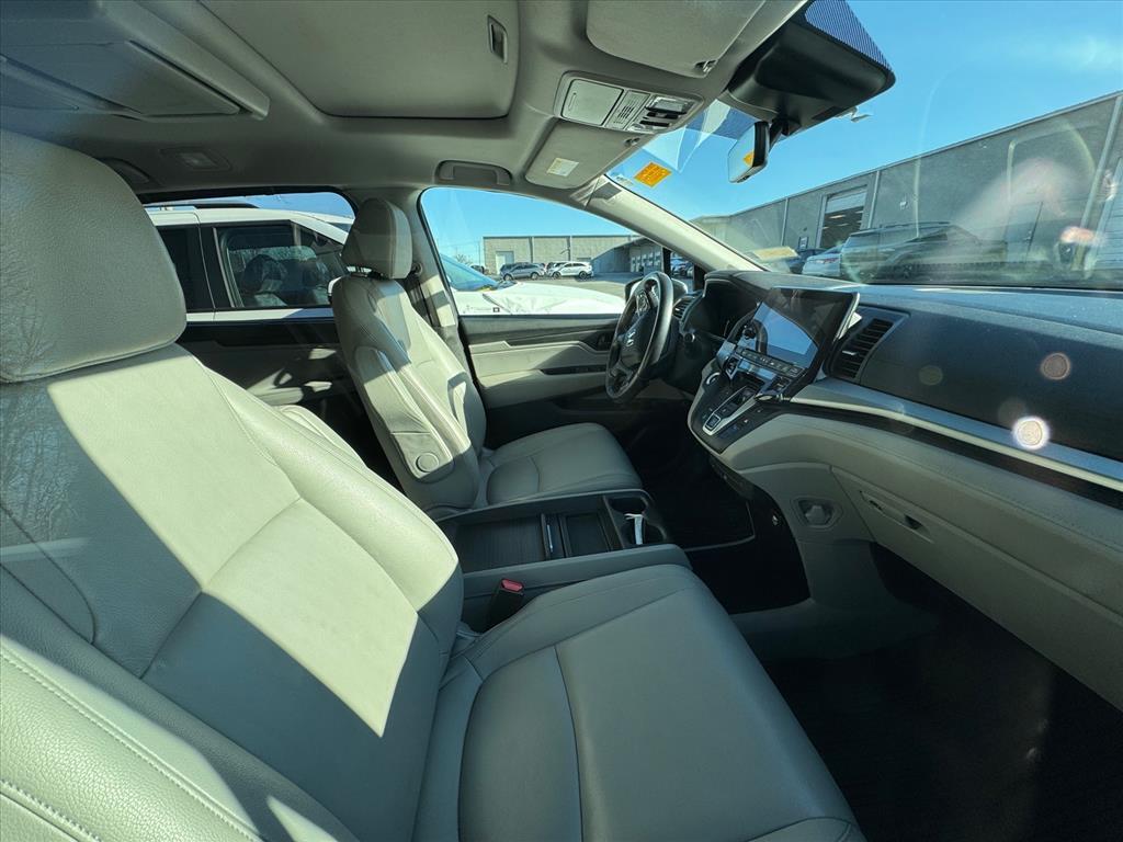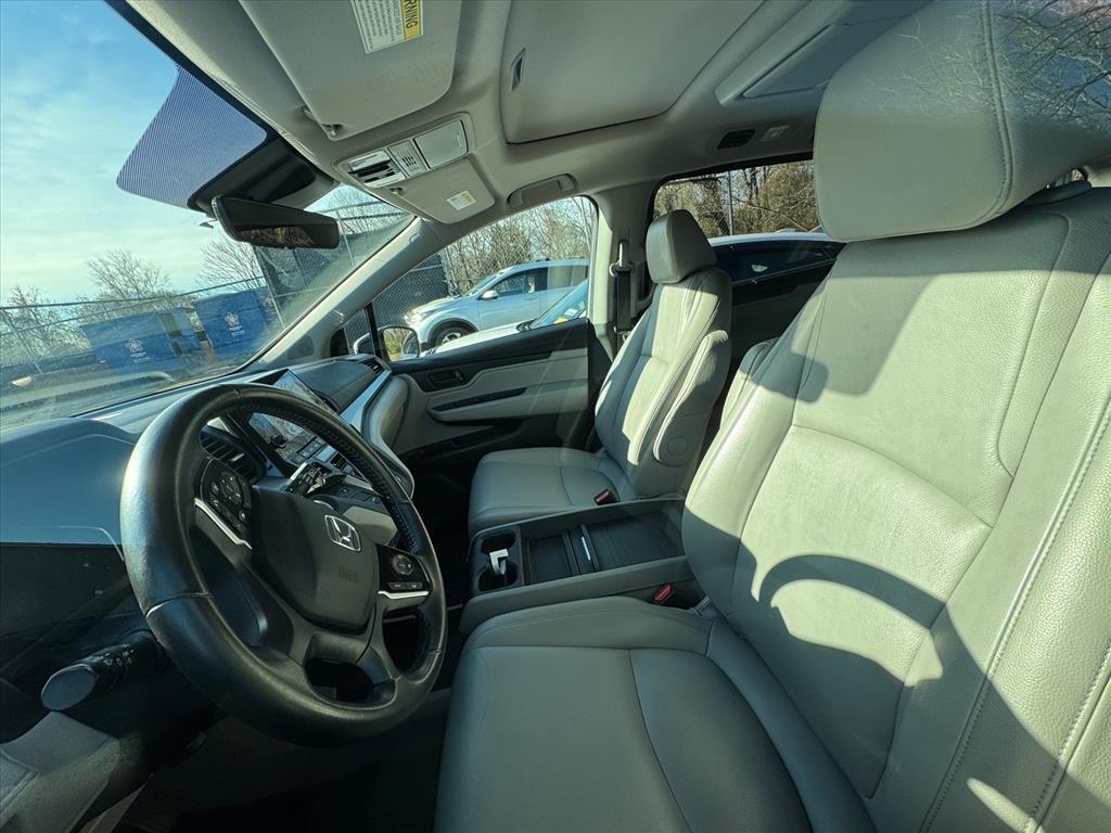 CARFAX One-Owner. 2018 Honda Odyssey EX-L Lunar Silver Metallic Alloy wheels, Apple CarPlay/Android Auto, Auto High-beam Headlights, Auto-dimming Rear-View mirror, Automatic temperature control, Blind Spot Information (BSI) System warning, Exterior Parking Camera Rear, Front dual zone A/C, Heated Front Bucket Seats, Leather Seat Trim, Memory seat, Power Liftgate, Power passenger seat, Radio: 160-Watt AM/FM/HD/SiriusXM Audio System, Rear air conditioning, Remote keyless entry, Speed-Sensitive Wipers, Steering wheel mounted audio controls, 3rd row seats: split-bench, 4-Wheel Disc Brakes, 4.33 Axle Ratio, 7 Speakers, ABS brakes, Air Conditioning, AM/FM radio: SiriusXM, Anti-whiplash front head restraints, Brake assist, Bumpers: body-color, Delay-off headlights, Driver door bin, Driver vanity mirror, Drivers Seat Mounted Armrest, Dual front impact airbags, Dual front side impact airbags, Electronic Stability Control, Emergency communication system: HondaLink, Four wheel independent suspension, Front anti-roll bar, Front Bucket Seats, Front fog lights, Front reading lights, Fully automatic headlights, Garage door transmitter: HomeLink, Heated door mirrors, Heated front seats, Illuminated entry, Knee airbag, Leather steering wheel, Low tire pressure warning, Occupant sensing airbag, Outside temperature display, Overhead airbag, Overhead console, Panic alarm, Passenger door bin, Passenger seat mounted armrest, Passenger vanity mirror, Power door mirrors, Power driver seat, Power moonroof, Power steering, Power windows, Radio data system, Rear anti-roll bar, Rear reading lights, Rear seat center armrest, Rear window defroster, Rear window wiper, Reclining 3rd row seat, Security system, Speed control, Speed-sensing steering, Split folding rear seat, Spoiler, Tachometer, Telescoping steering wheel, Tilt steering wheel, Traction control, Trip computer, Turn signal indicator mirrors, Variably intermittent wipers, Wheels: 18Silver-Painted Alloy, Alloy wheels, Apple CarPlay/Android Auto, Auto High-beam Headlights, Auto-dimming Rear-View mirror, Automatic temperature control, Blind Spot Information (BSI) System warning, Exterior Parking Camera Rear, Front dual zone A/C, Heated Front Bucket Seats, Leather Seat Trim, Memory seat, Power Liftgate, Power passenger seat, Radio: 160-Watt AM/FM/HD/SiriusXM Audio System, Rear air conditioning, Remote keyless entry, Speed-Sensitive Wipers, Steering wheel mounted audio controls. 4D Passenger Van FWD 9-Speed Automatic 3.5L V6 SOHC