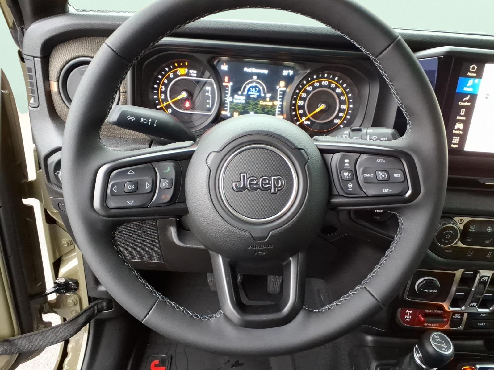 Free Home Delivery within 150 miles! Call Us Now at 423-282-3011! INFORMATION ABOUT THIS VEHICLE AND ITS FEATURES:. Convenience Group (2-Door Passive Entry, Front Door Locks, Air Conditioning with Auto Temp Control, Air Filtering, Cluster 7.0TFT Color Display, Emergency/Assistance Call, Heated Front Seats, Heated Steering Wheel, and Universal Garage Door Opener), Quick Order Package 24H Willys 41 (4WD Willys 41 Swing Gate Decal, 7 and 4 Pin Wiring Harness, 97 MPH Vehicle Max Speed Calibration, Adaptive Cruise Control with Stop, Advanced Brake Assist, Automatic Headlamps, Auxiliary Switches, Body Color Grille with Gloss Black Rings, Body Color Rubicon Highline Flare, Class II Receiver Hitch, Cloth Low-Back Bucket Seats, Conventional Differential Front Axle, Corning Gorilla Glass, Dana M210 Wide HD Tube Front Axle, Dana M220 Wide Rear Axle, Daytime Running Lamps LED Accents, Deep Tint Sunscreen Windows, E-Locker Rear Axle, Front LED Fog Lamps, Full Speed Forward Collision Warning Plus, LED Premium Reflector Headlamps, MOPAR All-Weather Floor Mats, Off-Road Plus Mode, Power Heated Mirrors, Premium Tan Sunrider Soft Top, Premium Wrapped Steering Wheel, Security Alarm, Steel Front Bumper, Steel Rear Bumper, Sun Visors with Illuminated Vanity Mirrors, Wheels: 17x 7.5Fully Painted, Willys Suspension, Willys 41 Retro Edition Buzz Model, Willys 41 Retro Edition Hood Decal, Willys 41 Retro Edition Tailgate Plaque, Willys 41 Retro Edition Wrangler Decal, Willys 41 Retro Shift Bezel Insert, and Willys 41 US Edition U.S. Hood Decal), Steel Power Dome Hood Package (Power Dome Dual Vented Hood), 12.3Touchscreen Display, 4-Wheel Disc Brakes, 4G LTE Wi-Fi Hot Spot, 8 Speakers, ABS brakes, Air Conditioning, Alpine Premium Audio System, AM/FM radio: SiriusXM with 360L, Apple CarPlay, Apple CarPlay/Android Auto, Aux Battery, Body Color 3-Piece Hard Top, Brake assist, Compass, Connectivity - US/Canada, Delay-off headlights, Driver door bin, Driver vanity mirror, Dual front impact airbags, Dual front side impact airbags, Electronic Stability Control, For More Info, Call 800-643-2112, Freedom Panel Storage Bag, Front anti-roll bar, Front Bucket Seats, Front Center Armrest w/Storage, Front fog lights, Front reading lights, Google Android Auto, Illuminated entry, Integrated Center Stack Radio, Integrated roll-over protection, Low tire pressure warning, Manufacture Statement of Origin, Myflexcare Service Plan, No Soft Top, Non-Lock Fuel Cap Without Discriminator, Normal Dut