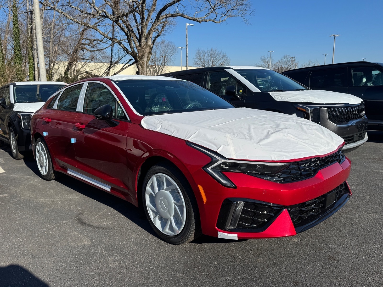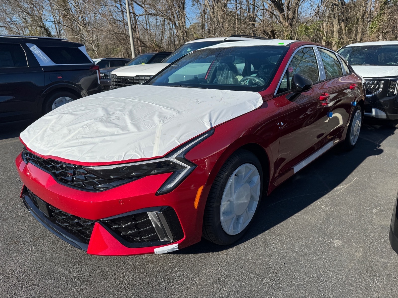 2026 Kia K5 GT-Line Red 4-Wheel Disc Brakes, 6 Speakers, ABS brakes, Air Conditioning, Alloy wheels, AM/FM radio: SiriusXM, Auto High-beam Headlights, Automatic temperature control, Brake assist, Bumpers: body-color, Delay-off headlights, Driver door bin, Driver vanity mirror, Dual front impact airbags, Dual front side impact airbags, Electronic Stability Control, Emergency communication system: Kia Connect (includes 1 year free trial), Four wheel independent suspension, Front anti-roll bar, Front Bucket Seats, Front Center Armrest, Front dual zone A/C, Front fog lights, Front reading lights, Fully automatic headlights, Heated door mirrors, Heated Front Bucket Seats, Heated front seats, Illuminated entry, Knee airbag, Leather Shift Knob, Leather steering wheel, Low tire pressure warning, Navigation System, Occupant sensing airbag, Outside temperature display, Overhead airbag, Overhead console, Panic alarm, Passenger door bin, Passenger vanity mirror, Power door mirrors, Power driver seat, Power steering, Power windows, Radio data system, Radio: AM/FM Audio System, Rear anti-roll bar, Rear seat center armrest, Rear side impact airbag, Rear window defroster, Remote keyless entry, Security system, Speed control, Speed-sensing steering, Split folding rear seat, Sport steering wheel, Steering wheel mounted audio controls, Tachometer, Telescoping steering wheel, Tilt steering wheel, Traction control, Trip computer, Turn signal indicator mirrors, Variably intermittent wipers, Wheels: 18x 7.5J Gloss Black Machined Finish Alloy. 4D Sedan 8-Speed Automatic I4 Thank you for checking out our website at www.KiaOfGreenville.com where we help you find the best vehicle that meets your needs wrapped in a deal you will not want to walk away from. If you have any questions please call us at 864-412-4061 or visit us in person at Fred Anderson Kia of Greenville located at 2424 Laurens Rd Greenville, SC 29607 to learn more! Qualifying New Vehicles bought and serviced here receive our FULL ANDERSON FAMILY PLAN at NO COST to YOU! Our full family plan includes: Peace of Mind 3-Day Vehicle Exchange*Lifetime Oil Changes*Service Loaners*Loyalty Discounts after 50,000 miles All prices exclude tax, tag, license, title, and registration for your state; and our admin ($499) fees. All vehicle internet pricing is subject to change and requires standard financing. From time to time in the transfer of data on the internet, there are errors. Dealer is not responsible for errors in advertis