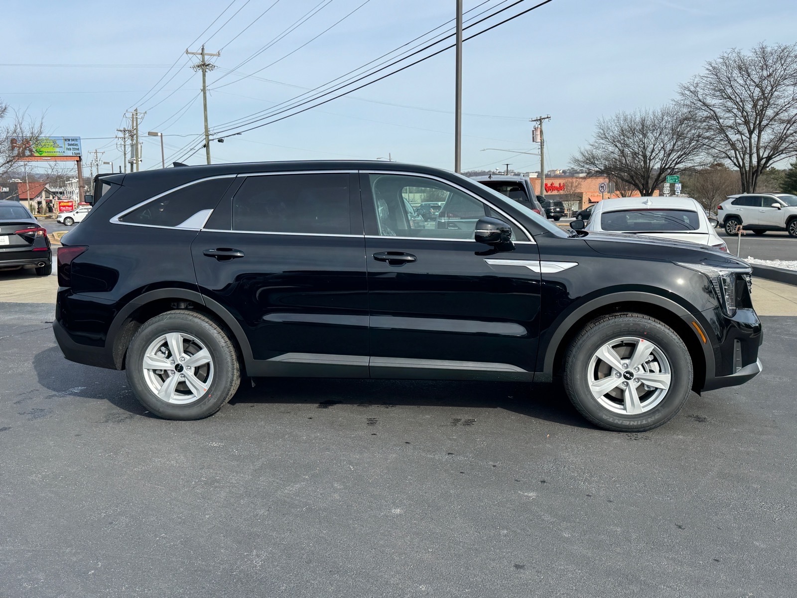 2026 Kia Sorento LX Ebony Black 17Alloy Wheels, 3rd row seats: split-bench, 4-Wheel Disc Brakes, 6 Speakers, ABS brakes, Air Conditioning, Alloy wheels, AM/FM radio: SiriusXM, Apple CarPlay & Android Auto, Auto High-beam Headlights, Brake assist, Bumpers: body-color, Cloth Seat Trim, Delay-off headlights, Driver door bin, Driver vanity mirror, Dual front impact airbags, Dual front side impact airbags, Electronic Stability Control, Emergency communication system: 911 Connect, Exterior Parking Camera Rear, Four wheel independent suspension, Front anti-roll bar, Front Bucket Seats, Front Center Armrest, Front reading lights, Fully automatic headlights, Heated door mirrors, Illuminated entry, Knee airbag, Leather Shift Knob, Leather steering wheel, Low tire pressure warning, Occupant sensing airbag, Outside temperature display, Overhead airbag, Overhead console, Panic alarm, Passenger door bin, Passenger vanity mirror, Power door mirrors, Power steering, Power windows, Radio data system, Radio: AM/FM Standard Sound System, Rear anti-roll bar, Rear reading lights, Rear seat center armrest, Rear side impact airbag, Rear window defroster, Rear window wiper, Remote keyless entry, Security system, Speed control, Speed-sensing steering, Split folding rear seat, Spoiler, Steering wheel mounted audio controls, Tachometer, Telescoping steering wheel, Tilt steering wheel, Traction control, Trip computer, Turn signal indicator mirrors, Variably intermittent wipers. 4D Sport Utility FWD 8-Speed Automatic 2.5L I4 DGI DOHC 16V LEV3-SULEV30 191hp 23/31 City/Highway MPG 23/31 City/Highway MPG Thank you for checking out our website at www.KiaOfGreenville.com where we help you find the best vehicle that meets your needs wrapped in a deal you will not want to walk away from. If you have any questions please call us at 864-412-4061 or visit us in person at Fred Anderson Kia of Greenville located at 2424 Laurens Rd Greenville, SC 29607 to learn more! Qualifying New Vehicles bought and serviced here receive our FULL ANDERSON FAMILY PLAN at NO COST to YOU! Our full family plan includes: Peace of Mind 3-Day Vehicle Exchange*Lifetime Oil Changes*Service Loaners*Loyalty Discounts after 50,000 miles All prices exclude tax, tag, license, title, and registration for your state; and our admin ($499) fees. All vehicle internet pricing is subject to change and requires standard financing. From time to time in the transfer of data on the internet, there are errors. Dealer is not responsibl