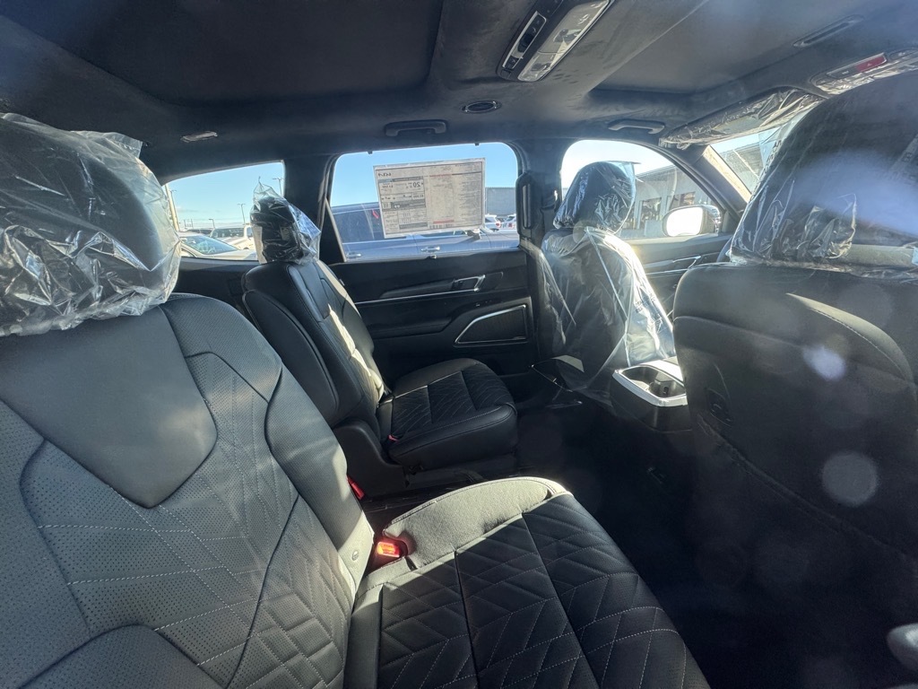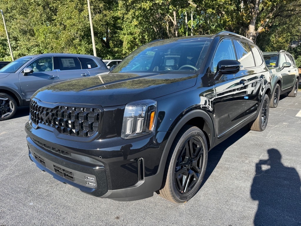 2025 Kia Telluride Ebony Black 10 Speakers, 3rd row seats: split-bench, 4-Wheel Disc Brakes, ABS brakes, Air Conditioning, Alloy wheels, AM/FM radio: SiriusXM, Apple CarPlay & Android Auto, Auto High-beam Headlights, Auto-dimming Rear-View mirror, Auto-leveling suspension, Automatic temperature control, Brake assist, Bumpers: body-color, Compass, Delay-off headlights, Driver door bin, Driver vanity mirror, Dual front impact airbags, Dual front side impact airbags, Electronic Stability Control, Emergency communication system: 911 Connect, Exterior Parking Camera Rear, Four wheel independent suspension, Front anti-roll bar, Front Bucket Seats, Front Center Armrest, Front dual zone A/C, Front fog lights, Front reading lights, Fully automatic headlights, Garage door transmitter: HomeLink, harman/kardon� Speakers, Heated & Ventilated Front Bucket Seats, Heated door mirrors, Heated front seats, Illuminated entry, Knee airbag, Leather Shift Knob, Leather steering wheel, Low tire pressure warning, Memory seat, Navigation System, Occupant sensing airbag, Outside temperature display, Overhead airbag, Overhead console, Panic alarm, Passenger door bin, Passenger vanity mirror, Power door mirrors, Power driver seat, Power Liftgate, Power moonroof, Power passenger seat, Power steering, Power windows, Radio data system, Radio: AM/FM Harman Kardon Audio System, Rear air conditioning, Rear anti-roll bar, Rear audio controls, Rear reading lights, Rear side impact airbag, Rear window defroster, Rear window wiper, Reclining 3rd row seat, Remote keyless entry, Security system, Speed control, Speed-sensing steering, Split folding rear seat, Spoiler, Steering wheel mounted audio controls, Tachometer, Telescoping steering wheel, Tilt steering wheel, Traction control, Trip computer, Turn signal indicator mirrors, Variably intermittent wipers, Ventilated front seats. 4D Sport Utility AWD 8-Speed Automatic 3.8L V6 DOHC 18/23 City/Highway MPG Thank you for checking out our website at www.KiaO