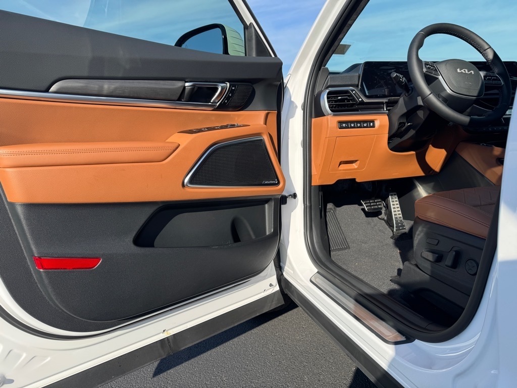 2025 Kia Telluride White 10 Speakers, 3rd row seats: split-bench, 4-Wheel Disc Brakes, ABS brakes, Air Conditioning, Alloy wheels, AM/FM radio: SiriusXM, Apple CarPlay & Android Auto, Auto High-beam Headlights, Auto-dimming Rear-View mirror, Auto-leveling suspension, Automatic temperature control, Brake assist, Bumpers: body-color, Compass, Delay-off headlights, Driver door bin, Driver vanity mirror, Dual front impact airbags, Dual front side impact airbags, Electronic Stability Control, Emergency communication system: 911 Connect, Exterior Parking Camera Rear, Four wheel independent suspension, Front anti-roll bar, Front Bucket Seats, Front Center Armrest, Front dual zone A/C, Front fog lights, Front reading lights, Fully automatic headlights, Garage door transmitter: HomeLink, harman/kardon� Speakers, Heated & Ventilated Front Bucket Seats, Heated door mirrors, Heated front seats, Illuminated entry, Knee airbag, Leather Shift Knob, Leather steering wheel, Low tire pressure warning, Memory seat, Navigation System, Occupant sensing airbag, Outside temperature display, Overhead airbag, Overhead console, Panic alarm, Passenger door bin, Passenger vanity mirror, Power door mirrors, Power driver seat, Power Liftgate, Power moonroof, Power passenger seat, Power steering, Power windows, Radio data system, Radio: AM/FM Harman Kardon Audio System, Rear air conditioning, Rear anti-roll bar, Rear audio controls, Rear reading lights, Rear side impact airbag, Rear window defroster, Rear window wiper, Reclining 3rd row seat, Remote keyless entry, Security system, Speed control, Speed-sensing steering, Split folding rear seat, Spoiler, Steering wheel mounted audio controls, Tachometer, Telescoping steering wheel, Tilt steering wheel, Traction control, Trip computer, Turn signal indicator mirrors, Variably intermittent wipers, Ventilated front seats. 4D Sport Utility AWD 8-Speed Automatic 3.8L V6 DOHC 18/23 City/Highway MPG Thank you for checking out our website at www.KiaOfGreenville.com where we help you find the best vehicle that meets your needs wrapped in a deal you will not want to walk away from. If you have any questions please call us at 864-412-4061 or visit us in person at Fred Anderson Kia of Greenville located at 2424 Laurens Rd Greenville, SC 29607 to learn more! Qualifying New Vehicles bought and serviced here receive our FULL ANDERSON FAMILY PLAN at NO COST to YOU! Our full family plan includes: Peace of Mind 3-Day Vehicle Exchange*Lifetime Oil Changes*S