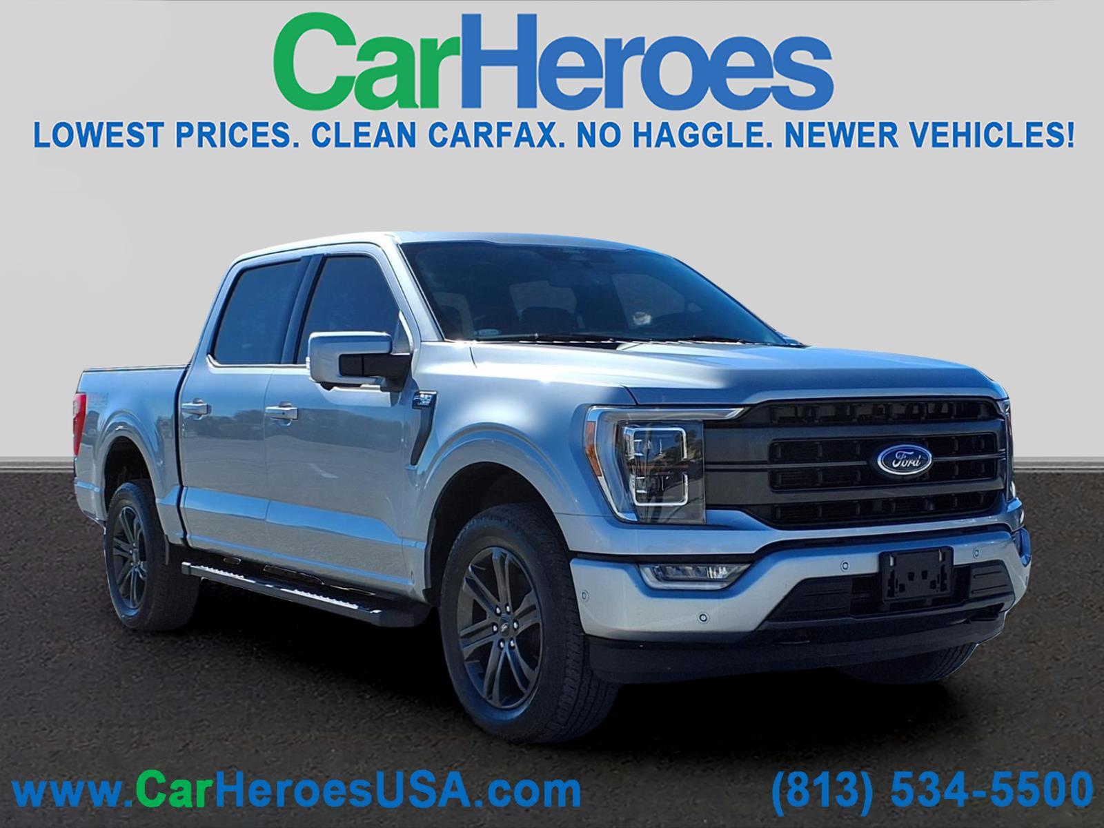 FORD CO-PILOT360 ACTIVE 2.0 - BLUECRUISE! TWIN PANEL MOONROOF! LARIAT SPORT PACKAGE! FX4 OFF ROAD PACKAGE! Clean CARFAX. CERTIFIED 90 DAYS / 3,000 MILES NATIONWIDE LIMITED WARRANTY ON EVERY QUALIFIED VEHICLE! 4.9 OUT OF 5 STARS! 4,200 GOOGLE REVIEWS! THE HIGHEST RATED DEALER IN FLORIDA! CARHEROES = LOWEST PRICES. LARGEST SELECTION. NO HAGGLE. DRIVE HAPPY! **To receive the lower advertised price or Preferred Payment discounted price, the vehicle must be purchased using one of the following preferred payment methods: Capital One Auto Navigator pre approval, or Financing through the dealership with an Approved lender. **YOU MAY CONTACT THE DEALERSHIP FOR A LIST OF APPROVED LENDERS**. A list of approved lenders may be requested by email or talk to a sales representative. If buyer is purchasing the vehicle using any other payment method CarHeroes price (see carheroesusa.com/inventory) will apply. **All prices advertised on any Credit union or third party lenders buying service or third party website are Preferred Payment discounted prices. Customer may choose to receive the Preferred Payment discounted price if they pay for the vehicle with a preferred payment method.** Odometer is 10343 miles below market average! Recent Arrival! 2022 Ford F-150 Lariat 4WD 4D SuperCrew 3.5L V6 EcoBoost 10-Speed Automatic Iconic Silver Metallic 4WD, 2nd Row Heated Seats, 360 Degree Camera, 4x4 FX4 Off-Road Bodyside Decal, ABS brakes, Accent-Color Angular Step Bars, Active Park Assist 2.0, BlueCruise, Body-Color Front & Rear Bumpers, Box Side Decals, Chrome Single-Tip Exhaust, Class IV Trailer Hitch Receiver, Compass, Dark 2-Bar & 1 Minor Bar Style Grille, Electronic Locking w/3.55 Axle Ratio, Electronic Stability Control, Equipment Group 502A High, Ford Co-Pilot360 Active 2.0, Front dual zone A/C, FX4 Off-Road Package, Heated door mirrors, Heated front seats, Heated Steering Wheel, Hill Descent Control, Illuminated entry, Integrated Trailer Brake Controller, Lariat Sport Appearance Package, Leather-Trimmed Bucket Seats, LED Projector w/Dynamic Bending Headlamps, Low tire pressure warning, Monotube Rear Shocks, Off-Road Tuned Front Shock Absorbers, Onboard 400W Outlet, Power Glass Sideview Mirr w/Chrome Skull Caps, Power Tailgate, Power Tilt/Telescoping Steering Column w/Memory, Pro Trailer Backup Assist, Radio: B&O Sound System by Bang & Olufsen, Rain-Sensing Wipers, Remote keyless entry, Rock Crawl Mode, Traction control, Trailer Tow Package, Tray Style Floor Liner (47W), Tw