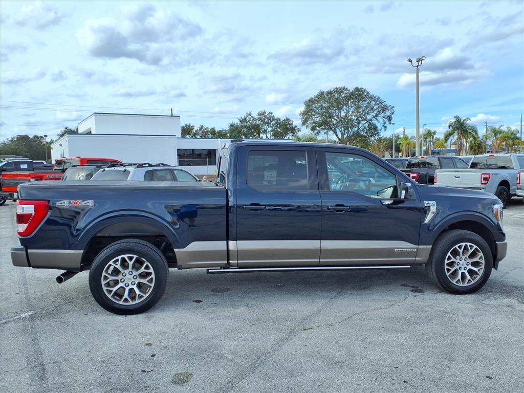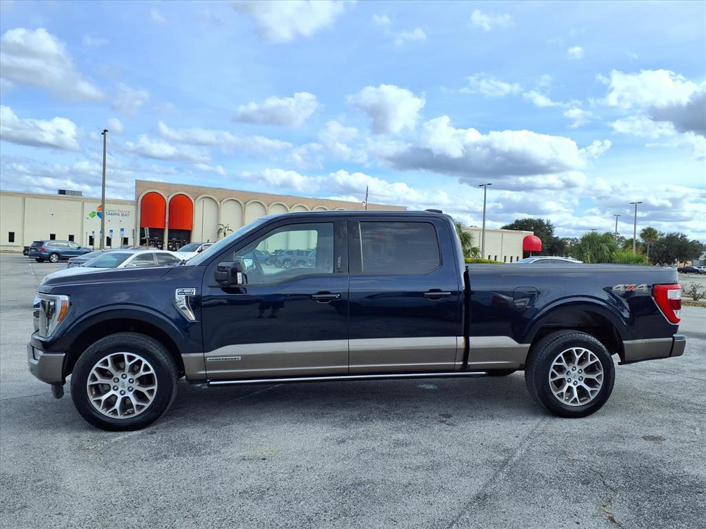 TWIN PANEL MOONROOF! 601A HIGH LUXURY EQUIPMENT GROUP! Clean CARFAX. CERTIFIED 90 DAYS / 3,000 MILES NATIONWIDE LIMITED WARRANTY ON EVERY QUALIFIED VEHICLE! 4.9 OUT OF 5 STARS! 4,200 GOOGLE REVIEWS! THE HIGHEST RATED DEALER IN FLORIDA! CARHEROES = LOWEST PRICES. LARGEST SELECTION. NO HAGGLE. DRIVE HAPPY! **To receive the lower advertised price or Preferred Payment discounted price, the vehicle must be purchased using one of the following preferred payment methods: Capital One Auto Navigator pre approval, or Financing through the dealership with an Approved lender. **YOU MAY CONTACT THE DEALERSHIP FOR A LIST OF APPROVED LENDERS**. A list of approved lenders may be requested by email or talk to a sales representative. If buyer is purchasing the vehicle using any other payment method CarHeroes price (see carheroesusa.com/inventory) will apply. **All prices advertised on any Credit union or third party lenders buying service or third party website are Preferred Payment discounted prices. Customer may choose to receive the Preferred Payment discounted price if they pay for the vehicle with a preferred payment method.** Odometer is 9827 miles below market average! 2023 Ford F-150 King Ranch 4WD 4D SuperCrew 3.5L PowerBoost Full-Hybrid V6 10-Speed Automatic Antimatter Blue Metallic 3.5L PowerBoost Full-Hybrid V6, 4WD, ABS brakes, Alloy wheels, Bed Utility Package, BoxLink, Class IV Trailer Hitch Receiver, Compass, Electronic Locking w/3.73 Axle Ratio, Electronic Stability Control, Equipment Group 601A High, Extended Range 36 Gallon Fuel Tank, Front dual zone A/C, Heated door mirrors, Heated front seats, Heated rear seats, Illuminated entry, Integrated Trailer Brake Controller, LED Box Lighting, Low tire pressure warning, Max Trailer Tow Package, Multi-Contour Driver & Passenger Seats, Power Tailgate, Power-Deployable Running Boards, Pro Trailer Backup Assist & Pro Trailer Hitch Assist, Radio: B&O Unleashed Sound System by Bang & Olufsen, Remote keyless entry, Tailgate Step w/Tailgate Work Surface, Traction control, Twin Panel Moonroof.
