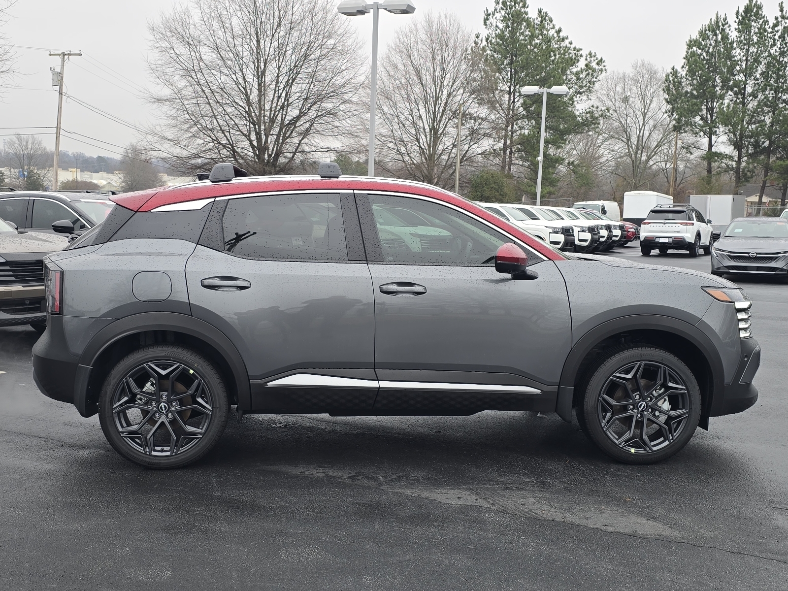 This NEW 2026 Gun Metallic/Scarlet Ember Tintcoat Nissan Kicks SR 2.0L DOHC CVT with Xtronic FWD is well equipped and includes these features and benefits: 17Alloy Wheels, 2-Tone Paint, 4-Wheel Disc Brakes, 6 Speakers, ABS brakes, Air Conditioning, Alloy wheels, AM/FM radio, Auto High-beam Headlights, Automatic temperature control, Bose 10 -Speaker Audio, Brake assist, Bumpers: body-color, Carpeted Floor Mats & Underfloor Protector, Cold Weather Package, Crossbars, Delay-off headlights, Driver door bin, Driver Seat-Mounted Supplemental Air Bag, Driver vanity mirror, Dual front impact airbags, Dual front side impact airbags, Electronic Stability Control, Emergency communication system: NissanConnect Services, Exterior Parking Camera Rear, Front anti-roll bar, Front Bucket Seats, Front Center Armrest, Front reading lights, Front wheel independent suspension, Fully automatic headlights, Garage door transmitter: myQ Connected Garage, Heated Front Seats, Heated Mirrors, Heated Steering Wheel, Illuminated entry, Knee airbag, Leather Shift Knob, Leather steering wheel, Low tire pressure warning, NissanConnect featuring Apple CarPlay and Android Auto, Occupant sensing airbag, Outside temperature display, Overhead airbag, Overhead console, Panic alarm, Panoramic Moonroof, Passenger door bin, Passenger vanity mirror, Power door mirrors, Power steering, Power windows, Radio data system, Radio: AM/FM/SiriusXM Audio System, Rear anti-roll bar, Rear Floor Heater Ducts, Rear reading lights, Rear seat center armrest, Rear side impact airbag, Rear window defroster, Rear window wiper, Remote keyless entry, Security system, Speed control, Speed-sensing steering, Splash Guards, Split folding rear seat, Spoiler, Sport Leatherette w/Cloth Insert Seat Trim, Sport steering wheel, SR Premium Package, Steering wheel mounted audio controls, Tachometer, Telescoping steering wheel, Tilt steering wheel, Traction control, Trip computer, Turn signal indicator mirrors, Variably intermittent wipers, Wheels: 19Dark Gray Alloy. 28/35 City/Highway MPG Due to our amazing pricing, please call before coming down to ensure the vehicle is still available! Price includes: $1000 - Nissan Customer Cash. Exp. 03/02/2026