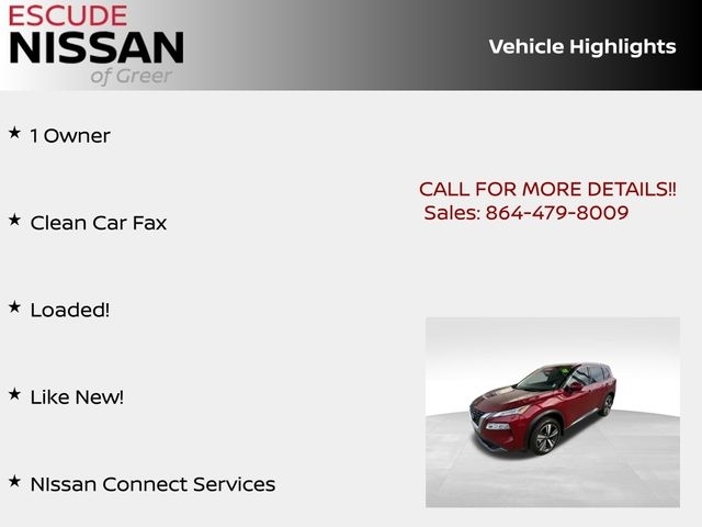Certified. This 2023 Scarlet Ember Tintcoat Nissan Rogue SL AWD is well equipped and includes these features and benefits: 1 Owner, Clean Car Fax, Loaded!, Like New!, NIssan Connect Services, AWD. Nissan Certified Details: * Transferable Warranty * 167 Point Inspection * Limited Warranty: 84 Month/100,000 Mile (whichever occurs first) * 7 Year/100,000 Mile Limited Warranty, 24/7 Hour Roadside Assistance, Carfax Vehicle History Report, Plus 1 Year Pre-Paid Maintenance Included. Gas Powered Nissan Models Only. * Vehicle History * Roadside Assistance * Warranty Deductible: $100 Due to our amazing pricing, please call before coming down to ensure the vehicle is still available!