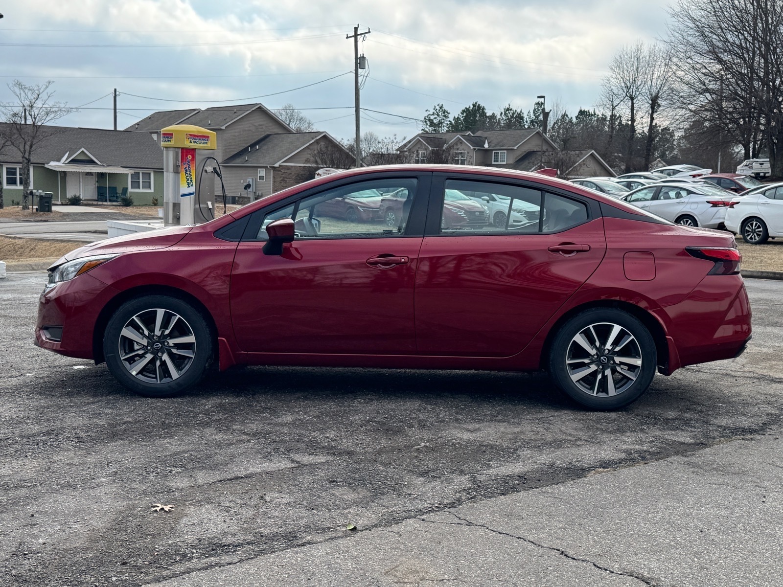 This NEW 2025 Scarlet Ember Tintcoat Nissan Versa 1.6 SV 1.6L I4 DOHC 16V CVT FWD is well equipped and includes these features and benefits: 16Aluminum Alloy Wheels, 4 Speakers, ABS brakes, Air Conditioning, Alloy wheels, Apple CarPlay/Android Auto, Auto High-beam Headlights, Blind Spot Warning, Brake assist, Bumpers: body-color, Carpeted Floor Mats & Trunk Mat (5-Piece Set), Delay-off headlights, Driver door bin, Driver vanity mirror, Dual front impact airbags, Dual front side impact airbags, Electronic Stability Control, Front anti-roll bar, Front Bucket Seats, Front Center Armrest, Front reading lights, Front wheel independent suspension, Fully automatic headlights, Heated door mirrors, Illuminated entry, Knee airbag, Low tire pressure warning, Occupant sensing airbag, Outside temperature display, Overhead airbag, Panic alarm, Passenger door bin, Passenger vanity mirror, Power door mirrors, Power steering, Power windows, Premium Paint, Radio data system, Radio: AM/FM Audio System, Rear Parking Sensors, Rear side impact airbag, Rear window defroster, Remote keyless entry, Shopping Bag Hooks, Speed control, Splash Guards, Split folding rear seat, Steering wheel mounted audio controls, Tachometer, Telescoping steering wheel, Tilt steering wheel, Traction control, Trip computer, Trunk Net, Trunk Package, Upgraded Cloth Seat Trim, Variably intermittent wipers. 32/40 City/Highway MPG Due to our amazing pricing, please call before coming down to ensure the vehicle is still available! Price includes: $750 - Nissan MY25 Bonus Cash. Exp. 03/02/2026