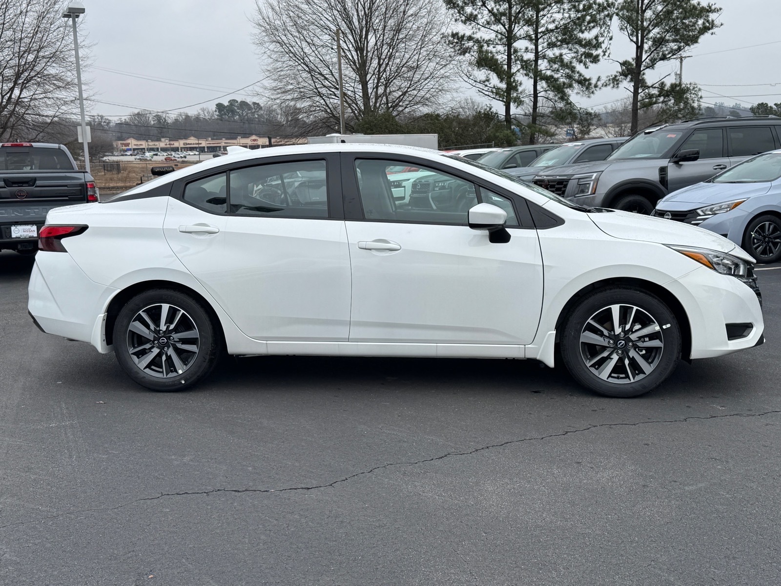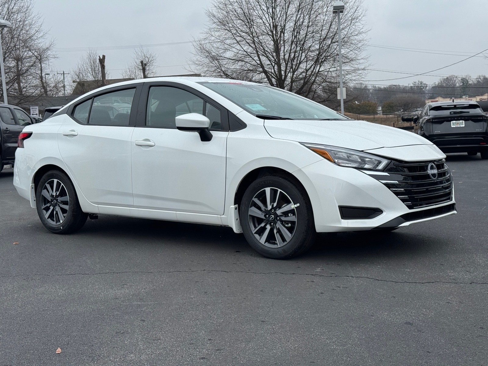 This NEW 2025 Aspen White Tricoat Nissan Versa 1.6 SV 1.6L I4 DOHC 16V CVT FWD is well equipped and includes these features and benefits: 16Aluminum Alloy Wheels, 4 Speakers, ABS brakes, Air Conditioning, Alloy wheels, Apple CarPlay/Android Auto, Auto High-beam Headlights, Blind Spot Warning, Brake assist, Bumpers: body-color, Carpeted Floor Mats & Trunk Mat (5-Piece Set), Delay-off headlights, Driver door bin, Driver vanity mirror, Dual front impact airbags, Dual front side impact airbags, Electronic Stability Control, Front anti-roll bar, Front Bucket Seats, Front Center Armrest, Front reading lights, Front wheel independent suspension, Fully automatic headlights, Heated door mirrors, Illuminated entry, Knee airbag, Low tire pressure warning, Occupant sensing airbag, Outside temperature display, Overhead airbag, Panic alarm, Passenger door bin, Passenger vanity mirror, Power door mirrors, Power steering, Power windows, Premium Paint, Radio data system, Radio: AM/FM Audio System, Rear Parking Sensors, Rear side impact airbag, Rear window defroster, Remote keyless entry, Shopping Bag Hooks, Speed control, Splash Guards, Split folding rear seat, Steering wheel mounted audio controls, Tachometer, Telescoping steering wheel, Tilt steering wheel, Traction control, Trip computer, Trunk Net, Trunk Package, Upgraded Cloth Seat Trim, Variably intermittent wipers. 32/40 City/Highway MPG Due to our amazing pricing, please call before coming down to ensure the vehicle is still available! Price includes: $750 - Nissan MY25 Bonus Cash. Exp. 03/02/2026