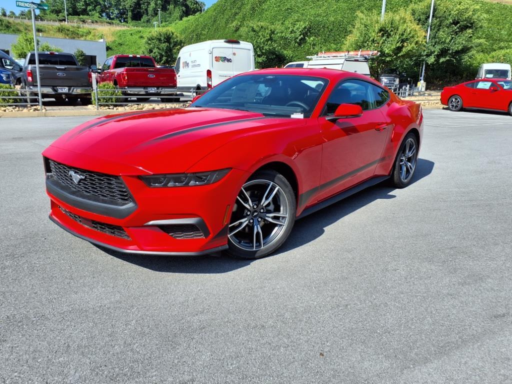 2025 Ford Mustang EcoBoost Premium EcoBoost 2.3L I4 GTDi DOHC Turbocharged VCT INFORMATION ABOUT THIS VEHICLE AND IT FEATURES:, Active Valve Performance Exhaust, Auto High-beam Headlights, Automatic temperature control, Brake assist, Delay-off headlights, Electronic Stability Control, Exterior Parking Camera Rear, Four wheel independent suspension, Front anti-roll bar, Front Bucket Seats, Front Center Armrest, Front dual zone A/C, Front reading lights, Fully automatic headlights, Illuminated entry, Knee airbag, Leather Shift Knob, Overhead airbag, Panic alarm, Power door mirrors, Power windows, Radio data system, Rain sensing wipers, Rear Parking Sensors, Rear window defroster, Remote keyless entry, Speed control, Speed-sensing steering, Speed-Sensitive Wipers, Split folding rear seat, Steering wheel mounted audio controls, SYNC 4, Tachometer, Tilt steering wheel, Traction control, Trip computer, Variably intermittent wipers, Voltmeter, Wheel & Stripe Package, Wheels: 19x 8.5Machined-Face Aluminum. Wheel & Stripe Package (Wheels: 19x 8.5Machined-Face Aluminum), Active Valve Performance Exhaust, Auto High-beam Headlights, Automatic temperature control, Brake assist, Delay-off headlights, Electronic Stability Control, Exterior Parking Camera Rear, Four wheel independent suspension, Front anti-roll bar, Front Bucket Seats, Front Center Armrest, Front dual zone A/C, Front reading lights, Fully automatic headlights, Illuminated entry, Knee airbag, Leather Shift Knob, Overhead airbag, Panic alarm, Power door mirrors, Power windows, Radio data system, Rain sensing wipers, Rear Parking Sensors, Rear window defroster, Remote keyless entry, Speed control, Speed-sensing steering, Speed-Sensitive Wipers, Split folding rear seat, Steering wheel mounted audio controls, SYNC 4, Tachometer, Tilt steering wheel, Traction control, Trip computer, Variably intermittent wipers, Voltmeter, 4-Wheel Disc Brakes, ABS brakes, Air Conditioning, Alloy wheels, AM/FM Stereo, Bumpers: body-color, Compass, Driver door bin, Driver vanity mirror, Dual front impact airbags, Dual front side impact airbags, Emergency communication system: 911 Assist, Low tire pressure warning, Occupant sensing airbag, Outside temperature display, Overhead console, Passenger door bin, Passenger vanity mirror, Power steering, Rear anti-roll bar, Sport steering wheel, and Telescoping steering wheel. We make every effort to present information that is accurate. However, it is based on data provided by the