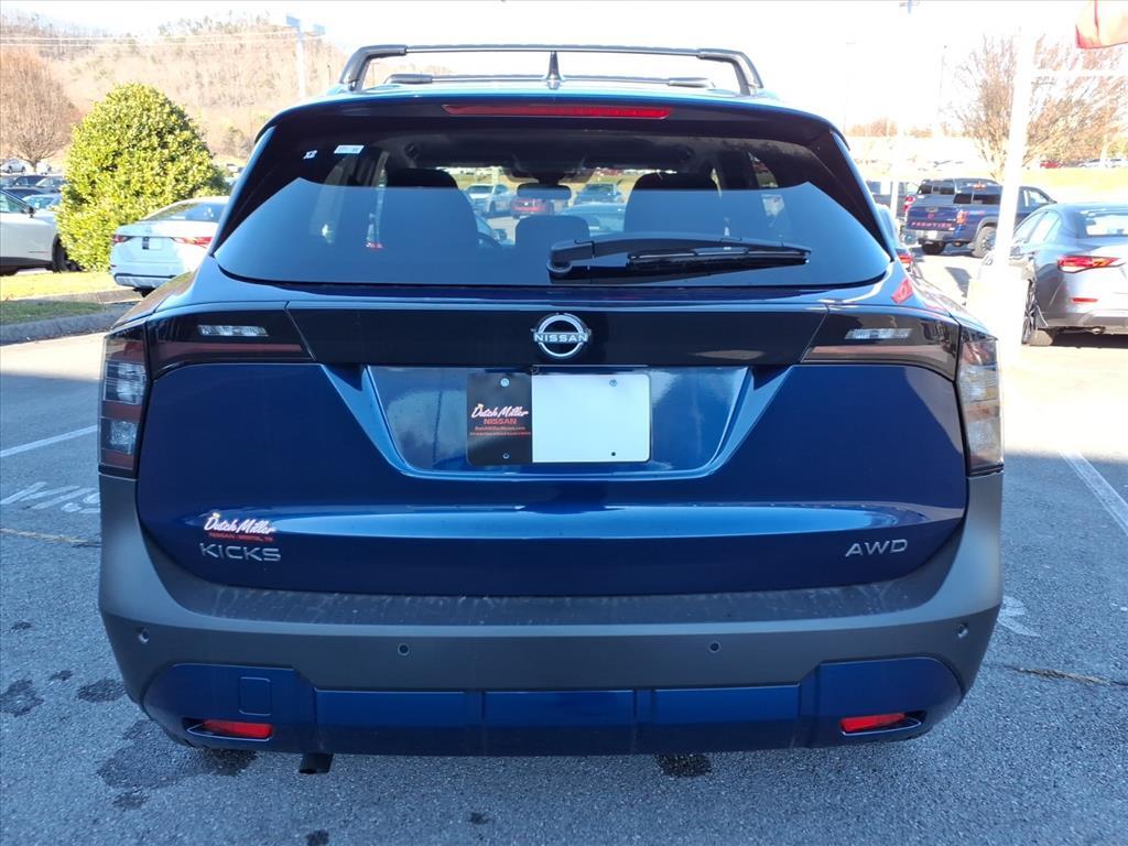 Vehicle Details2026 Nissan Kicks SV AWD - 4-cylinder 2.0L, Bristol TN. Looking for a compact SUV that combines fuel-efficient performance with modern tech and advanced safety This 2026 Nissan Kicks SV delivers confident all-wheel traction, a responsive 4-cylinder 2.0L gasoline engine, and smart features that fit your daily drive. Located in Bristol, TN, this Nissan Kicks is competitively priced and currently offered at the best price in the area. Inside, enjoy seamless smartphone integration with Apple CarPlay, a Back-Up Camera for easy parking, and Hands-Free Bluetooth for safer calls and media control. Remote Start adds convenience on cool mornings or hot afternoons, while Lane Departure Warning helps keep you centered and confident on highways. The interior is thoughtfully designed for comfort and practicality, with spacious seating and cargo space for errands, commutes, and weekend adventures. This Nissan Kicks SV AWD is ideal for drivers who want dependable traction without sacrificing fuel economy or modern conveniences. With a combination of value, safety technology, and connectivity, it's an excellent choice for families, commuters, and anyone who appreciates smart, efficient design. Stop by in Bristol, TN to test drive this 2026 Nissan Kicks SV and see why it's the best-priced option in the market today. Competitive financing and trade-ins welcome.EquipmentThis small suv offers Apple CarPlay for seamless connectivity. Never get into a cold vehicle again with the remote start feature on this vehicle. This Nissan Kicks offers Android Auto for seamless smartphone integration. Protect this model from unwanted accidents with a cutting edge backup camera system. The vehicle keeps you comfortable with Auto Climate. The rear parking assist technology on it will put you at ease when reversing. The system alerts you as you get closer to an obstruction. Its Lane Departure Warning helps keep you in your lane. The vehicle features a hands-free Bluetooth phone system. This vehicle has a 4 Cyl, 2.0L high output engine. This 2026 Nissan Kicks is equipped with all wheel drive. Set the temperature exactly where you are most comfortable in this small suv. The fan speed and temperature will automatically adjust to maintain your preferred zone climate. This small suv shines with an exquisite blue finish.PackagesCold Weather Package: Heated Front Seats; Rear Floor Heater Ducts; Heated Mirrors. SV Premium Package:
