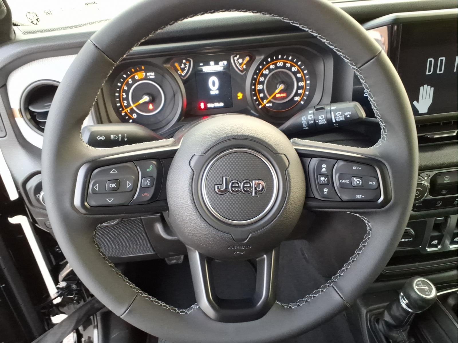 Factory MSRP: $44,055Bluetooth, Fresh Oil Change, Fully Detailed, Safety Inspected, 125 Point Inspected, Local Trade. 2026 Jeep Wrangler Sport S Black Clearcoat 4WD 6-Speed Manual 3.6L V6 24V VVT 2D Sport UtilityLED Headlamp and Fog Lamp Group (Front LED Fog Lamps and LED Premium Reflector Headlamps), Quick Order Package 23S Sport S (Advanced Brake Assist, Automatic Headlamps, Corning Gorilla Glass, Deep Tint Sunscreen Windows, Enhanced Adaptive Cruise Control, Full Speed Forward Collision Warning Plus, Power Heated Mirrors, Premium Wrapped Steering Wheel, Security Alarm, Sun Visors with Illuminated Vanity Mirrors, and Wheels: 17 x 7.5 Gray), 12.3 Touchscreen Display, 3.45 Overall Top Gear Ratio, 4-Wheel Disc Brakes, 4G LTE Wi-Fi Hot Spot, 8 Speakers, ABS brakes, Air Conditioning, AM/FM radio: SiriusXM with 360L, Apple CarPlay, Apple CarPlay/Android Auto, Aux Battery, Black 3-Piece Hard Top, Brake assist, Cloth Low-Back Bucket Seats, Compass, Connectivity - US/Canada, Delay-off headlights, Driver door bin, Driver vanity mirror, Dual front impact airbags, Dual front side impact airbags, Electronic Stability Control, For More Info, Call 800-643-2112, Freedom Panel Storage Bag, Front anti-roll bar, Front Bucket Seats, Front Center Armrest w/Storage, Front fog lights, Front reading lights, Google Android Auto, Illuminated entry, Integrated Center Stack Radio, Integrated roll-over protection, Low tire pressure warning, Myflexcare Service Plan, Non-Lock Fuel Cap Without Discriminator, Normal Duty Suspension, Occupant sensing airbag, Outside temperature display, Overhead airbag, Panic alarm, ParkView Rear Back-Up Camera, Passenger door bin, Passenger vanity mirror, Power steering, Power windows, Radio data system, Radio: Uconnect 5 with 12.3 Display, Rear anti-roll bar, Rear reading lights, Rear Window Defroster, Rear Window Wiper/Washer, Remote keyless entry, SiriusXM Radio Service, SiriusXM with 360L, Speed control, Steering wheel mounted audio controls, Stop-Start Dual Battery System, Tachometer, Telescoping steering wheel, Tilt steering wheel, Traction control, Trip computer, Variably intermittent wipers, and Wheels: 17 x 7.5 Black Steel Styled.