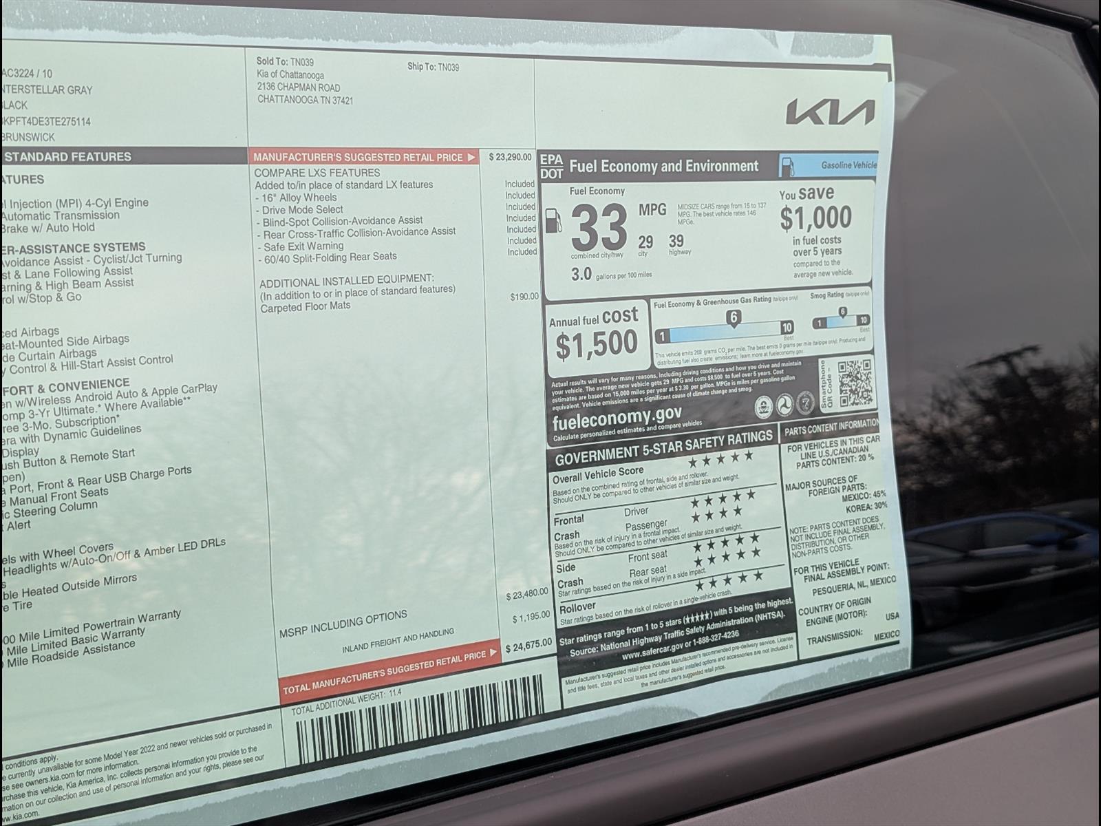 Fuel Economy Display MPG