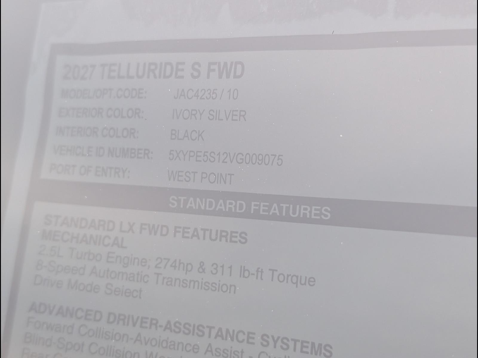 I would like to learn more about the 2027 Kia Telluride that you have in your inventory. Please contact me as soon as you can.