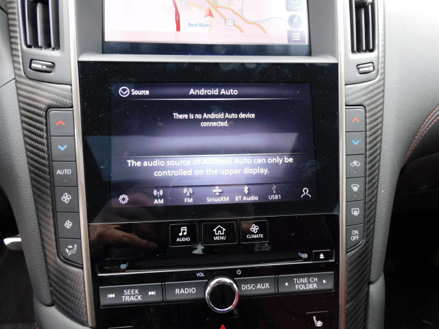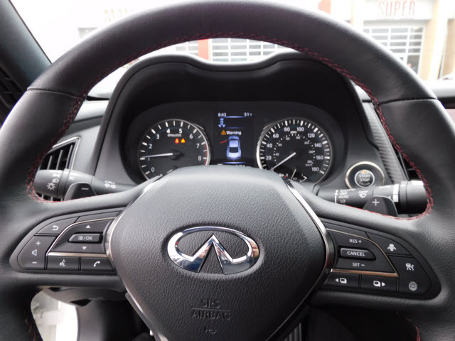 Dual front airbags, front seat mounted side-impact airbags, dual roof mounted curtain side-impact airbags – all rows with rollover sensor, four-wheel disc brakes with anti-lock, brake assist, electronic brake force distribution, traction control, electronic vehicle stability control, Bluetooth hands free phone system, rearview monitor, LED daytime running lights, automatic bi-functional Xenon high intensity discharge headlights, LED front fog lights, INFINITI intelligent key, push button engine start, automatic power door locks, HomeLink universal transceiver, remote keyless entry, vehicle immobilizer system, vehicle security system, and tire pressure monitoring system.
