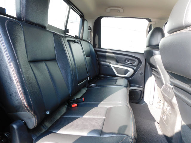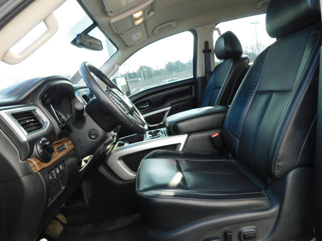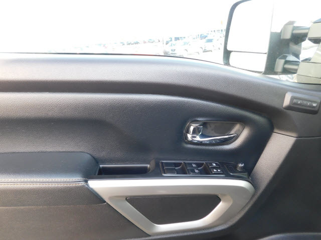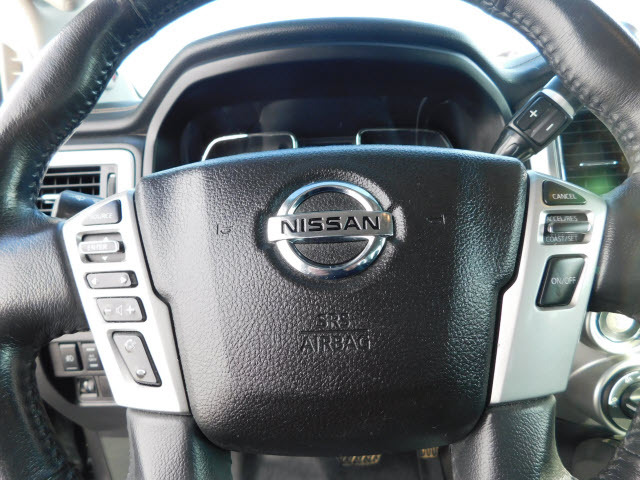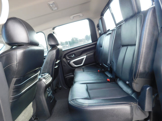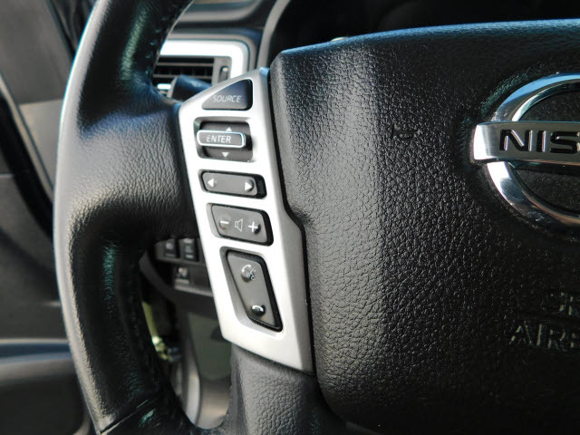 Dual front airbags, front seat mounted side-impact airbags, dual front/rear head curtain airbags with rollover sensor, four-wheel disc brakes with anti-lock, brake assist, electronic brake force distribution, traction control, vehicle dynamic control, high-strength steel side door guard beams, vehicle security system, engine immobilizer, Bluetooth hands free phone system, NissanConnect, remote keyless entry, full-size spare tire, and tire pressure monitoring system. SV adds trailer sway control. PRO-4X adds automatic headlights, daytime running lights, fog lights, navigation system, rain-sensing windshield wipers, RearView Monitor, blind spot warning, and rear cross traffic alert. SL adds remote engine start, HomeLink universal transceiver, and front/rear sonar systems. Platinum Reserve adds trailer brake controller, and Around View Monitor.