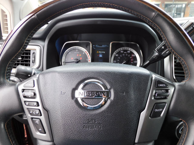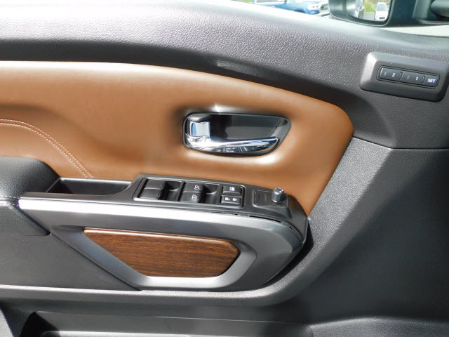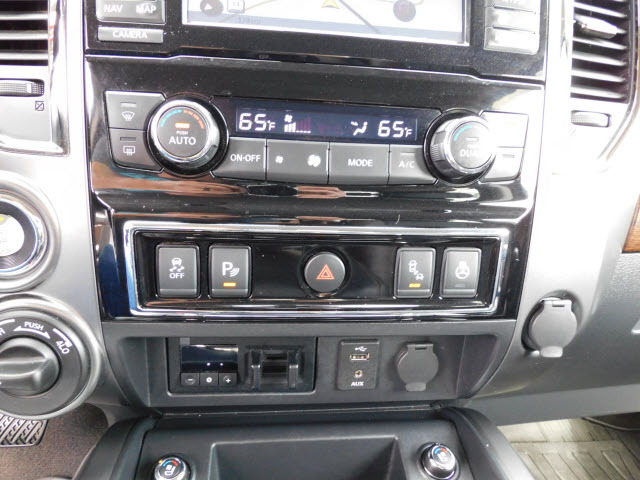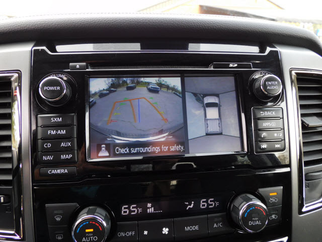 Dual front airbags, front seat mounted side-impact airbags, dual front/rear head curtain airbags with rollover sensor, four-wheel disc brakes with anti-lock, brake assist, electronic brake force distribution, traction control, vehicle dynamic control, high-strength steel side door guard beams, vehicle security system, engine immobilizer, Bluetooth hands free phone system, NissanConnect, remote keyless entry, full-size spare tire, and tire pressure monitoring system. SV adds trailer sway control. PRO-4X adds automatic headlights, daytime running lights, fog lights, navigation system, rain-sensing windshield wipers, RearView Monitor, blind spot warning, and rear cross traffic alert. SL adds remote engine start, HomeLink universal transceiver, and front/rear sonar systems. Platinum Reserve adds trailer brake controller, and Around View Monitor.