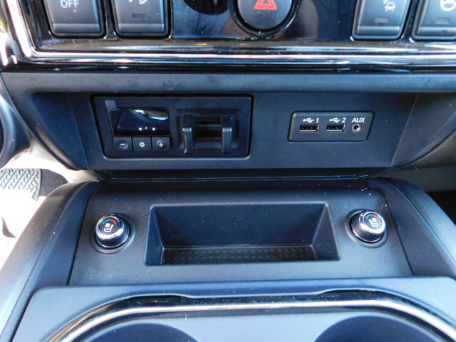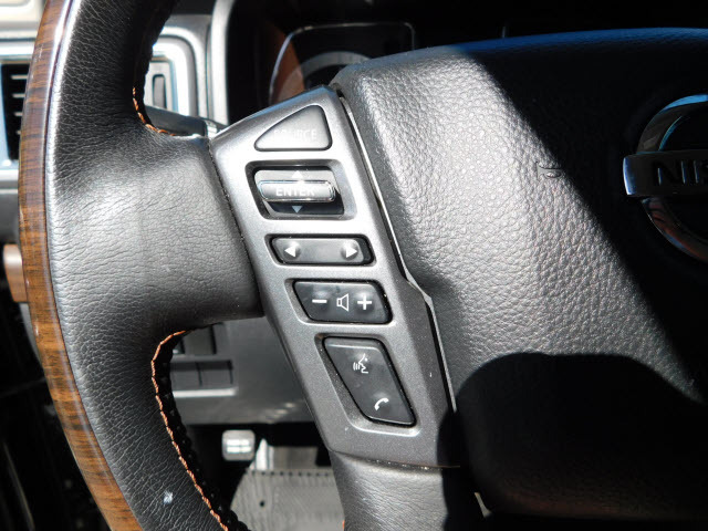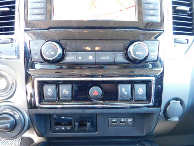 Dual front airbags, front seat mounted side-impact airbags, dual front/rear head curtain airbags with rollover sensor, four-wheel disc brakes with anti-lock, brake assist, electronic brake force distribution, traction control, vehicle dynamic control, high-strength steel side door guard beams, vehicle security system, engine immobilizer, Bluetooth hands free phone system, NissanConnect, remote keyless entry, full-size spare tire, and tire pressure monitoring system. SV adds trailer sway control. PRO-4X adds automatic headlights, daytime running lights, fog lights, navigation system, rain-sensing windshield wipers, RearView Monitor, blind spot warning, and rear cross traffic alert. SL adds remote engine start, HomeLink universal transceiver, and front/rear sonar systems. Platinum Reserve adds trailer brake controller, and Around View Monitor.