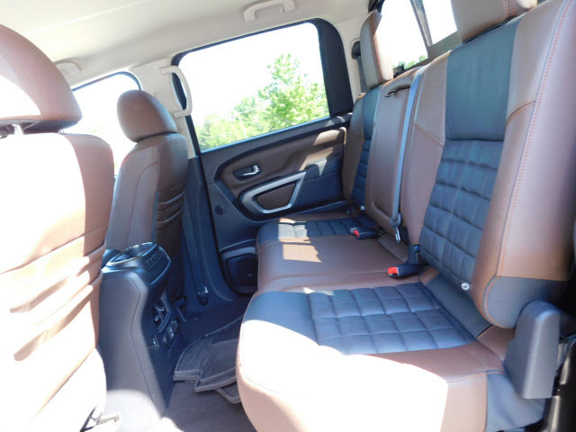 Inside the passenger cabin, the designers focused on enhanced utility and on making the interior easy to use through improved layout of switched, driver control and storage spaces. Front storage has been increased 33 percent and rear storage 28 percent, for example, over the previous generation Titan. New second row under seat storage includes a locking lid for added security and the integrated fold-out flat floor. The center console can hold a computer tablet with case or a 15-inch laptop.