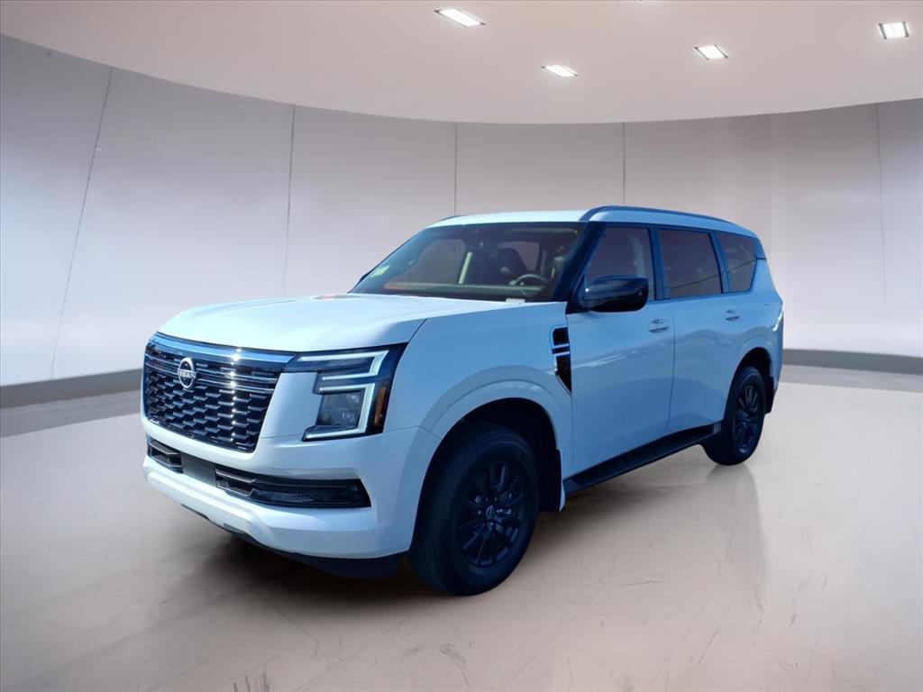 Aspen White Tricoat 2026 Nissan Armada SV RWD 9-Speed Automatic 3.5L DOHC 3rd row seats: split-bench, AM/FM radio: SiriusXM w/360L, Apple CarPlay/Android Auto, Auto High-beam Headlights, Emergency communication system: NissanConnect Services, Exterior Parking Camera Rear, Front dual zone A/C, Illuminated entry, Leatherette Seat Trim, Remote keyless entry, 18x 8J Alloy Wheels, 4-Wheel Disc Brakes, 6 Speakers, ABS brakes, Air Conditioning, Alloy wheels, Anti-whiplash front head restraints, Auto-leveling suspension, Automatic temperature control, Brake assist, Bumpers: body-color, Carpeted Floor Mats with Bench Seat, Center Front Spoiler, Compass, Delay-off headlights, Driver door bin, Driver vanity mirror, Dual front impact airbags, Dual front side impact airbags, Electronic Stability Control, Four wheel independent suspension, Front anti-roll bar, Front Bucket Seats, Front Center Armrest, Front reading lights, Fully automatic headlights, Garage door transmitter: myQ Connected Garage, HVAC memory, Knee airbag, Leather steering wheel, Low tire pressure warning, Occupant sensing airbag, Outside temperature display, Overhead airbag, Overhead console, Panic alarm, Passenger door bin, Passenger vanity mirror, Power door mirrors, Power driver seat, Power passenger seat, Power steering, Power windows, Premium Paint, Radio: NissanConnect with SiriusXM 360L, Rain sensing wipers, Rear air conditioning, Rear anti-roll bar, Rear reading lights, Rear seat center armrest, Rear window defroster, Rear window wiper, Reclining 3rd row seat, Security system, Speed control, Speed-sensing steering, Speed-Sensitive Wipers, Splash Guards, Split folding rear seat, Spoiler, Steering wheel mounted audio controls, Tachometer, Telescoping steering wheel, Tilt steering wheel, Traction control, Trip computer, Variably intermittent wipers, Voltmeter, 3rd row seats: split-bench, AM/FM radio: SiriusXM w/360L, Apple CarPlay/Android Auto, Auto High-beam Headlights, Emergency communication system: NissanConnect Services, Exterior Parking Camera Rear, Front dual zone A/C, Illuminated entry, Leatherette Seat Trim, Remote keyless entry. Recent Arrival!