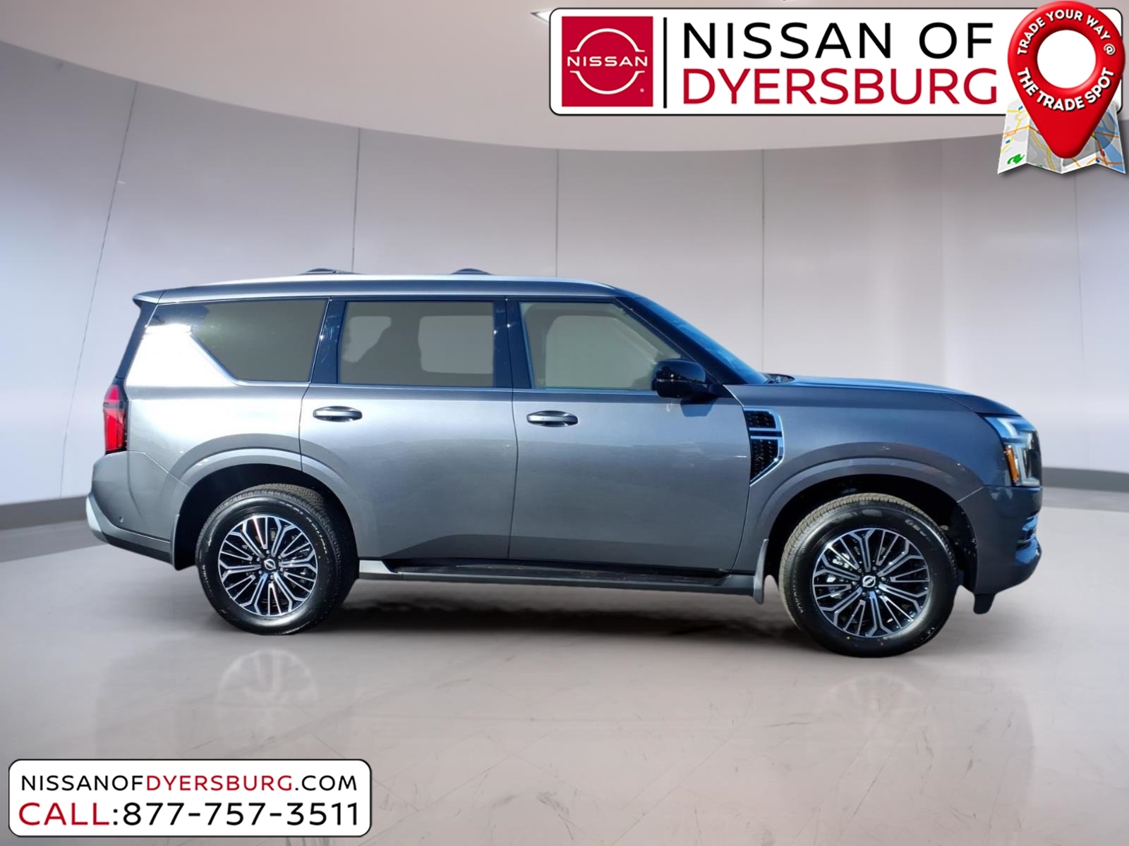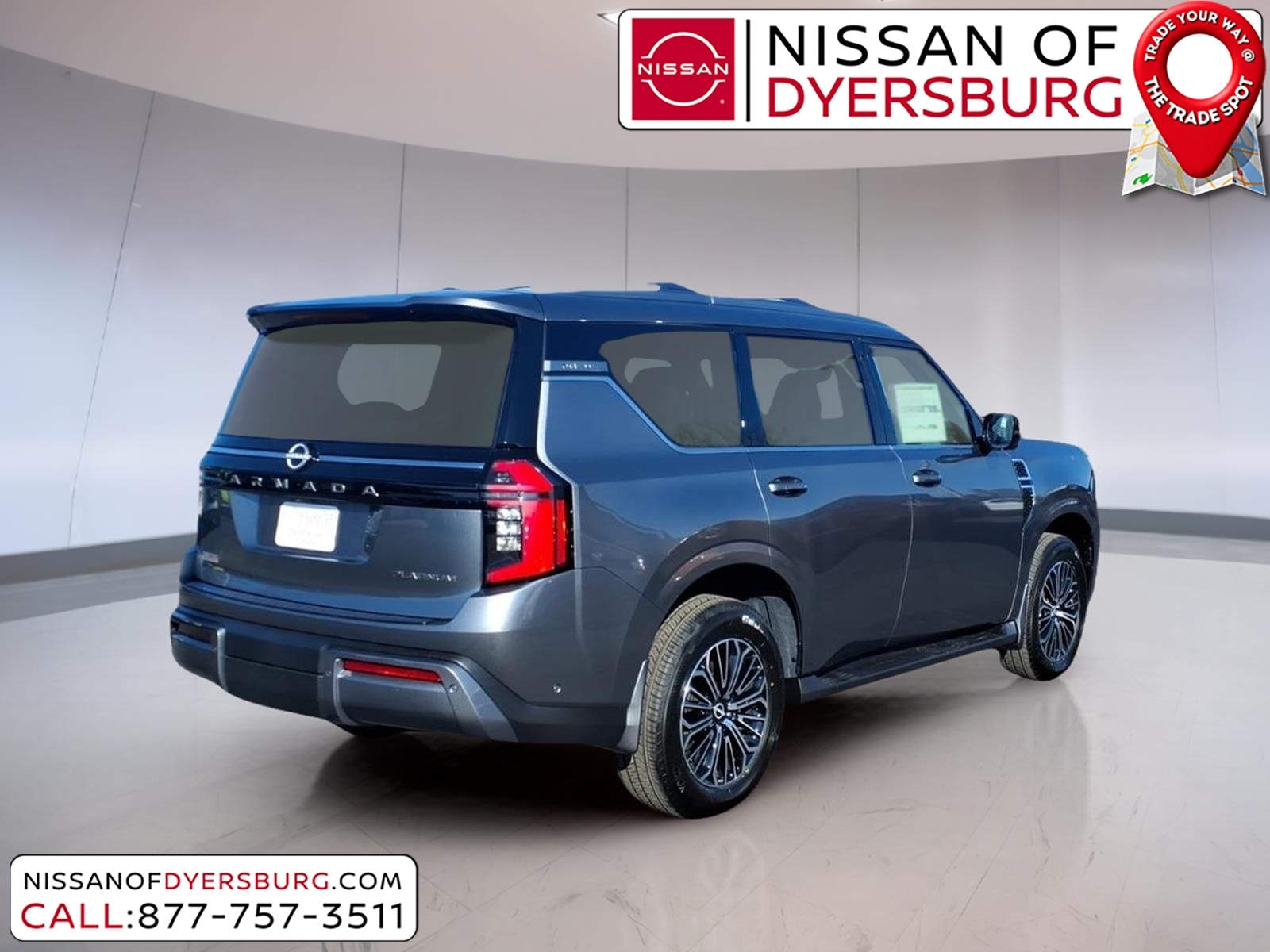 Gun Metallic 2026 Nissan Armada Platinum RWD 9-Speed Automatic 3.5L DOHC 3rd row seats: split-bench, AM/FM radio: SiriusXM w/360L, Apple CarPlay/Android Auto, Climate Controlled Heated and Ventilated Front Seats, Front dual zone A/C, Heated rear seats, Heated steering wheel, Memory seat, Navigation system: Google Maps, Power Liftgate, Power moonroof, Quilted Leather Seat Trim, Remote keyless entry, 12 Speakers, 4-Wheel Disc Brakes, ABS brakes, Air Conditioning, Alloy wheels, Anti-whiplash front head restraints, Auto High-beam Headlights, Auto tilt-away steering wheel, Auto-dimming door mirrors, Auto-dimming Rear-View mirror, Auto-leveling suspension, Automatic temperature control, Brake assist, Bumpers: body-color, Carpeted Floor Mats with Captain Chairs, Center Front Spoiler, Compass, Cross Bars, Delay-off headlights, Driver door bin, Driver vanity mirror, Dual front impact airbags, Dual front side impact airbags, Electronic Stability Control, Emergency communication system: NissanConnect Services, Four wheel independent suspension, Front anti-roll bar, Front Bucket Seats, Front Center Armrest, Front fog lights, Front reading lights, Fully automatic headlights, Garage door transmitter: HomeLink, Genuine wood dashboard insert, Heated door mirrors, Heated front seats, HVAC memory, Illuminated entry, Illuminated Kick Plates, Knee airbag, Leather steering wheel, Low tire pressure warning, Occupant sensing airbag, Outside temperature display, Overhead airbag, Overhead console, Panic alarm, Passenger door bin, Passenger vanity mirror, Power door mirrors, Power driver seat, Power passenger seat, Power steering, Power windows, Radio: NissanConnect with SiriusXM 360L, Rain sensing wipers, Rear air conditioning, Rear anti-roll bar, Rear Bumper Protector, Rear reading lights, Rear window defroster, Rear window wiper, Reclining 3rd row seat, Security system, Speed control, Speed-sensing steering, Speed-Sensitive Wipers, Splash Guards, Split folding rear seat, Spoiler, Steering wheel memory, Steering wheel mounted audio controls, Tachometer, Telescoping steering wheel, Tilt steering wheel, Traction control, Trip computer, Turn signal indicator mirrors, Variably intermittent wipers, Ventilated front seats, Voltmeter, Wheels: 20x 8.5J Machined and Painted Alloy, 3rd row seats: split-bench, AM/FM radio: SiriusXM w/360L, Apple CarPlay/Android Auto, Climate Controlled Heated and Ventilated Front Seats, Front dual zone A/C, Heated rear seats, Heated steering wheel, Memory