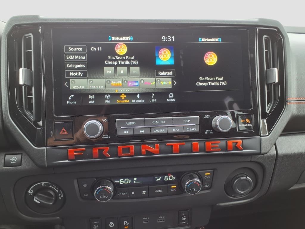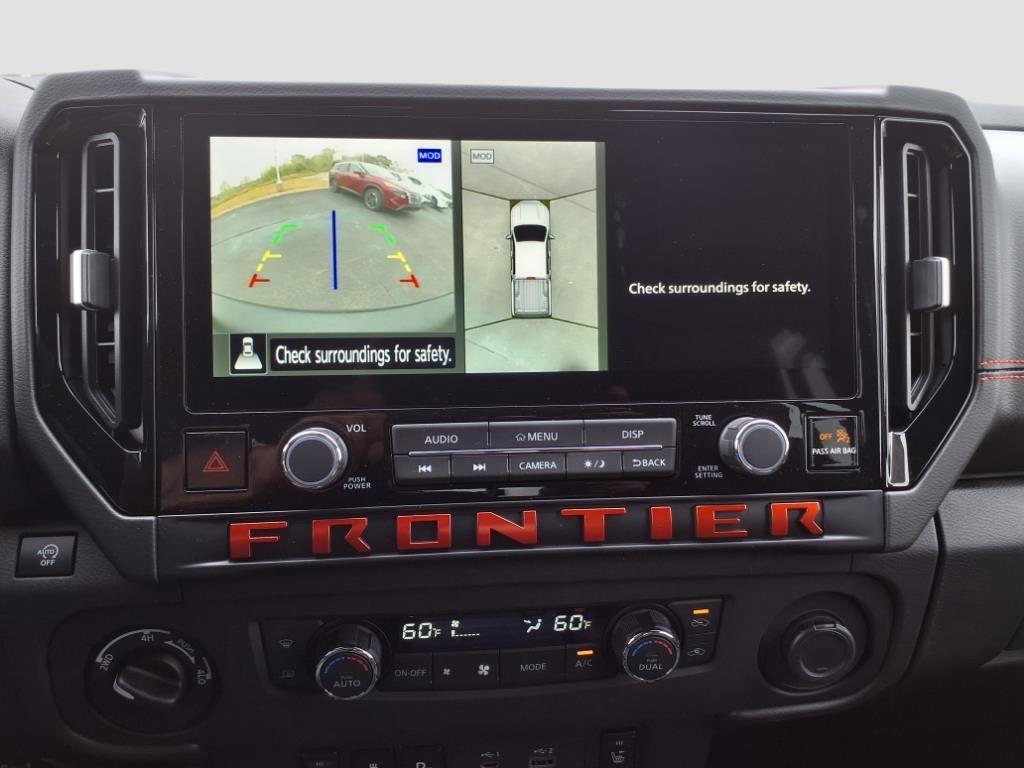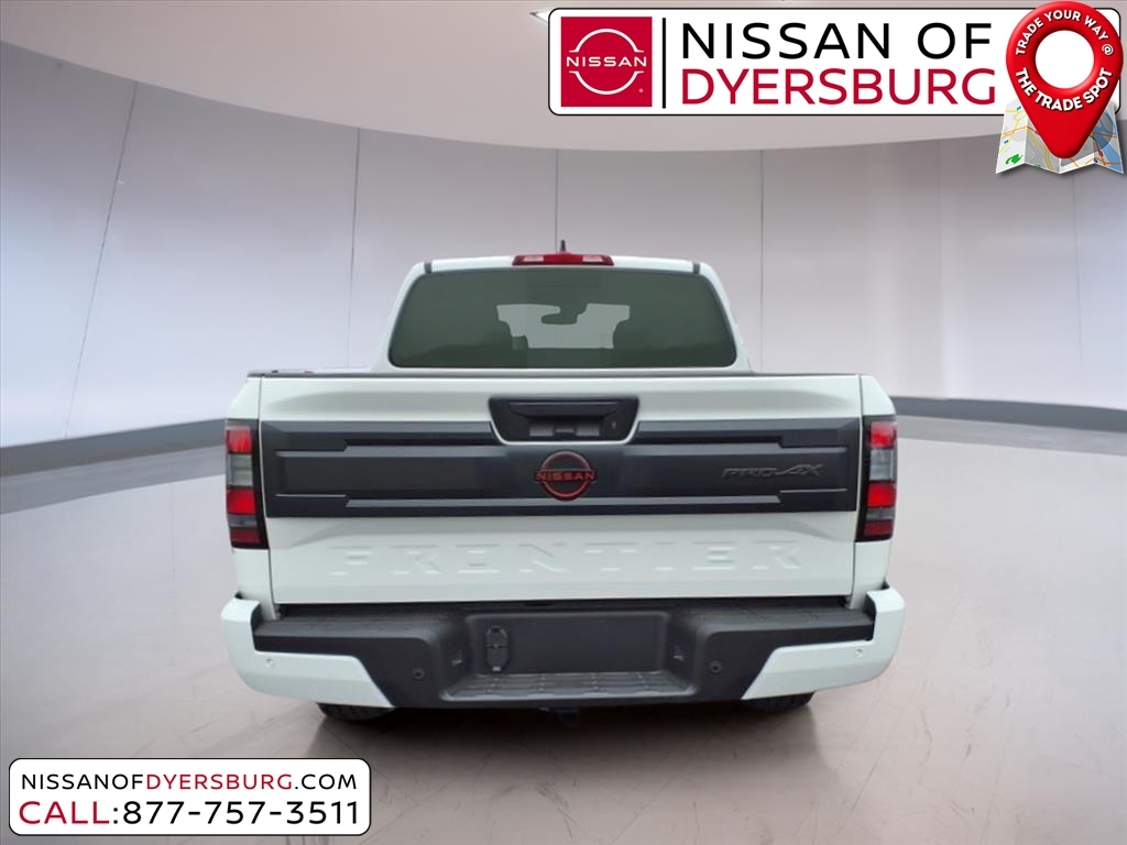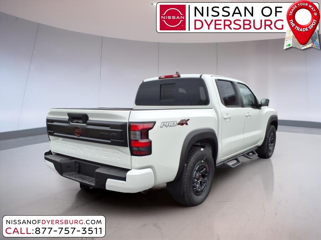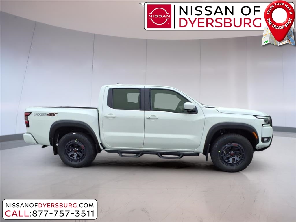 Glacier White 2025 Nissan Frontier PRO-4X 4WD 9-Speed Automatic with Overdrive 3.8L DI DOHC 24V V6 4WD, 120V Power Outlet in Bed, 120V Power Outlet in Rear Center Console, 17Painted Alloy Wheels, 3.692 Axle Ratio, 4-Wheel Disc Brakes, 6 Speakers, ABS brakes, Air Conditioning, Alloy wheels, AM/FM radio: SiriusXM, Anti-whiplash front head restraints, Auto High-beam Headlights, Automatic temperature control, Bed Under-Rail Lighting, Blind Spot Warning, Brake assist, Bumpers: body-color, Delay-off headlights, Driver door bin, Driver vanity mirror, Dual front impact airbags, Dual front side impact airbags, Electronic Stability Control, Electronic Tailgate Lock, Emergency communication system, Essentials Kit, Front anti-roll bar, Front Bucket Seats, Front Center Armrest, Front dual zone A/C, Front fog lights, Front reading lights, Front wheel independent suspension, Fully automatic headlights, Heated Front Seats, Heated Outside Mirrors, Heated Steering Wheel, Illuminated entry, Intelligent Around View Monitor (I-AVM), Knee airbag, Leather Shift Knob, Leather steering wheel, Low tire pressure warning, Mud Flap Accessory, Occupant sensing airbag, Off-Road Style Step Rails, Overhead airbag, Overhead console, Panic alarm, Passenger door bin, Passenger vanity mirror, Power door mirrors, Power driver seat, Power passenger seat, Power steering, Power windows, PRO Convenience Package, PRO Embroidered Premium Cloth Seat Trim, Radio data system, Radio: SXM/AM/FM/AUX/USB Audio System, Rear anti-roll bar, Rear seat center armrest, Rear side impact airbag, Rear step bumper, Remote Engine Starter, Remote keyless entry, Security system, Speed control, Speed-sensing steering, Split folding rear seat, Spray-In Bedliner, Steering wheel mounted audio controls, Tachometer, Telescoping steering wheel, Tilt steering wheel, Traction control, Trailer Hitch w/Wiring Harness, Trip computer, USB Charging Cable Kit, Utili-Track System, Variably intermittent wipers, Voltmeter, Wireless Apple CarPlay/Wireless Android Auto, Wireless Charging for Personal Devices, 4WD. Recent Arrival! Price includes: $1500 - Nissan Customer Cash. Exp. 04/30/2025