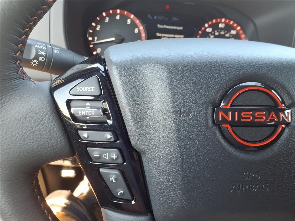 Super Black 2026 Nissan Frontier PRO-4X 4WD 9-Speed Automatic with Overdrive 3.8L DI DOHC 24V V6 4WD, 17Painted Alloy Wheels, 3.692 Axle Ratio, 4-Wheel Disc Brakes, 6 Speakers, ABS brakes, Air Conditioning, Alloy wheels, AM/FM radio: SiriusXM, Anti-whiplash front head restraints, Auto High-beam Headlights, Automatic temperature control, Blind Spot Warning, Brake assist, Bumpers: body-color, Delay-off headlights, Driver door bin, Driver vanity mirror, Dual front impact airbags, Dual front side impact airbags, Electronic Stability Control, Electronic Tailgate Lock, Emergency communication system, Essentials Kit, Front anti-roll bar, Front Bucket Seats, Front Center Armrest, Front dual zone A/C, Front fog lights, Front reading lights, Front wheel independent suspension, Fully automatic headlights, Heated Front Bucket Seats, Heated Steering Wheel, Illuminated entry, Intelligent Around View Monitor (I-AVM), Knee airbag, Leather steering wheel, Low tire pressure warning, Mud Flaps, Occupant sensing airbag, Off-Road Style Step Rails, Overhead airbag, Overhead console, Panic alarm, Passenger door bin, Passenger vanity mirror, Power door mirrors, Power driver seat, Power passenger seat, Power steering, Power windows, PRO Embroidered Premium Cloth Seat Trim, PRO-4X Convenience Package, Radio data system, Radio: SXM/AM/FM/AUX/USB Audio System, Rear anti-roll bar, Rear seat center armrest, Rear side impact airbag, Rear step bumper, Remote keyless entry, Security system, Speed control, Speed-sensing steering, Split folding rear seat, Steering wheel mounted audio controls, Tachometer, Telescoping steering wheel, Tilt steering wheel, Traction control, Trip computer, Variably intermittent wipers, Voltmeter, Wireless Apple CarPlay/Wireless Android Auto, Wireless Charging for Personal Devices, 4WD. Recent Arrival!