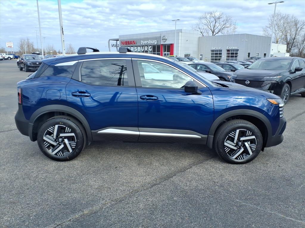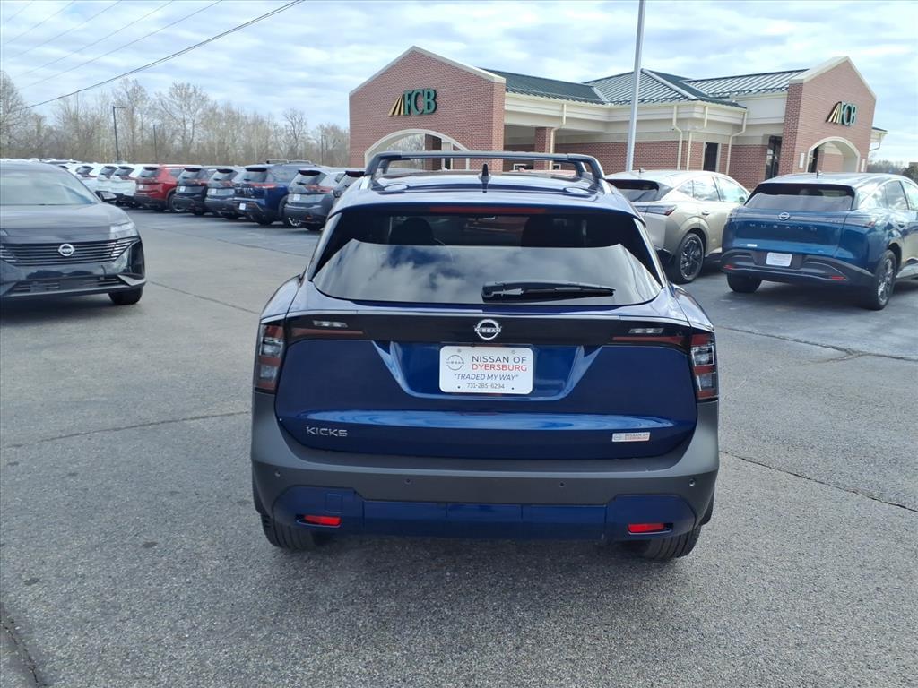 Deep Blue Pearl 2026 Nissan Kicks SV FWD CVT with Xtronic 2.0L DOHC Air Conditioning, Blind Spot Warning, Cloth Seat Trim, Emergency communication system, Exterior Parking Camera Rear, Front Bucket Seats, Heated Front Seats, Illuminated entry, NissanConnect featuring Apple CarPlay and Android Auto, Radio: AM/FM/SiriusXM Audio System, Remote keyless entry, Wheels: 17Steel Flex w/Full Covers, 4 Speakers, 4-Wheel Disc Brakes, ABS brakes, AM/FM radio, Auto High-beam Headlights, Automatic temperature control, Brake assist, Bumpers: body-color, Carpeted Floor Mats & Underfloor Protector, Cold Weather Package, Crossbars, Driver door bin, Driver vanity mirror, Dual front impact airbags, Dual front side impact airbags, Electronic Stability Control, Front anti-roll bar, Front Center Armrest, Front reading lights, Front wheel independent suspension, Fully automatic headlights, Heated Mirrors, Knee airbag, Low tire pressure warning, Occupant sensing airbag, Outside temperature display, Overhead airbag, Panic alarm, Passenger door bin, Passenger vanity mirror, Power door mirrors, Power steering, Power windows, Radio data system, Rear anti-roll bar, Rear Floor Heater Ducts, Rear reading lights, Rear side impact airbag, Rear window defroster, Rear window wiper, Security system, Speed control, Speed-sensing steering, Splash Guards, Split folding rear seat, Spoiler, Sport steering wheel, Steering wheel mounted audio controls, Tachometer, Telescoping steering wheel, Tilt steering wheel, Traction control, Trip computer, Variably intermittent wipers, Air Conditioning, Blind Spot Warning, Cloth Seat Trim, Emergency communication system, Exterior Parking Camera Rear, Front Bucket Seats, Heated Front Seats, Illuminated entry, NissanConnect featuring Apple CarPlay and Android Auto, Radio: AM/FM/SiriusXM Audio System, Remote keyless entry, Wheels: 17Steel Flex w/Full Covers. Recent Arrival! 28/35 City/Highway MPG