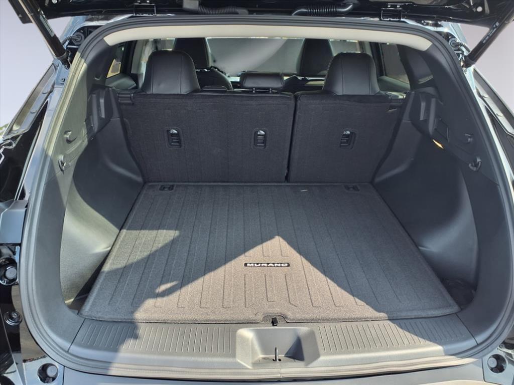 Super Black 2025 Nissan Murano SL AWD 9-Speed Automatic I4 9-Speed Automatic, AWD, AM/FM radio: SiriusXM w/360L, Front dual zone A/C, Heated Front Bucket Seats, Heated steering wheel, Memory seat, Navigation system: NissanConnect with Navigation and Services, Power driver seat, Power Liftgate, Power moonroof: Panoramic, PVC (Leatherette) Seat Trim, Remote keyless entry, Wireless Apple CarPlay/Wireless Android Auto, 10 Speakers, 20Alloy Wheels, 4-Wheel Disc Brakes, ABS brakes, Air Conditioning, Alloy wheels, Auto High-beam Headlights, Auto-dimming Rear-View mirror, Automatic temperature control, Brake assist, Bumpers: body-color, Carpeted Floor & Cargo Mats, Child-Seat-Sensing Airbag, Compass, Delay-off headlights, Driver door bin, Driver vanity mirror, Dual front impact airbags, Dual front side impact airbags, Electronic Stability Control, Emergency communication system: NissanConnect Services, Four wheel independent suspension, Front anti-roll bar, Front Bucket Seats, Front Center Armrest, Front reading lights, Fully automatic headlights, Garage door transmitter: myQ Connected Garage, Grained Splash Guards, Heated door mirrors, Heated front seats, Illuminated entry, Knee airbag, Low tire pressure warning, Occupant sensing airbag, Outside temperature display, Overhead airbag, Overhead console, Panic alarm, Passenger door bin, Passenger vanity mirror, Power door mirrors, Power passenger seat, Power steering, Power windows, Radio data system, Radio: NissanConnect w/Hybrid Radio, Rear anti-roll bar, Rear reading lights, Rear seat center armrest, Rear side impact airbag, Rear window defroster, Rear window wiper, Security system, Speed control, Speed-Sensitive Wipers, Split folding rear seat, Spoiler, Steering wheel mounted audio controls, Tachometer, Telescoping steering wheel, Tilt steering wheel, Traction control, Trip computer, Turn signal indicator mirrors, Variably intermittent wipers, 9-Speed Automatic, AWD, AM/FM radio: SiriusXM w/360L, Front dual zone A/C, Heated Front Bucket Seats, Heated steering wheel, Memory seat, Navigation system: NissanConnect with Navigation and Services, Power driver seat, Power Liftgate, Power moonroof: Panoramic, PVC (Leatherette) Seat Trim, Remote keyless entry, Wireless Apple CarPlay/Wireless Android Auto. Recent Arrival! 21/27 City/Highway MPG