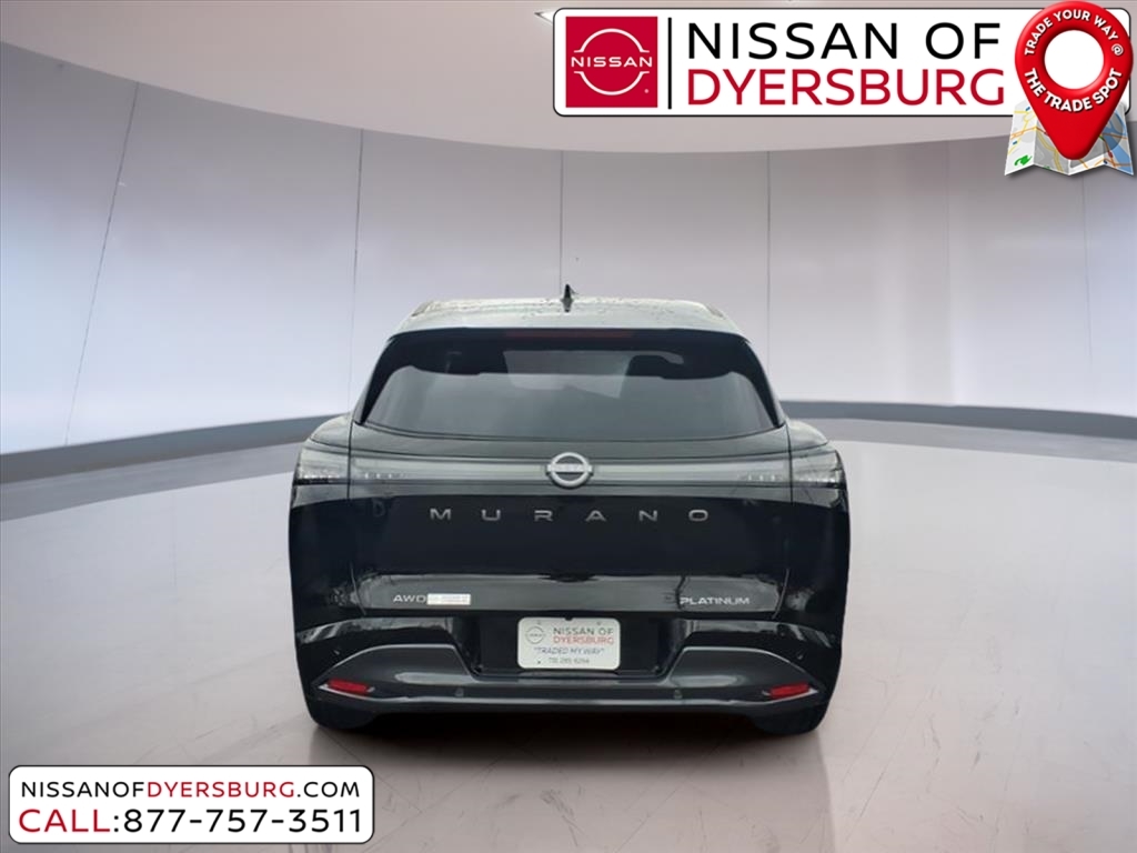 Super Black 2026 Nissan Murano Platinum AWD 9-Speed Automatic I4 9-Speed Automatic, AWD, AM/FM radio: SiriusXM w/360L, Front dual zone A/C, Heated & Ventilated Front Bucket Seats w/Massage, Heated rear seats, Memory seat, Navigation system: NissanConnect with Navigation and Services, Power Liftgate, Power moonroof: Panoramic, Quilted Semi-Aniline Leather-Appointed Seat Trim, Remote keyless entry, Wireless Apple CarPlay/Wireless Android Auto, 10 Speakers, 21Alloy Wheels, 3-Position Cargo Area Protector, 4-Wheel Disc Brakes, ABS brakes, Air Conditioning, Alloy wheels, Auto High-beam Headlights, Auto tilt-away steering wheel, Auto-dimming Rear-View mirror, Automatic temperature control, Brake assist, Bumpers: body-color, Cargo Net, Cargo Package, Carpeted Floor & Cargo Mats, Child-Seat-Sensing Airbag, Compass, Delay-off headlights, Driver door bin, Driver vanity mirror, Dual front impact airbags, Dual front side impact airbags, Electronic Stability Control, Emergency communication system: NissanConnect Services, First Aid Kit, Four wheel independent suspension, Front anti-roll bar, Front Bucket Seats, Front Center Armrest, Front reading lights, Fully automatic headlights, Garage door transmitter: HomeLink, Heads-Up Display, Heated door mirrors, Heated front seats, Heated steering wheel, Illuminated entry, Illuminated Kick Plates, Knee airbag, Low tire pressure warning, Occupant sensing airbag, Outside temperature display, Overhead airbag, Overhead console, Painted Splash Guards, Panic alarm, Passenger door bin, Passenger vanity mirror, Power door mirrors, Power driver seat, Power passenger seat, Power steering, Power windows, Radio data system, Radio: NissanConnect w/Hybrid Radio, Rain sensing wipers, Rear anti-roll bar, Rear reading lights, Rear seat center armrest, Rear side impact airbag, Rear window defroster, Rear window wiper, Retractable Cargo Cover, Security system, Speed control, Speed-Sensitive Wipers, Split folding rear seat, Spoiler, Steering wheel memory, Steering wheel mounted audio controls, Tablet Holder, Tachometer, Telescoping steering wheel, Tilt steering wheel, Traction control, Trip computer, Turn signal indicator mirrors, Variably intermittent wipers, Ventilated front seats, 9-Speed Automatic, AWD, AM/FM radio: SiriusXM w/360L, Front dual zone A/C, Heated & Ventilated Front Bucket Seats w/Massage, Heated rear seats, Memory seat, Navigation system: NissanConnect with Navigation and Services, Power Liftgate, Power moonroof: Panoramic, Qu
