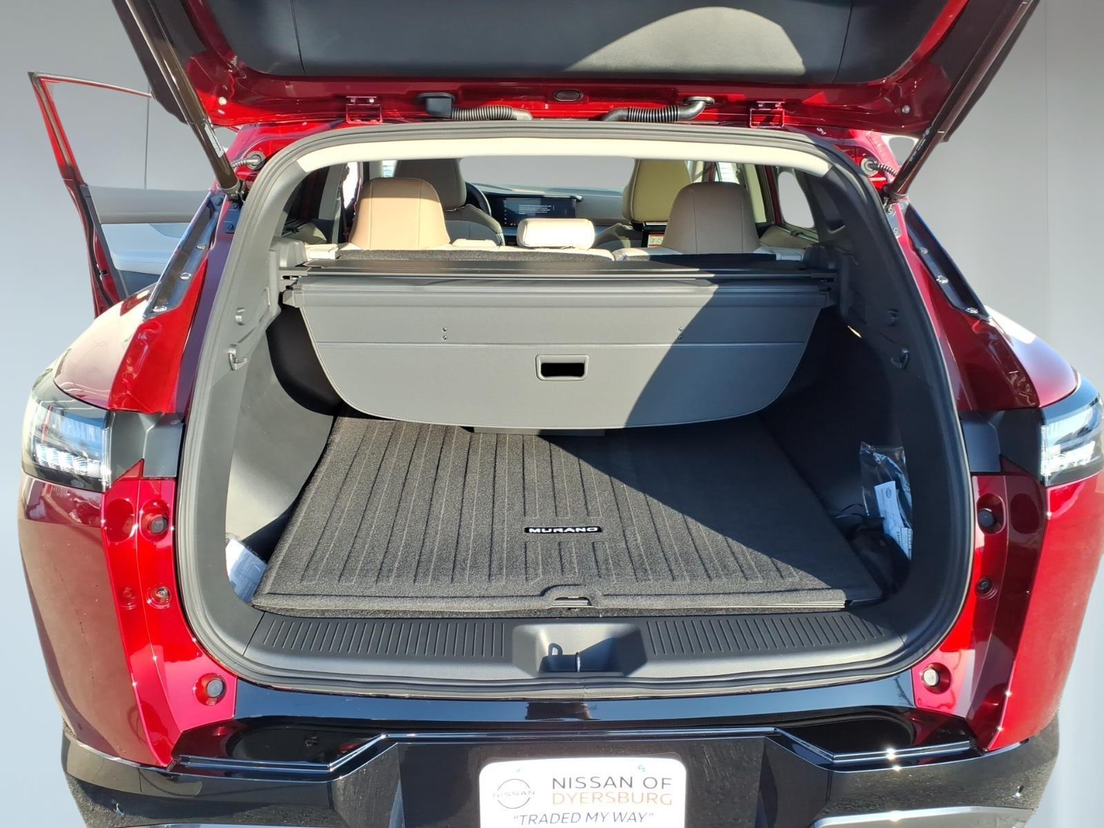 Scarlet Ember Tintcoat 2026 Nissan Murano Platinum AWD 9-Speed Automatic I4 9-Speed Automatic, AWD, 10 Speakers, 21Alloy Wheels, 3-Position Cargo Area Protector, 4-Wheel Disc Brakes, ABS brakes, Air Conditioning, Alloy wheels, AM/FM radio: SiriusXM w/360L, Auto High-beam Headlights, Auto tilt-away steering wheel, Auto-dimming Rear-View mirror, Automatic temperature control, Brake assist, Bumpers: body-color, Cargo Net, Cargo Package, Carpeted Floor & Cargo Mats, Child-Seat-Sensing Airbag, Compass, Delay-off headlights, Driver door bin, Driver vanity mirror, Dual front impact airbags, Dual front side impact airbags, Electronic Stability Control, Emergency communication system: NissanConnect Services, First Aid Kit, Four wheel independent suspension, Front anti-roll bar, Front Bucket Seats, Front Center Armrest, Front dual zone A/C, Front reading lights, Fully automatic headlights, Garage door transmitter: HomeLink, Heads-Up Display, Heated & Ventilated Front Bucket Seats w/Massage, Heated door mirrors, Heated front seats, Heated rear seats, Heated steering wheel, Illuminated entry, Illuminated Kick Plates, Knee airbag, Low tire pressure warning, Memory seat, Navigation system: NissanConnect with Navigation and Services, Occupant sensing airbag, Outside temperature display, Overhead airbag, Overhead console, Painted Splash Guards, Panic alarm, Passenger door bin, Passenger vanity mirror, Power door mirrors, Power driver seat, Power Liftgate, Power moonroof: Panoramic, Power passenger seat, Power steering, Power windows, Premium Paint, Quilted Semi-Aniline Leather-Appointed Seat Trim, Radio data system, Radio: NissanConnect w/Hybrid Radio, Rain sensing wipers, Rear anti-roll bar, Rear reading lights, Rear seat center armrest, Rear side impact airbag, Rear window defroster, Rear window wiper, Remote keyless entry, Retractable Cargo Cover, Security system, Speed control, Speed-Sensitive Wipers, Split folding rear seat, Spoiler, Steering wheel memory, Steering wheel mounted audio controls, Tablet Holder, Tachometer, Telescoping steering wheel, Tilt steering wheel, Traction control, Trip computer, Turn signal indicator mirrors, Variably intermittent wipers, Ventilated front seats, Wireless Apple CarPlay/Wireless Android Auto, 9-Speed Automatic, AWD. Recent Arrival! 21/27 City/Highway MPG