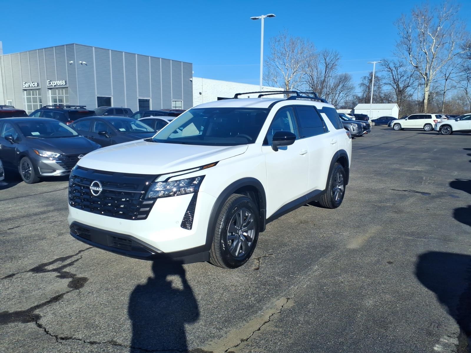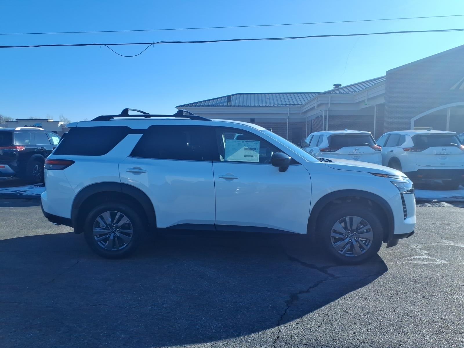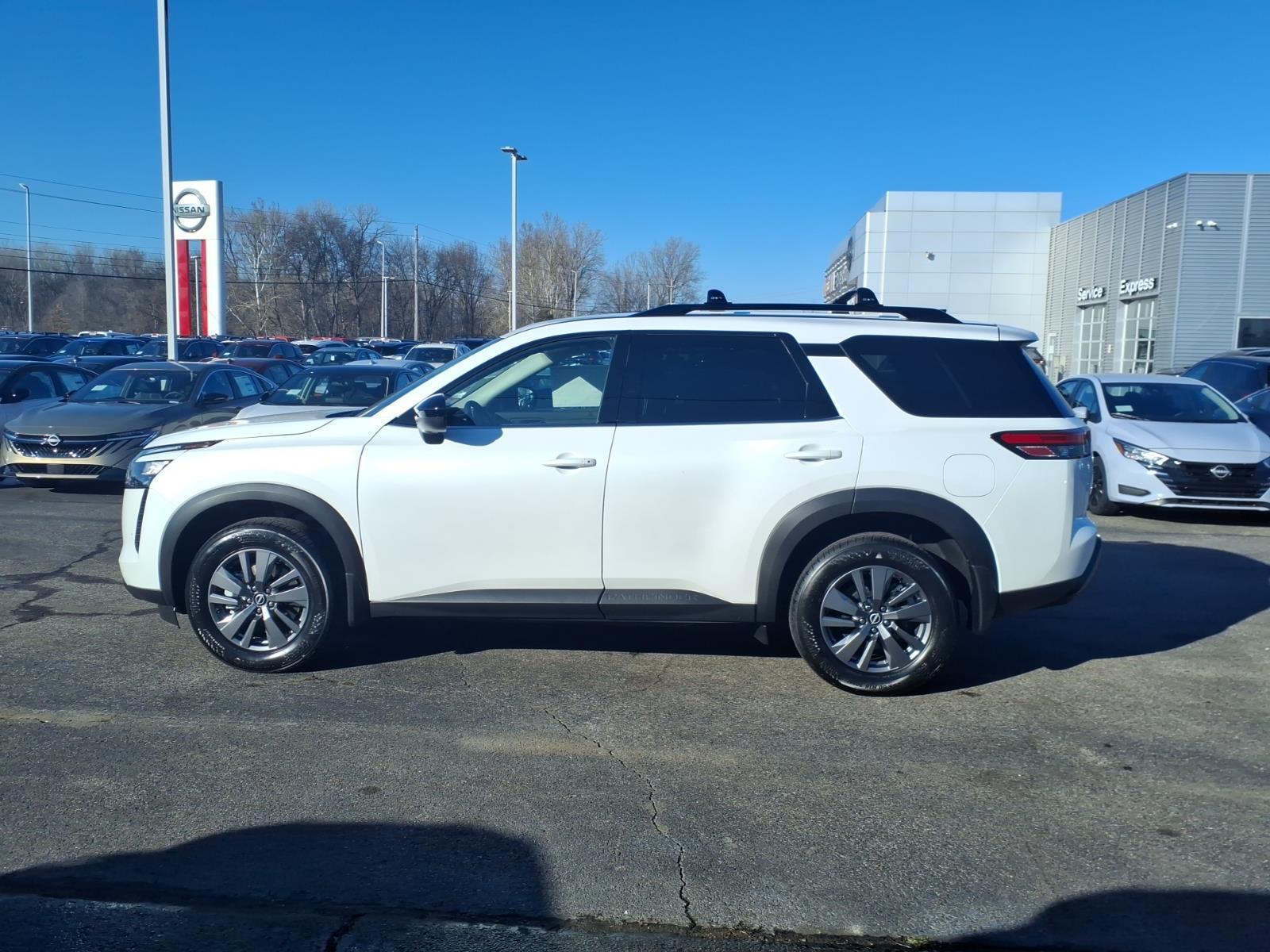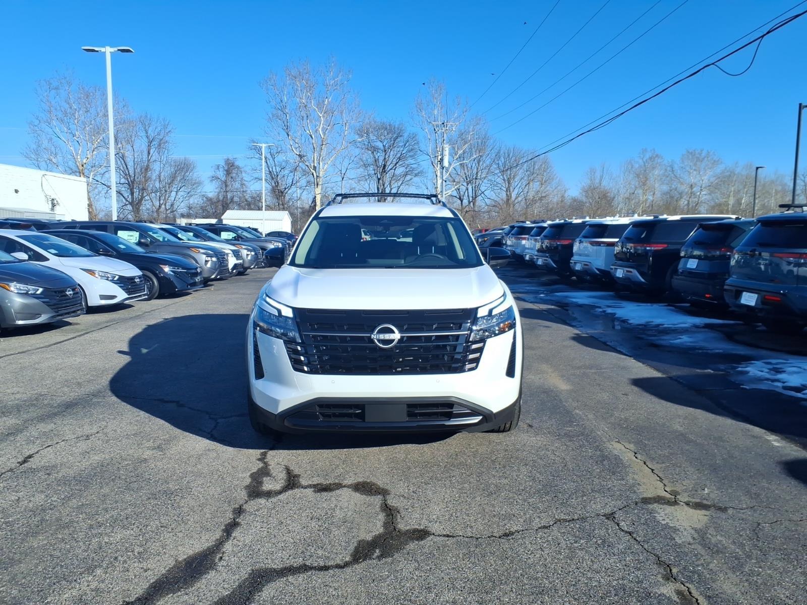 Everest White Pearl Tricoat 2026 Nissan Pathfinder SV 4WD 9-Speed Automatic 3.5L V6 DOHC 4WD, 18Painted Alloy Wheels, 3rd row seats: bench, AM/FM radio: SiriusXM w/360L, Auto High-beam Headlights, Brake assist, Electronic Stability Control, Emergency communication system: NissanConnect Services, Front dual zone A/C, Heated Front Bucket Seats, NissanConnect featuring Apple CarPlay and Android Auto, Power Liftgate, Remote keyless entry, 4-Piece Black Splash Guards, 4-Wheel Disc Brakes, 6 Speakers, ABS brakes, Air Conditioning, Alloy wheels, Automatic temperature control, Bench Seat Carpeted Floor Mats, Bumpers: body-color, Cloth Seating Surfaces, Cross Bars, Delay-off headlights, Driver door bin, Driver vanity mirror, Dual front impact airbags, Dual front side impact airbags, Four wheel independent suspension, Front anti-roll bar, Front Bucket Seats, Front Center Armrest, Front reading lights, Fully automatic headlights, Garage door transmitter: myQ Connected Garage, Heated door mirrors, Heated front seats, Illuminated entry, Knee airbag, Low tire pressure warning, Occupant sensing airbag, Outside temperature display, Overhead airbag, Overhead console, Panic alarm, Passenger door bin, Passenger vanity mirror, Power door mirrors, Power driver seat, Power steering, Power windows, Premium Paint, Radio data system, Radio: AM/FM Audio System with NissanConnect, Rear air conditioning, Rear anti-roll bar, Rear reading lights, Rear seat center armrest, Rear side impact airbag, Rear window defroster, Rear window wiper, Reclining 3rd row seat, Security system, Speed control, Speed-sensing steering, Split folding rear seat, Spoiler, Steering wheel mounted audio controls, Tachometer, Telescoping steering wheel, Tilt steering wheel, Traction control, Trip computer, Variably intermittent wipers, 4WD, 18Painted Alloy Wheels, 3rd row seats: bench, AM/FM radio: SiriusXM w/360L, Auto High-beam Headlights, Brake assist, Electronic Stability Control, Emergency communication system: NissanConnect Services, Front dual zone A/C, Heated Front Bucket Seats, NissanConnect featuring Apple CarPlay and Android Auto, Power Liftgate, Remote keyless entry. Recent Arrival! 21/27 City/Highway MPG