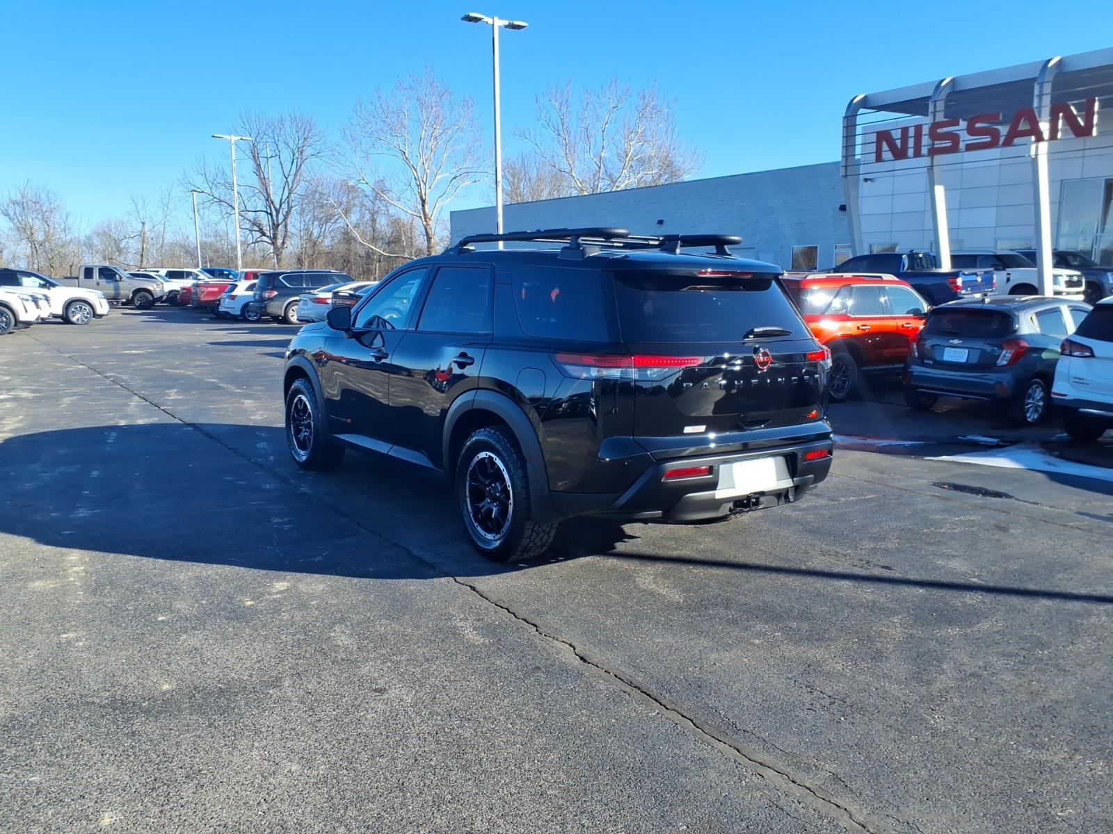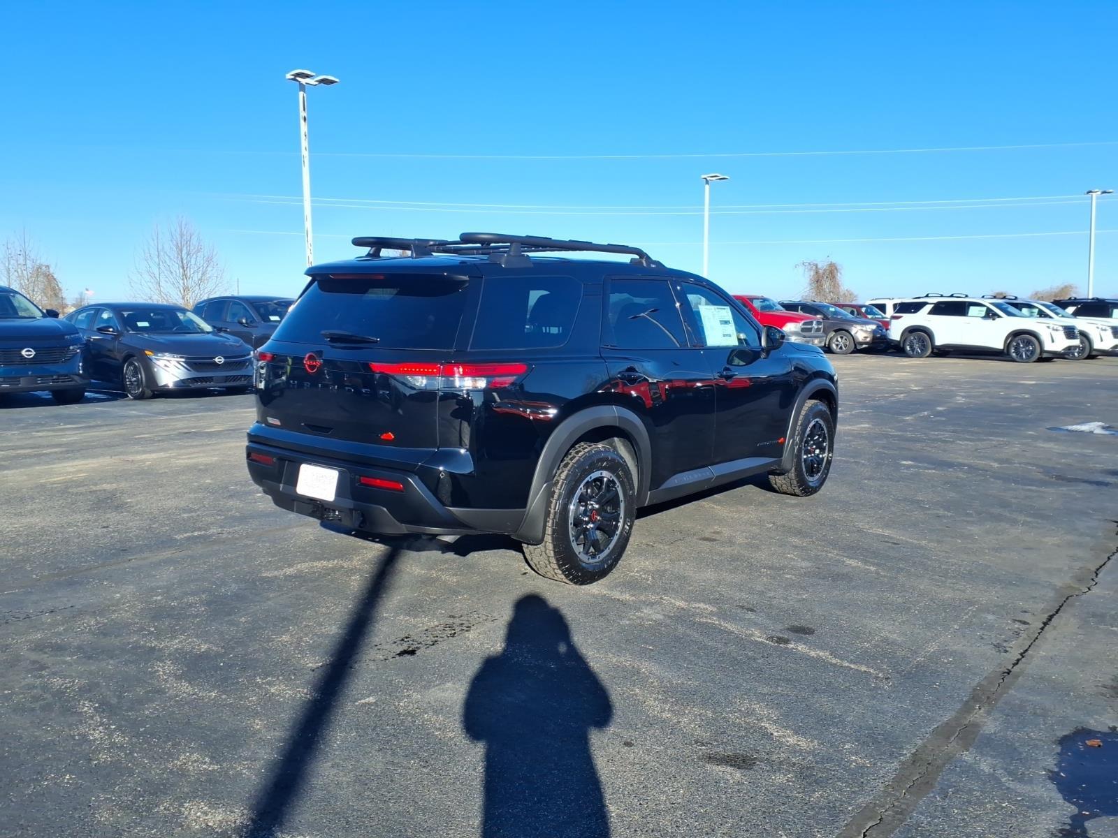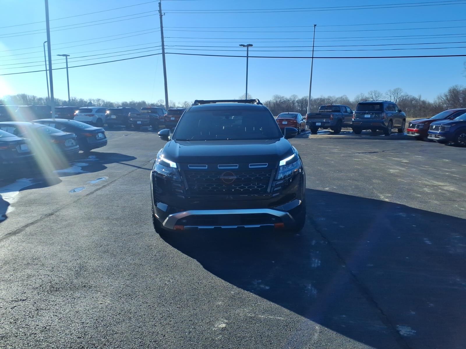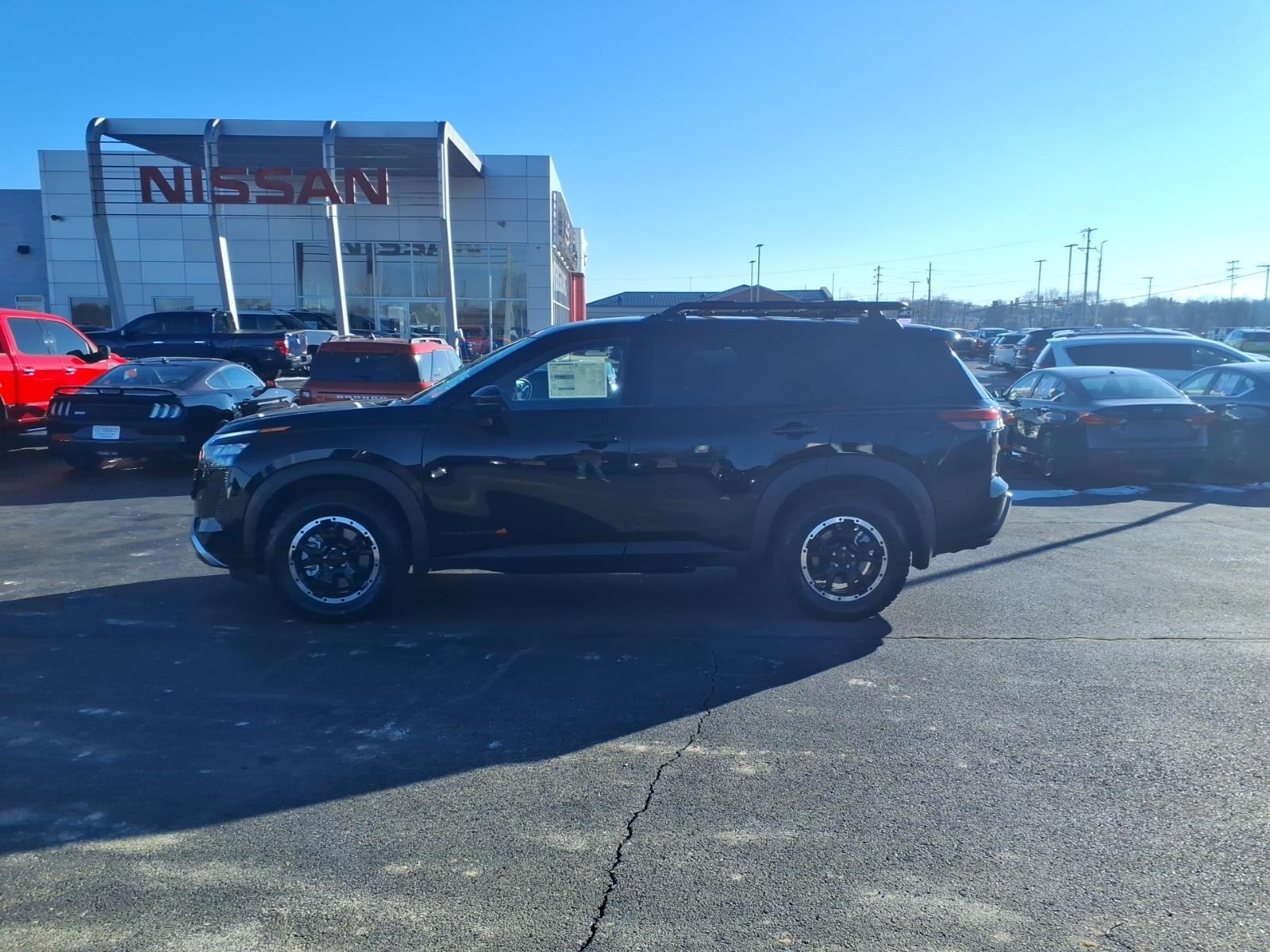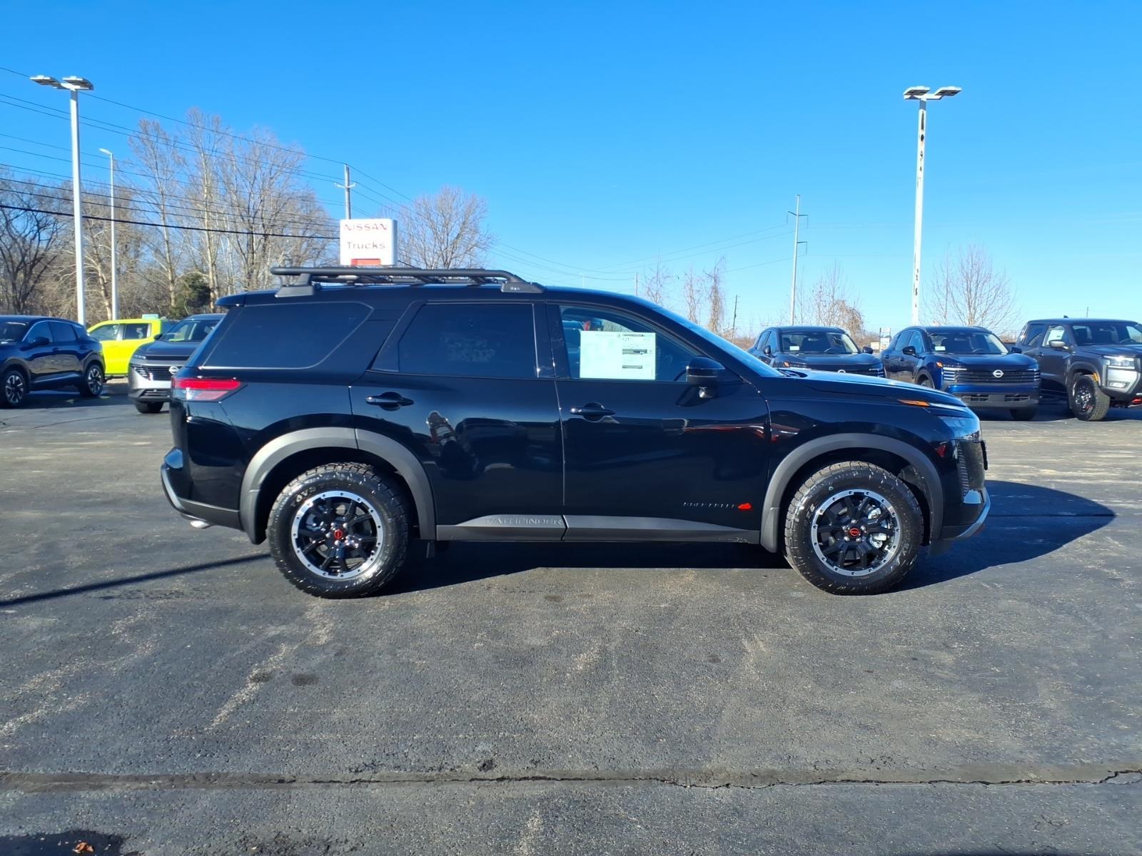 Super Black 2026 Nissan Pathfinder SV 4WD 9-Speed Automatic 3.5L V6 DOHC 4WD, 3rd row seats: bench, AM/FM radio: SiriusXM w/360L, Auto High-beam Headlights, Brake assist, Electronic Stability Control, Emergency communication system: NissanConnect Services, Front dual zone A/C, Heated Front Bucket Seats, NissanConnect featuring Apple CarPlay and Android Auto, Power Liftgate, Reclining 3rd row seat, Remote keyless entry, 18Painted Alloy Wheels, 4-Piece Black Splash Guards, 4-Wheel Disc Brakes, 6 Speakers, ABS brakes, Air Conditioning, Alloy wheels, Automatic temperature control, Bumpers: body-color, Cloth Seating Surfaces, Delay-off headlights, Driver door bin, Driver vanity mirror, Dual front impact airbags, Dual front side impact airbags, Four wheel independent suspension, Front anti-roll bar, Front Bucket Seats, Front Center Armrest, Front reading lights, Fully automatic headlights, Garage door transmitter: myQ Connected Garage, Heated door mirrors, Heated front seats, Illuminated entry, Knee airbag, Low tire pressure warning, Occupant sensing airbag, Outside temperature display, Overhead airbag, Overhead console, Panic alarm, Passenger door bin, Passenger vanity mirror, Power door mirrors, Power driver seat, Power steering, Power windows, Radio data system, Radio: AM/FM Audio System with NissanConnect, Rear air conditioning, Rear anti-roll bar, Rear reading lights, Rear seat center armrest, Rear side impact airbag, Rear window defroster, Rear window wiper, Security system, Speed control, Speed-sensing steering, Split folding rear seat, Spoiler, Steering wheel mounted audio controls, Tachometer, Telescoping steering wheel, Tilt steering wheel, Traction control, Trip computer, Variably intermittent wipers, 4WD, 3rd row seats: bench, AM/FM radio: SiriusXM w/360L, Auto High-beam Headlights, Brake assist, Electronic Stability Control, Emergency communication system: NissanConnect Services, Front dual zone A/C, Heated Front Bucket Seats, NissanConnect featuring Apple CarPlay and Android Auto, Power Liftgate, Reclining 3rd row seat, Remote keyless entry. Recent Arrival! 21/27 City/Highway MPG