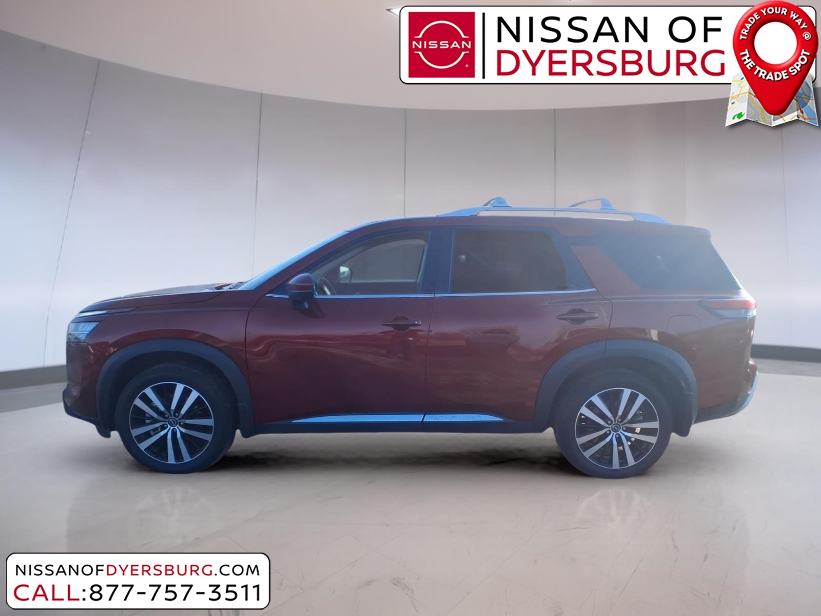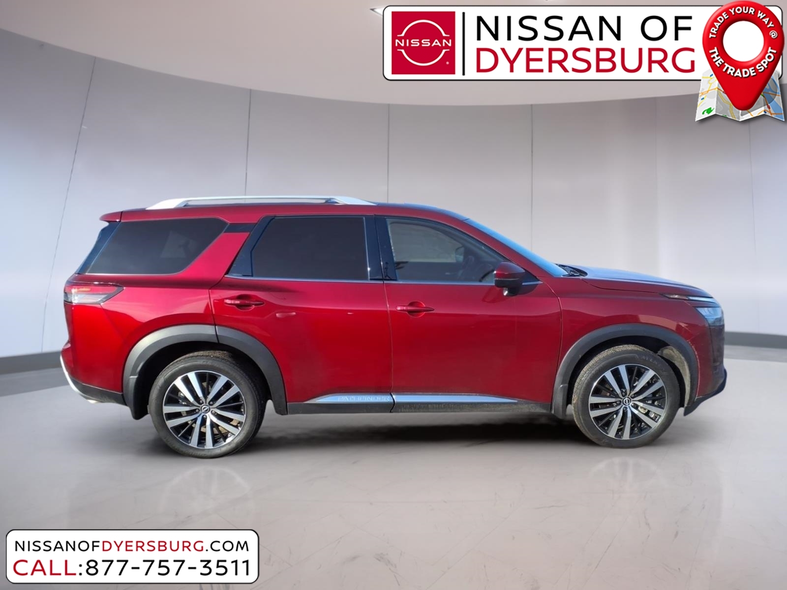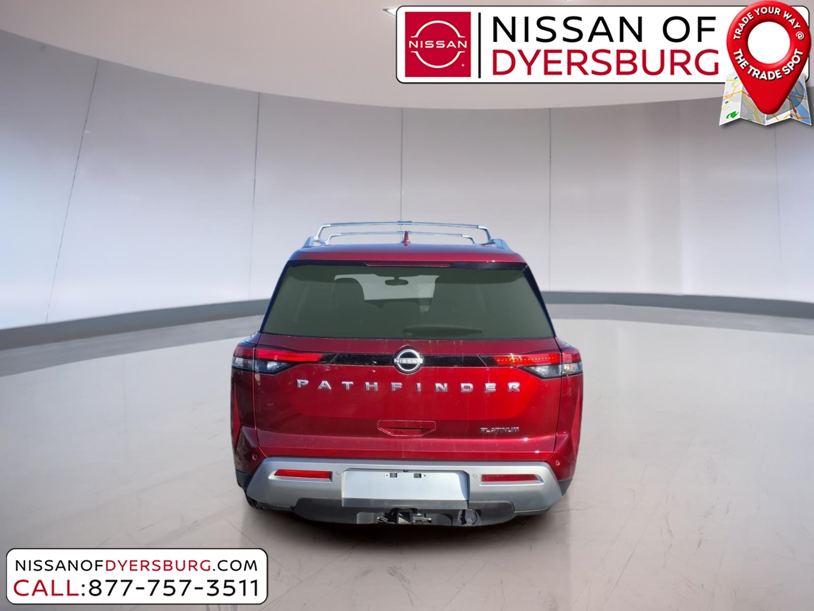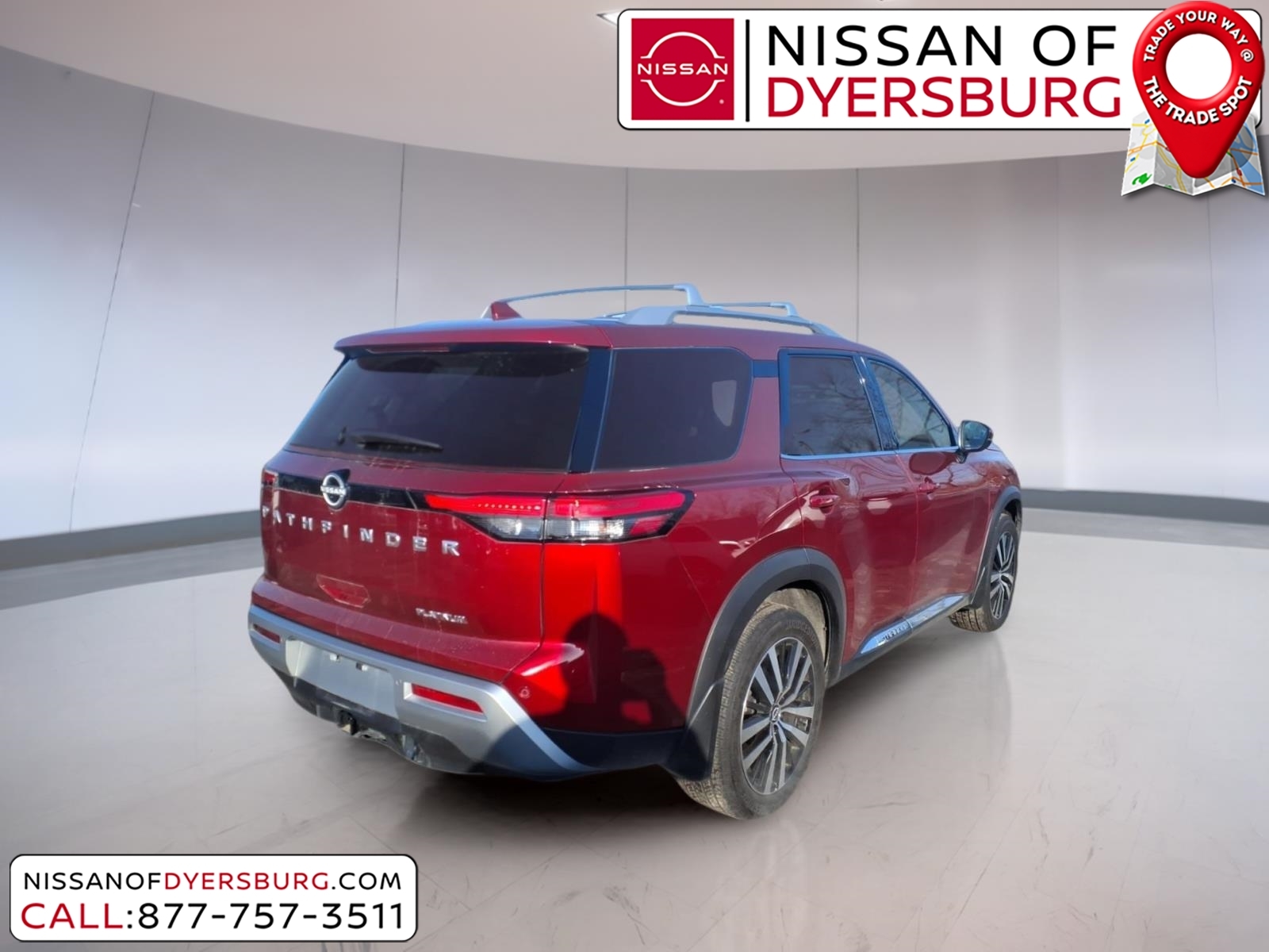 At Nissan of Dyersburg, we're more than just your local dealership - we're your neighbors. Whether you're looking for a new Nissan or a dependable pre-owned vehicle, we've got the perfect fit for your family and budget. Our goal is simple: to make your car-buying experience easy, friendly, and memorable. Come see us today, and let us show you why we love to see you happy! CARFAX One-Owner. Clean CARFAX. 2024 Nissan Pathfinder Platinum Scarlet Ember FWD 3.5L V6 DOHC 3rd row seats: bench, AM/FM radio: SiriusXM, Exterior Parking Camera Rear, Front dual zone A/C, Heated & Cooled Front Bucket Seats, Heated rear seats, Heated steering wheel, Memory seat, Navigation system: NissanConnect with Navigation and Services, NissanConnect featuring Apple CarPlay and Android Auto, NissanConnect w/Navigation & Services, Power Liftgate, Power moonroof, Remote keyless entry, Semi-Aniline Leather-Appointed Seating Surfaces, 13 Speakers, 4-Wheel Disc Brakes, ABS brakes, Air Conditioning, Alloy wheels, Auto High-beam Headlights, Auto tilt-away steering wheel, Auto-dimming Rear-View mirror, Automatic temperature control, Axle Ratio: 4.334, Bench Seat Carpeted Floor Mats (Set of 4), Black Splash Guards (Set of 4), Bodyside moldings, Bose Premium Audio System, Brake assist, Bumpers: body-color, Cargo Area Protector, Cargo Net, Cargo Package, Cross Bars, Delay-off headlights, Driver door bin, Driver vanity mirror, Dual front impact airbags, Dual front side impact airbags, Electronic Stability Control, Emergency communication system, First Aid Kit, Four wheel independent suspension, Front anti-roll bar, Front Bucket Seats, Front Center Armrest, Front reading lights, Fully automatic headlights, Garage door transmitter: HomeLink, Heads-Up Display, Heated door mirrors, Heated front seats, Illuminated entry, Knee airbag, Leather steering wheel, Low tire pressure warning, Nissan USB Charging Cable Set, Occupant sensing airbag, Outside temperature display, Overhead airbag, Overhead console, Panic alarm, Passenger door bin, Passenger vanity mirror, Power door mirrors, Power driver seat, Power passenger seat, Power steering, Power windows, Radio data system, Radio: AM/FM Audio System, Rain sensing wipers, Rear air conditioning, Rear anti-roll bar, Rear reading lights, Rear seat center armrest, Rear side impact airbag, Rear window defroster, Rear window wiper, Reclining 3rd row seat, Security system, Speed control, Speed-sensing steering, Speed-Sensitive Wipers, Split folding rear seat, Spoi
