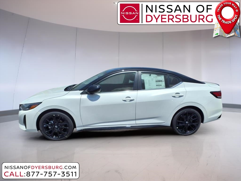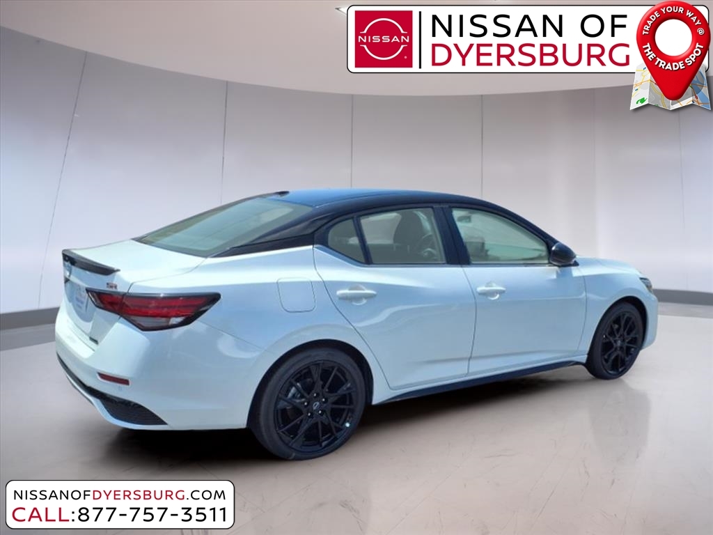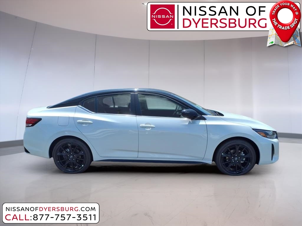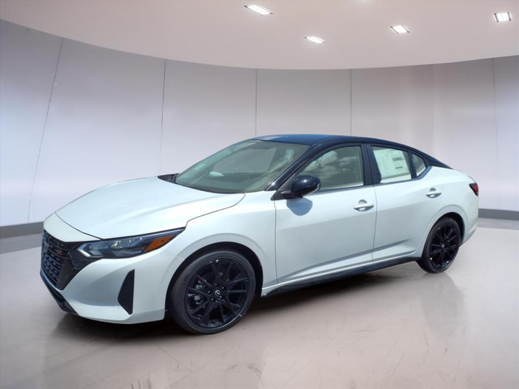 Aspen White Tricoat/Super Black 2025 Nissan Sentra SR FWD CVT with Xtronic 2.0L I4 DOHC CVT with Xtronic, Sport Cloth, 18Black Alloy Wheels, AM/FM radio: SiriusXM, Auto High-beam Headlights, Blind Spot Warning, Front dual zone A/C, Heated Front Bucket Seats, Midnight Edition, NissanConnect featuring Apple CarPlay and Android Auto, Remote keyless entry, Trunk Package, 18Alloy Wheels, 2-Tone Premium Paint, 4-Wheel Disc Brakes, 8 Speakers, ABS brakes, Air Conditioning, Alloy wheels, Automatic temperature control, Black Exterior Badging, Black Painted V-Motion Grille, Brake assist, Bumpers: body-color, Carpeted Floor Mats w/Trunk Mat, Clear Rear Bumper Protector, Delay-off headlights, Door Sill Plates, Driver door bin, Driver vanity mirror, Dual front impact airbags, Dual front side impact airbags, Electronic Stability Control, Four wheel independent suspension, Front anti-roll bar, Front Bucket Seats, Front Center Armrest, Front reading lights, Fully automatic headlights, Heated door mirrors, Heated front seats, Hide-A-Way Trunk Net, Illuminated entry, Knee airbag, Leather Shift Knob, Low tire pressure warning, Occupant sensing airbag, Outside temperature display, Overhead airbag, Overhead console, Panic alarm, Passenger door bin, Passenger vanity mirror, Power door mirrors, Power steering, Power windows, Radio data system, Radio: AM/FM w/RDS/MP3/Aux-In, Rear anti-roll bar, Rear Parking Sensors, Rear seat center armrest, Rear side impact airbag, Rear Spoiler, Rear window defroster, Security system, Side Sills, Speed control, Speed-sensing steering, Split folding rear seat, Spoiler, Sport Cloth Seat Trim, Steering wheel mounted audio controls, Tachometer, Telescoping steering wheel, Tilt steering wheel, Traction control, Trip computer, Turn signal indicator mirrors, Variably intermittent wipers, CVT with Xtronic, Sport Cloth, 18Black Alloy Wheels, AM/FM radio: SiriusXM, Auto High-beam Headlights, Blind Spot Warning, Front dual zone A/C, Heated Front Bucket Seats, Midnight Edition, NissanConnect featuring Apple CarPlay and Android Auto, Remote keyless entry, Trunk Package. 30/38 City/Highway MPG