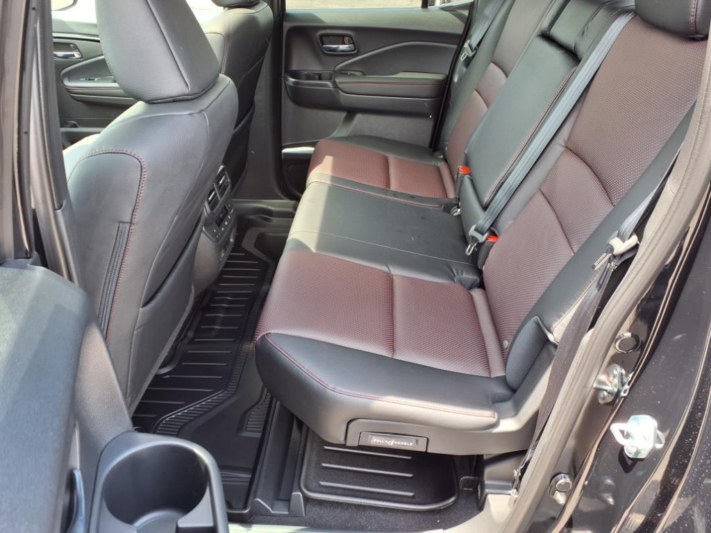 The 60/40-split and folding second-row seat provides the ultimate versatility for people- and cargo-hauling utility. With the seats folded down, the Ridgeline will comfortably carry up to five people while still accommodating long items, like a set of golf clubs, under the rear seat. Folding up one or both sides of the 60/40-split seat bottom opens up the back to carry tall and bulky items.