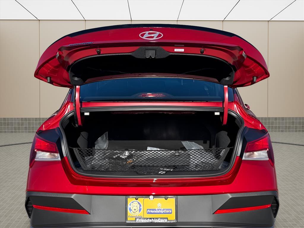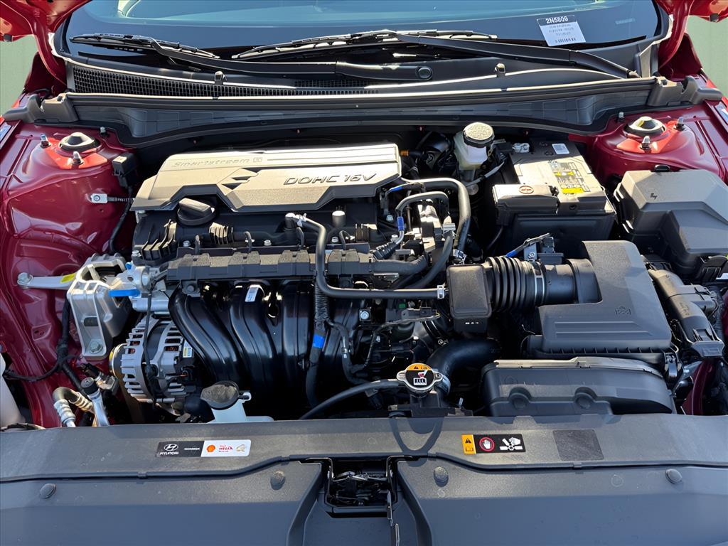 INFORMATION ABOUT THIS VEHICLE AND IT FEATURES:. Option Group 01, 4-Wheel Disc Brakes, 6 Speakers, ABS brakes, Air Conditioning, Alloy wheels, AM/FM radio, Apple CarPlay & Android Auto, Auto High-beam Headlights, Automatic temperature control, Brake assist, Bumpers: body-color, Cargo Net, Cargo Tray, Carpeted Floor Mats, Center Console Tray, Delay-off headlights, Door Sill Plates, Driver door bin, Driver vanity mirror, Dual front impact airbags, Dual front side impact airbags, Electronic Stability Control, Exterior Parking Camera Rear, First Aid Kit, Front anti-roll bar, Front Bucket Seats, Front Center Armrest, Front dual zone A/C, Front reading lights, Front wheel independent suspension, Fully automatic headlights, Illuminated entry, Low tire pressure warning, Occupant sensing airbag, Outside temperature display, Overhead airbag, Overhead console, Panic alarm, Passenger door bin, Passenger vanity mirror, Power door mirrors, Power steering, Power windows, Premium Cloth Seat Trim, Radio: AM/FM/HD Display Audio, Rear side impact airbag, Rear window defroster, Remote keyless entry, Security system, Speed control, Speed-sensing steering, Spoiler, Steering wheel mounted audio controls, Tachometer, Telescoping steering wheel, Tilt steering wheel, Traction control, Trip computer, Variably intermittent wipers, and Wheels: 17x 7.0J Alloy Gloss Black w/Dark Finish. Ultimate Red 2026 Hyundai Elantra SEL Sport FWD CVT I4 30/39 City/Highway MPG