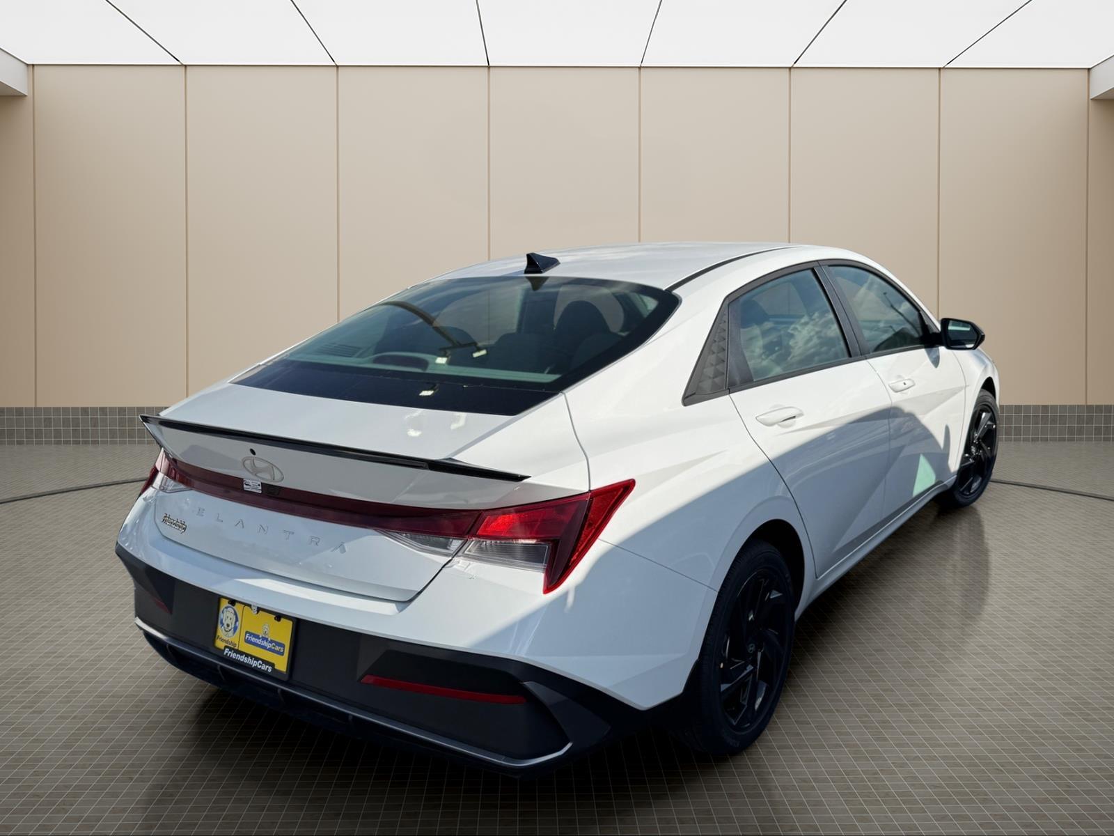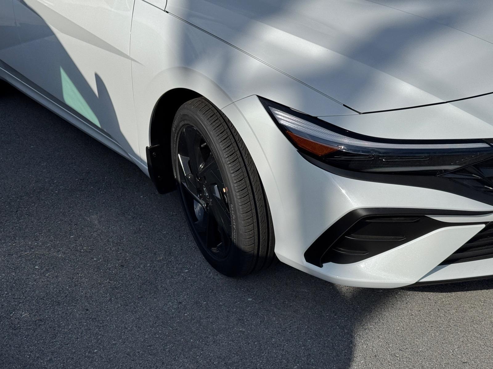 INFORMATION ABOUT THIS VEHICLE AND IT FEATURES:. Option Group 01, 4-Wheel Disc Brakes, 6 Speakers, ABS brakes, Air Conditioning, Alloy wheels, AM/FM radio, Apple CarPlay & Android Auto, Auto High-beam Headlights, Automatic temperature control, Brake assist, Bumpers: body-color, Cargo Net, Cargo Tray, Carpeted Floor Mats, Delay-off headlights, Driver door bin, Driver vanity mirror, Dual front impact airbags, Dual front side impact airbags, Electronic Stability Control, Exterior Parking Camera Rear, First Aid Kit, Front anti-roll bar, Front Bucket Seats, Front Center Armrest, Front dual zone A/C, Front reading lights, Front wheel independent suspension, Fully automatic headlights, Illuminated entry, Low tire pressure warning, Mudguards, Occupant sensing airbag, Outside temperature display, Overhead airbag, Overhead console, Panic alarm, Passenger door bin, Passenger vanity mirror, Power door mirrors, Power steering, Power windows, Premium Cloth Seat Trim, Radio: AM/FM/HD Display Audio, Rear side impact airbag, Rear window defroster, Remote keyless entry, Security system, Speed control, Speed-sensing steering, Spoiler, Steering wheel mounted audio controls, Tachometer, Telescoping steering wheel, Tilt steering wheel, Traction control, Trip computer, Variably intermittent wipers, and Wheels: 17x 7.0J Alloy Gloss Black w/Dark Finish. Serenity White 2026 Hyundai Elantra SEL Sport FWD CVT I4 30/39 City/Highway MPG