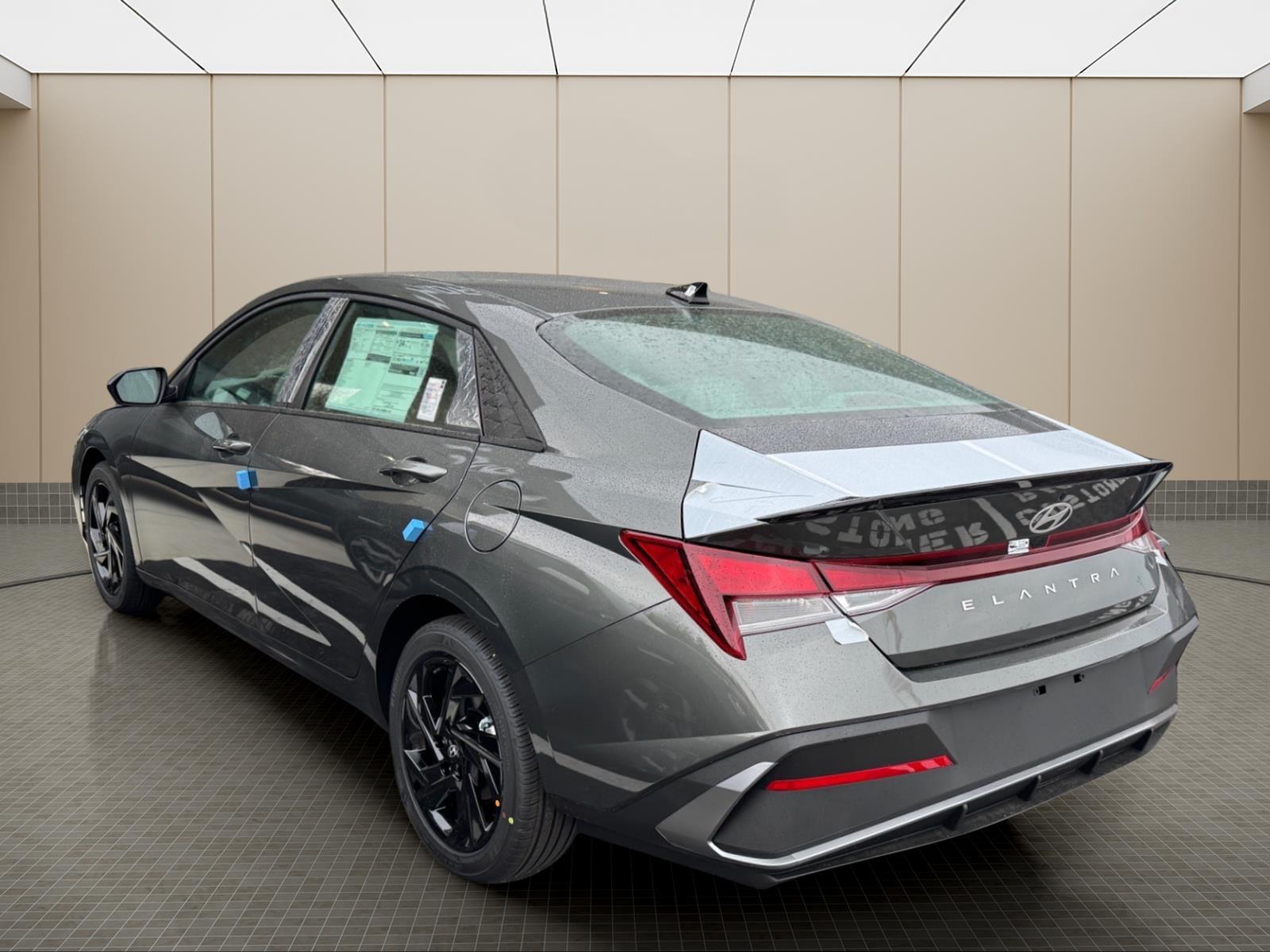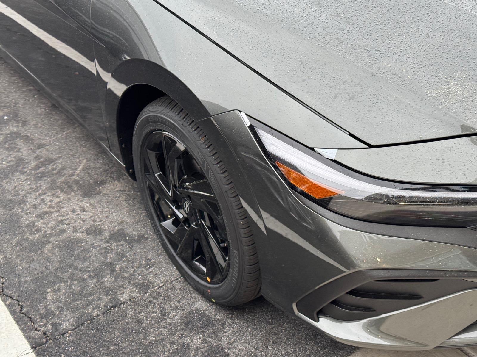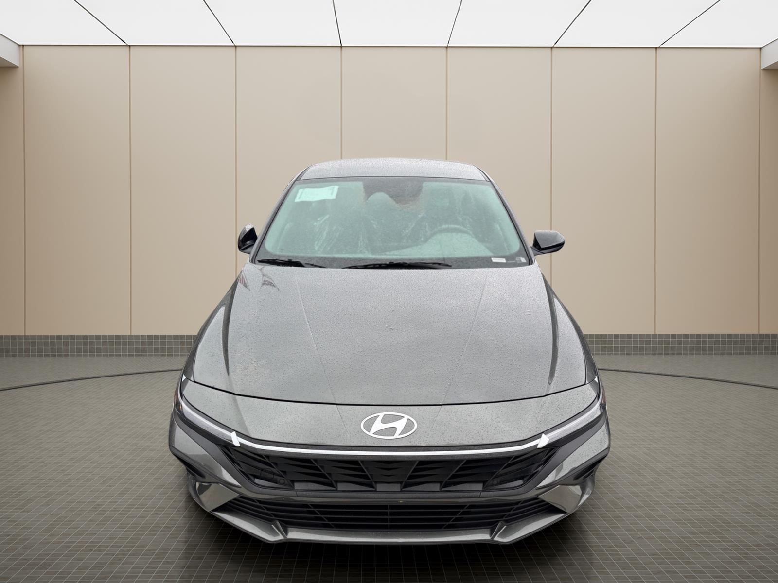 INFORMATION ABOUT THIS VEHICLE AND IT FEATURES:. Option Group 01, 4-Wheel Disc Brakes, 6 Speakers, ABS brakes, Air Conditioning, All-Season Fitted Liners, Alloy wheels, AM/FM radio, Apple CarPlay & Android Auto, Auto High-beam Headlights, Automatic temperature control, Brake assist, Bumpers: body-color, Cargo Tray, Carpeted Floor Mats, Delay-off headlights, Driver door bin, Driver vanity mirror, Dual front impact airbags, Dual front side impact airbags, Electronic Stability Control, Exterior Parking Camera Rear, Front anti-roll bar, Front Bucket Seats, Front Center Armrest, Front dual zone A/C, Front reading lights, Front wheel independent suspension, Fully automatic headlights, Illuminated entry, Low tire pressure warning, Occupant sensing airbag, Outside temperature display, Overhead airbag, Overhead console, Panic alarm, Passenger door bin, Passenger vanity mirror, Power door mirrors, Power steering, Power windows, Premium Cloth Seat Trim, Radio: AM/FM/HD Display Audio, Rear side impact airbag, Rear window defroster, Remote keyless entry, Security system, Speed control, Speed-sensing steering, Spoiler, Steering wheel mounted audio controls, Tachometer, Telescoping steering wheel, Tilt steering wheel, Traction control, Trip computer, Variably intermittent wipers, and Wheels: 17x 7.0J Alloy Gloss Black w/Dark Finish. Amazon Gray 2026 Hyundai Elantra SEL Sport FWD CVT I4 30/39 City/Highway MPG