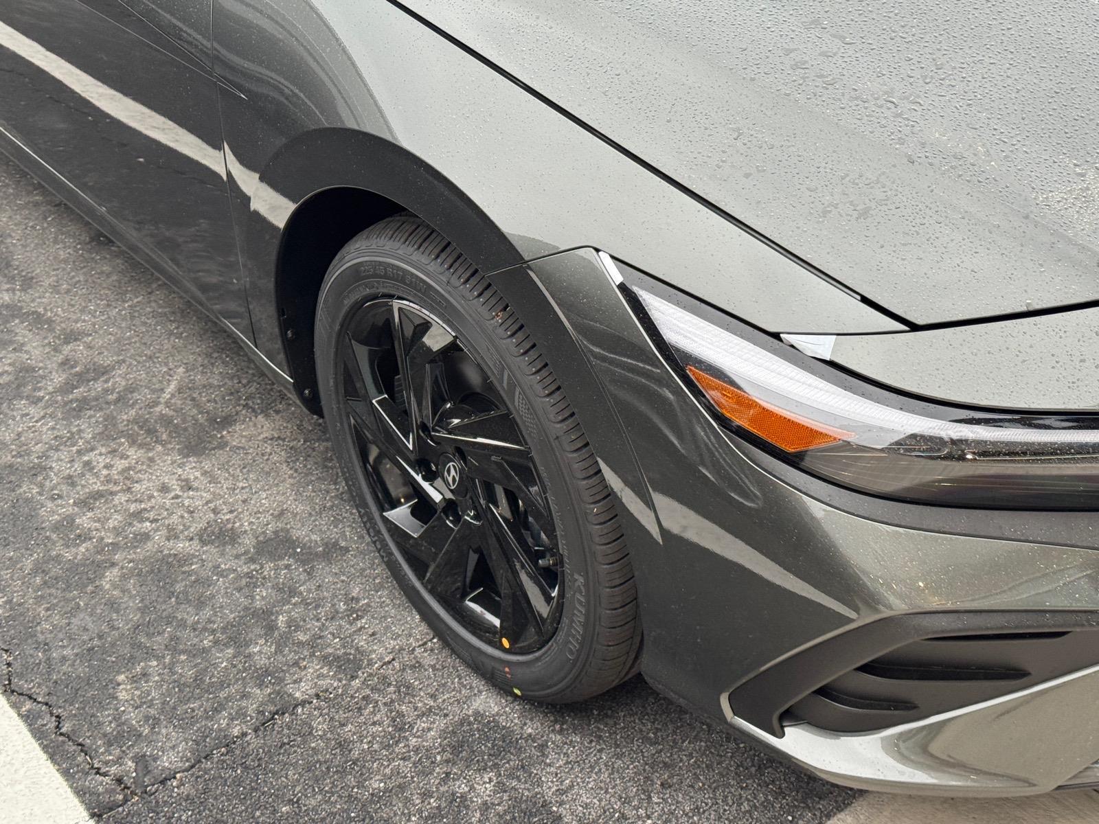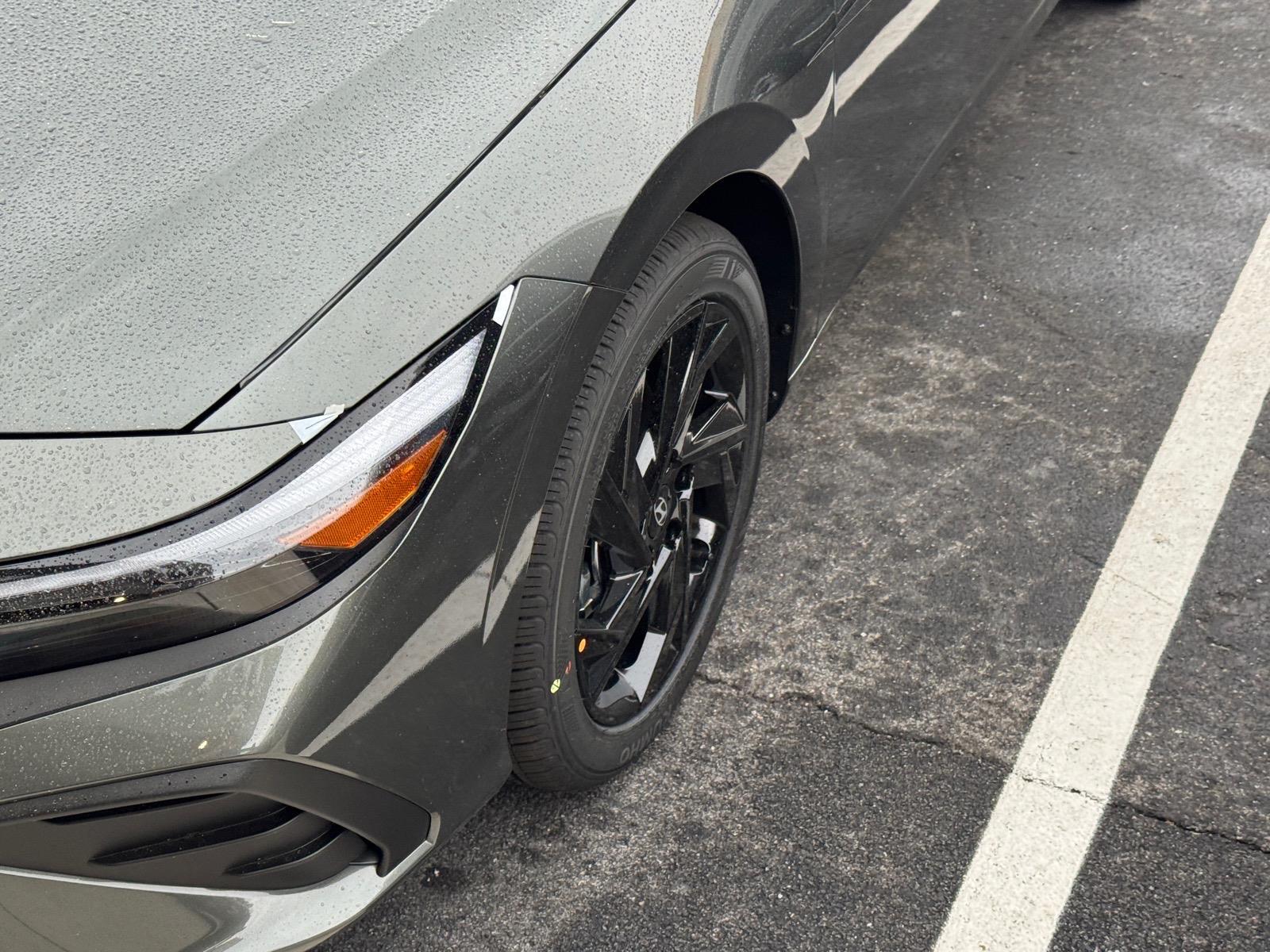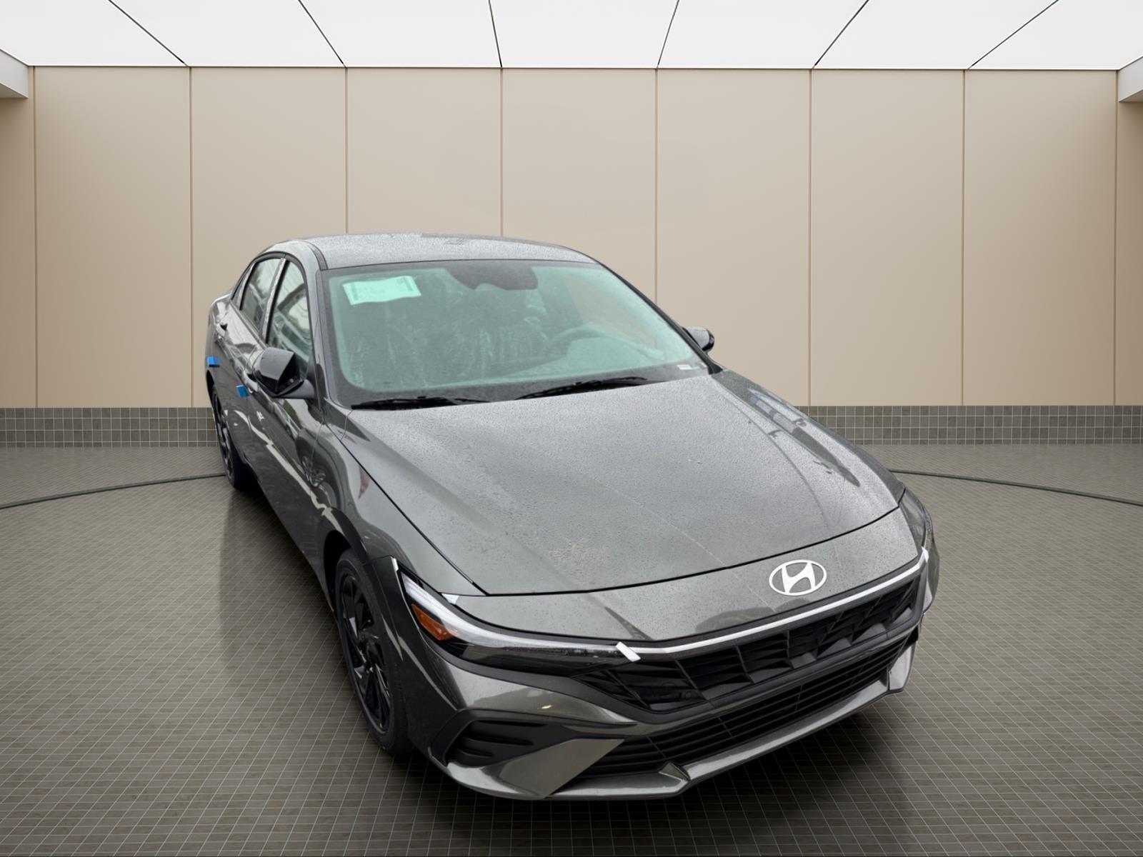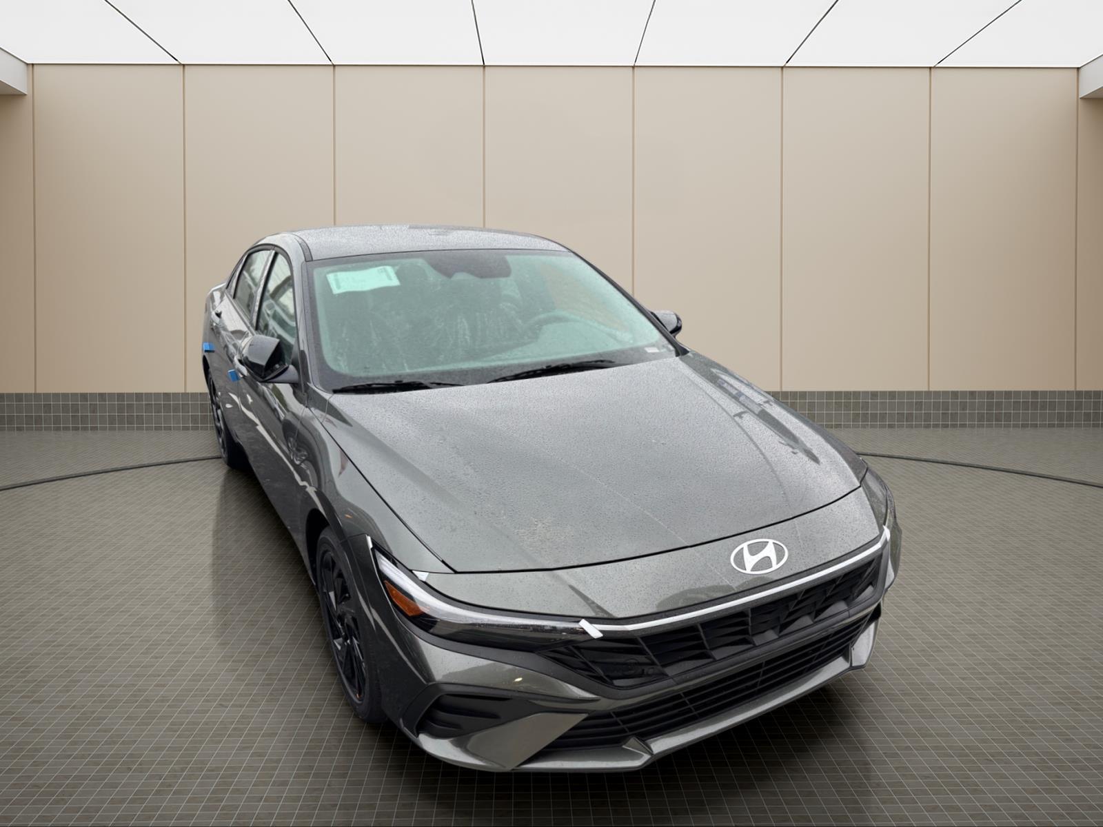 INFORMATION ABOUT THIS VEHICLE AND IT FEATURES:. Option Group 01, 4-Wheel Disc Brakes, 6 Speakers, ABS brakes, Air Conditioning, All-Season Fitted Liners, Alloy wheels, AM/FM radio, Apple CarPlay & Android Auto, Auto High-beam Headlights, Automatic temperature control, Brake assist, Bumpers: body-color, Cargo Tray, Carpeted Floor Mats, Delay-off headlights, Driver door bin, Driver vanity mirror, Dual front impact airbags, Dual front side impact airbags, Electronic Stability Control, Exterior Parking Camera Rear, Front anti-roll bar, Front Bucket Seats, Front Center Armrest, Front dual zone A/C, Front reading lights, Front wheel independent suspension, Fully automatic headlights, Illuminated entry, Low tire pressure warning, Occupant sensing airbag, Outside temperature display, Overhead airbag, Overhead console, Panic alarm, Passenger door bin, Passenger vanity mirror, Power door mirrors, Power steering, Power windows, Premium Cloth Seat Trim, Radio: AM/FM/HD Display Audio, Rear side impact airbag, Rear window defroster, Remote keyless entry, Security system, Speed control, Speed-sensing steering, Spoiler, Steering wheel mounted audio controls, Tachometer, Telescoping steering wheel, Tilt steering wheel, Traction control, Trip computer, Variably intermittent wipers, and Wheels: 17x 7.0J Alloy Gloss Black w/Dark Finish. Amazon Gray 2026 Hyundai Elantra SEL Sport FWD CVT I4 30/39 City/Highway MPG