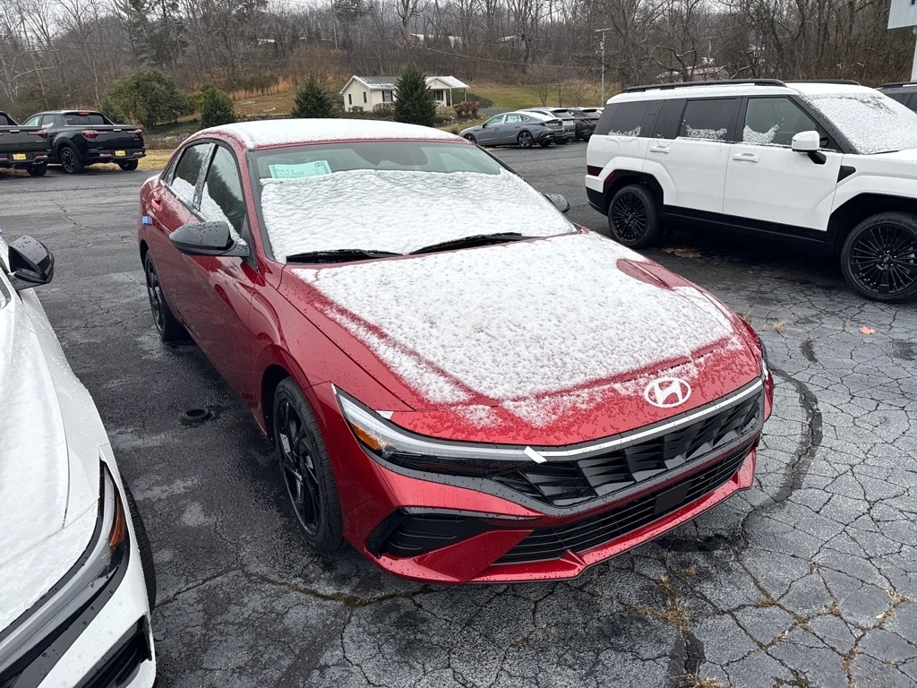INFORMATION ABOUT THIS VEHICLE AND IT FEATURES:. Option Group 01, 4-Wheel Disc Brakes, 6 Speakers, ABS brakes, Air Conditioning, Alloy wheels, AM/FM radio, Apple CarPlay & Android Auto, Auto High-beam Headlights, Automatic temperature control, Brake assist, Bumpers: body-color, Cargo Net, Cargo Tray, Carpeted Floor Mats, Center Console Tray, Delay-off headlights, Door Sill Plates, Driver door bin, Driver vanity mirror, Dual front impact airbags, Dual front side impact airbags, Electronic Stability Control, Exterior Parking Camera Rear, First Aid Kit, Front anti-roll bar, Front Bucket Seats, Front Center Armrest, Front dual zone A/C, Front reading lights, Front wheel independent suspension, Fully automatic headlights, Heated door mirrors, Heated Front Bucket Seats, Heated front seats, Illuminated entry, Low tire pressure warning, Occupant sensing airbag, Outside temperature display, Overhead airbag, Overhead console, Panic alarm, Passenger door bin, Passenger vanity mirror, Power door mirrors, Power moonroof, Power steering, Power windows, Premium Cloth Seat Trim, Radio: AM/FM/HD Display Audio, Rear seat center armrest, Rear side impact airbag, Rear window defroster, Remote keyless entry, Security system, Speed control, Speed-sensing steering, Split folding rear seat, Spoiler, Steering wheel mounted audio controls, Tachometer, Telescoping steering wheel, Tilt steering wheel, Traction control, Trip computer, Variably intermittent wipers, and Wheels: 17x 7.0J Alloy Gloss Black w/Dark Finish. Ultimate Red 2026 Hyundai Elantra SEL Sport FWD CVT I4 30/39 City/Highway MPG