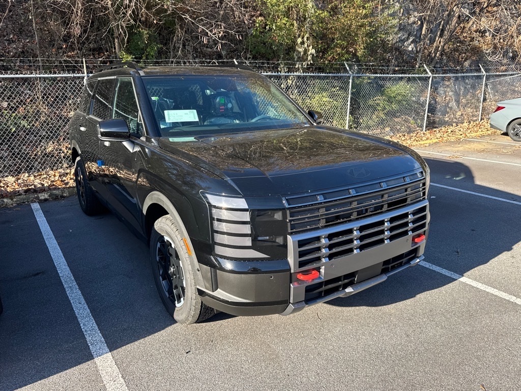 INFORMATION ABOUT THIS VEHICLE AND IT FEATURES:. Option Group 01, 14 Speakers, 3rd row seats: split-bench, 4-Wheel Disc Brakes, ABS brakes, Air Conditioning, Alloy wheels, AM/FM radio: SiriusXM, Apple CarPlay & Android Auto, Auto High-beam Headlights, Auto-dimming door mirrors, Auto-dimming Rear-View mirror, Auto-leveling suspension, Automatic temperature control, Brake assist, Cargo Cover, Cargo Net, Cargo Tray, Carpeted Floor Mats, Compass, Delay-off headlights, Driver door bin, Driver vanity mirror, Dual front impact airbags, Dual front side impact airbags, Electronic Stability Control, Emergency communication system: None, Exterior Parking Camera Rear, Four wheel independent suspension, Front anti-roll bar, Front Bucket Seats, Front Center Armrest, Front dual zone A/C, Front reading lights, Fully automatic headlights, H-Tex Leatherette Seat Trim, Heated and Ventilated Front Bucket Seats, Heated door mirrors, Heated front seats, Heated steering wheel, Illuminated entry, Knee airbag, Leather steering wheel, Low tire pressure warning, Navigation System, Occupant sensing airbag, Outside temperature display, Overhead airbag, Overhead console, Panic alarm, Passenger door bin, Passenger vanity mirror, Power door mirrors, Power driver seat, Power Liftgate, Power moonroof, Power passenger seat, Power steering, Power windows, Radio data system, Radio: Infotainment Navigation System, Rear air conditioning, Rear anti-roll bar, Rear audio controls, Rear reading lights, Rear side impact airbag, Rear window defroster, Rear window wiper, Reclining 3rd row seat, Remote keyless entry, Security system, Speed control, Split folding rear seat, Spoiler, Steering wheel mounted audio controls, Tachometer, Telescoping steering wheel, Tilt steering wheel, Traction control, Trip computer, Variably intermittent wipers, Ventilated front seats, Voltmeter, and Wheels: 18x 7.5J Dark Alloy. Abyss Black Pearl 2026 Hyundai Palisade XRT Pro AWD 8-Speed Automatic V6