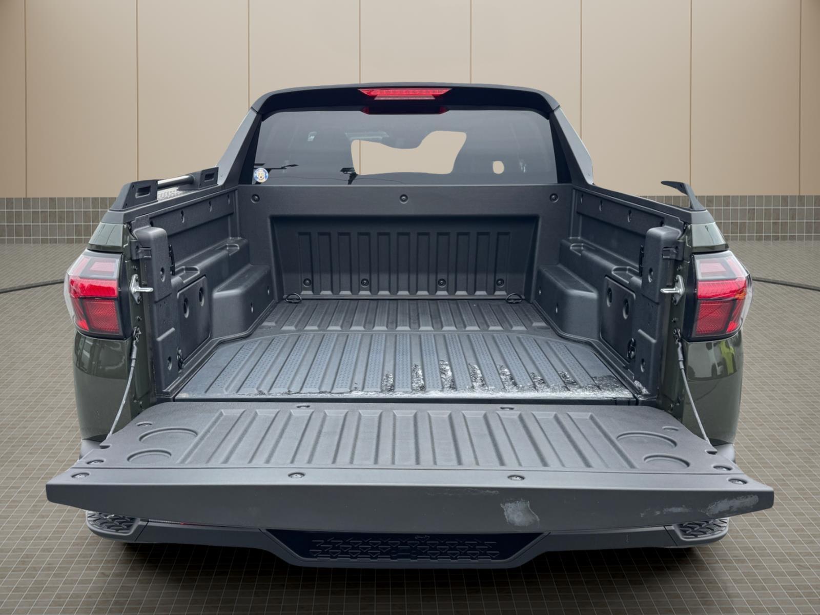 INFORMATION ABOUT THIS VEHICLE AND IT FEATURES:. Option Group 01, 18x 7.5J Alloy Wheels, 4-Wheel Disc Brakes, 4.081 Axle Ratio, 6 Speakers, ABS brakes, Air Conditioning, Alloy wheels, AM/FM radio: SiriusXM, Apple CarPlay & Android Auto, Auto High-beam Headlights, Auto-leveling suspension, Automatic temperature control, Bed Rails, Brake assist, Bumpers: body-color, Carpeted Floor Mats, Compass, Delay-off headlights, Driver door bin, Driver vanity mirror, Dual front impact airbags, Dual front side impact airbags, Electronic Stability Control, Emergency communication system: None, Exterior Parking Camera Rear, First Aid Kit, Four wheel independent suspension, Front anti-roll bar, Front Bucket Seats, Front Center Armrest, Front dual zone A/C, Front reading lights, Fully automatic headlights, H-Tex Leatherette Seat Trim, Heated door mirrors, Heated Front Bucket Seats, Heated front seats, Illuminated entry, Low tire pressure warning, Occupant sensing airbag, Outside temperature display, Overhead airbag, Overhead console, Panic alarm, Passenger door bin, Passenger vanity mirror, Power door mirrors, Power driver seat, Power steering, Power windows, Radio data system, Radio: AM/FM/HD Audio System, Rear anti-roll bar, Rear reading lights, Rear side impact airbag, Rear step bumper, Rear window defroster, Remote keyless entry, Security system, Speed control, Speed-sensing steering, Split folding rear seat, Spoiler, Steering wheel mounted audio controls, Tachometer, Telescoping steering wheel, Tilt steering wheel, Traction control, Trip computer, Turn signal indicator mirrors, and Variably intermittent wipers. Rockwood Green 2026 Hyundai Santa Cruz SEL AWD 8-Speed Automatic with SHIFTRONIC 2.5L I4 21/29 City/Highway MPG