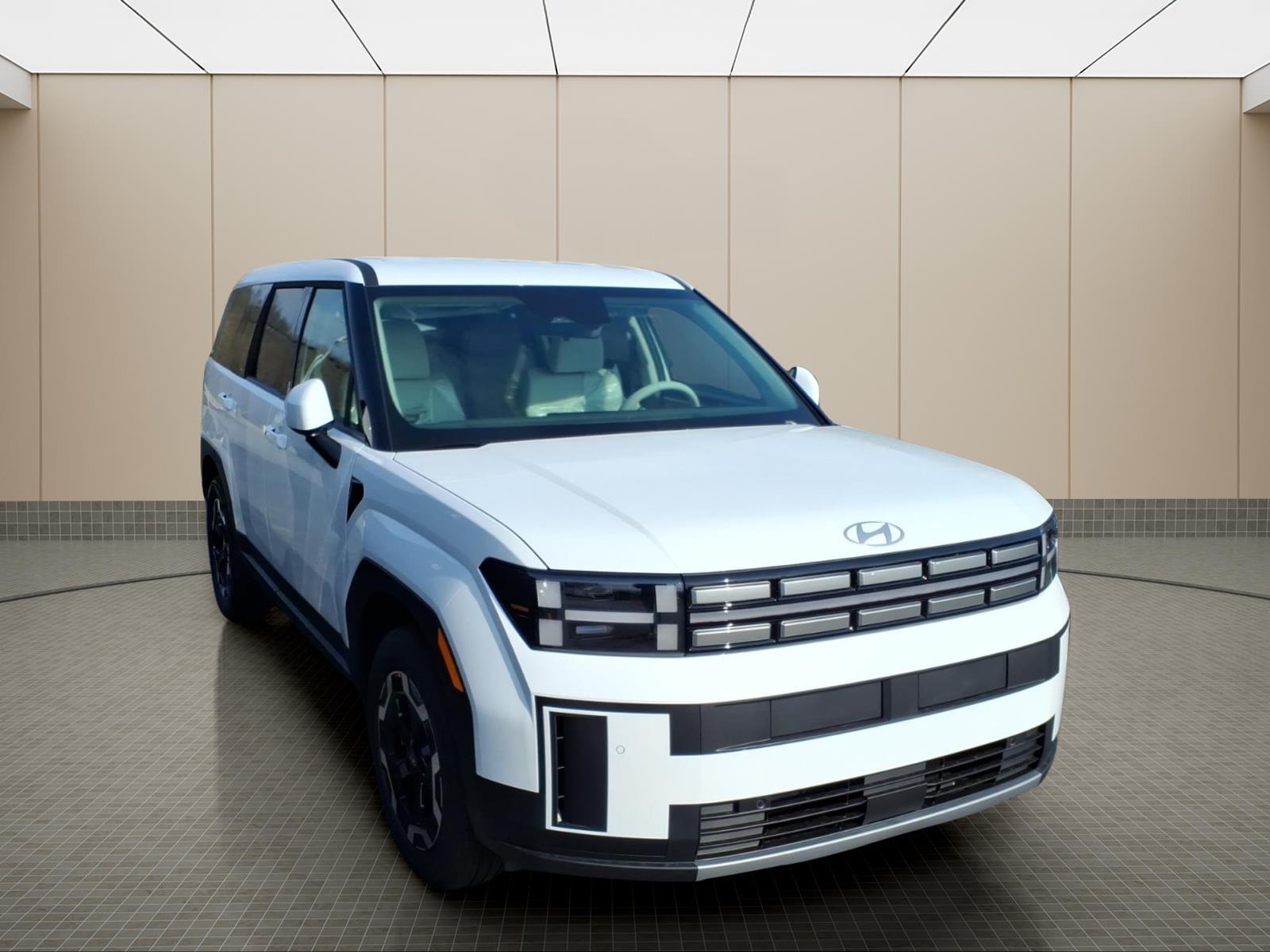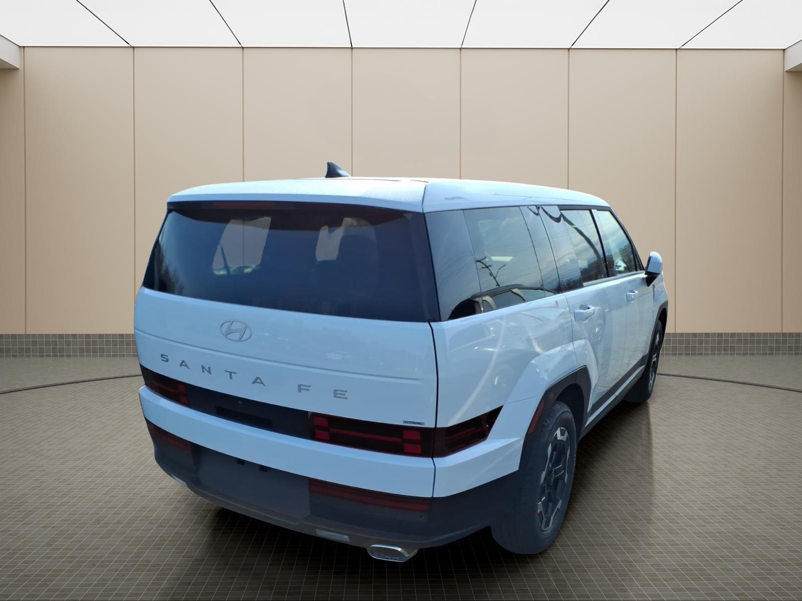 INFORMATION ABOUT THIS VEHICLE AND IT FEATURES:, AWD, Gray Cloth. Option Group 01, AWD, Gray Cloth, 18x 7.5J Alloy Wheels, 3rd row seats: bench, 4-Wheel Disc Brakes, 6 Speakers, ABS brakes, Air Conditioning, Alloy wheels, AM/FM radio: SiriusXM, Apple CarPlay & Android Auto, Auto High-beam Headlights, Brake assist, Bumpers: body-color, Carpeted Floor Mats, Delay-off headlights, Driver door bin, Driver vanity mirror, Dual front impact airbags, Dual front side impact airbags, Electronic Stability Control, Emergency communication system, Exterior Parking Camera Rear, Four wheel independent suspension, Front anti-roll bar, Front Bucket Seats, Front Center Armrest, Front reading lights, Fully automatic headlights, Heated door mirrors, Illuminated entry, Knee airbag, Leather steering wheel, Low tire pressure warning, Occupant sensing airbag, Outside temperature display, Overhead airbag, Overhead console, Panic alarm, Passenger door bin, Passenger vanity mirror, Power door mirrors, Power Liftgate, Power steering, Power windows, Radio: AM/FM/HD Display Audio, Rear anti-roll bar, Rear seat center armrest, Rear side impact airbag, Rear window defroster, Rear window wiper, Remote keyless entry, Security system, Speed control, Speed-sensing steering, Split folding rear seat, Spoiler, Steering wheel mounted audio controls, Tachometer, Telescoping steering wheel, Tilt steering wheel, Traction control, Trip computer, Variably intermittent wipers, and YES Essentials Stain-Resistant Cloth Seat Trim. Serenity White 2026 Hyundai Santa Fe SE AWD 8-Speed Automatic with SHIFTRONIC 2.5L I4 20/28 City/Highway MPG