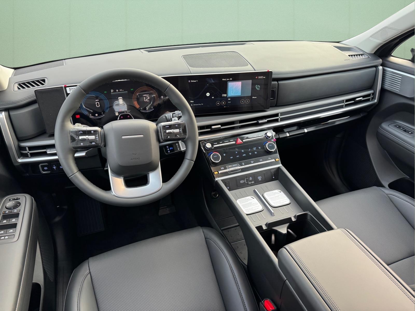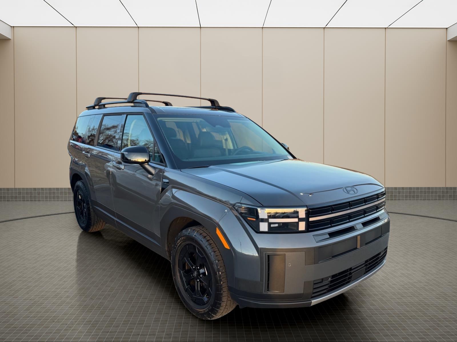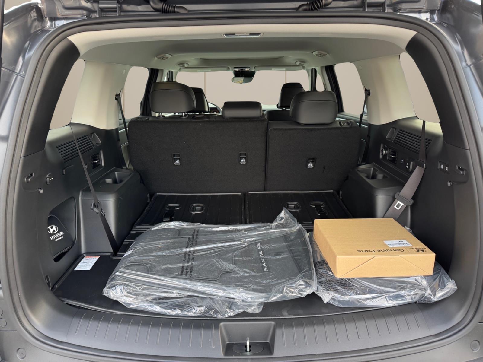 INFORMATION ABOUT THIS VEHICLE AND IT FEATURES:, AWD, Black Premium Synthetic. Option Group 01, AWD, Black Premium Synthetic, 3rd row seats: bench, 4-Wheel Disc Brakes, 6 Speakers, ABS brakes, Air Conditioning, Alloy wheels, AM/FM radio: SiriusXM, Apple CarPlay & Android Auto, Auto High-beam Headlights, Automatic temperature control, Brake assist, Bumpers: body-color, Cargo Net, Cargo Organizer, Cargo Tray, Carpeted Floor Mats, Delay-off headlights, Driver door bin, Driver vanity mirror, Dual front impact airbags, Dual front side impact airbags, Electronic Stability Control, Emergency communication system, Exterior Parking Camera Rear, First Aid Kit, Four wheel independent suspension, Front anti-roll bar, Front Bucket Seats, Front Center Armrest, Front dual zone A/C, Front reading lights, Fully automatic headlights, H-Tex Leatherette Seat Trim, Heated door mirrors, Heated Front Bucket Seats, Heated front seats, Illuminated entry, Knee airbag, Leather steering wheel, Low tire pressure warning, Navigation System, Occupant sensing airbag, Outside temperature display, Overhead airbag, Overhead console, Panic alarm, Passenger door bin, Passenger vanity mirror, Power door mirrors, Power driver seat, Power Liftgate, Power moonroof, Power steering, Power windows, Radio: AM/FM/HD Display Audio, Rear anti-roll bar, Rear seat center armrest, Rear side impact airbag, Rear window defroster, Rear window wiper, Remote keyless entry, Roof Rack Crossbars, Security system, Speed control, Speed-sensing steering, Split folding rear seat, Spoiler, Steering wheel mounted audio controls, Tachometer, Telescoping steering wheel, Tilt steering wheel, Traction control, Trip computer, Turn signal indicator mirrors, Variably intermittent wipers, and Wheels: 18x 7.5J Dark Alloy. Ecotronic Gray 2026 Hyundai Santa Fe XRT AWD 8-Speed Automatic with SHIFTRONIC 2.5L I4 20/28 City/Highway MPG